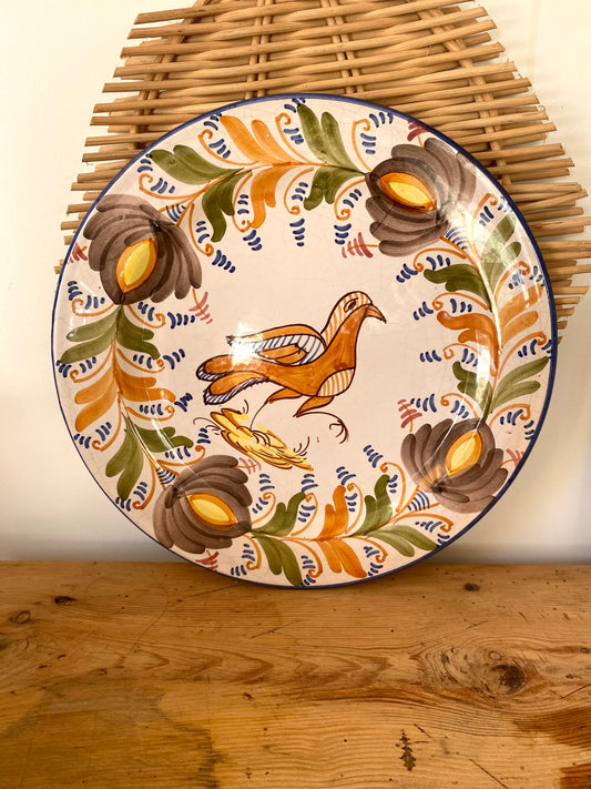 Grand plat rond de service en faïence ancienne