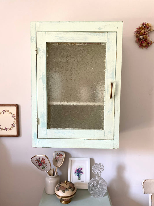 Vitrine murale Armoire à pharmacie en bois ancien patiné