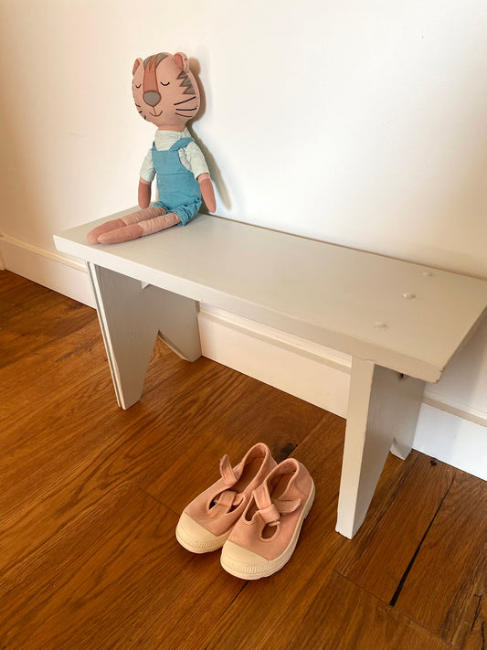 Banc rustique pour enfant en bois ancien peint en blanc verdi