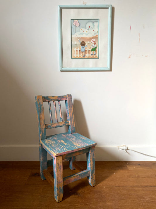 Chaise pour enfant en bois ancien peint en blanc verdi