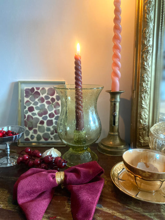 Bougeoir trois branches en céramique ancienne peinte à la main