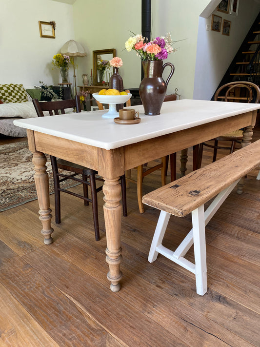 Table de ferme ancienne rénovée et son banc