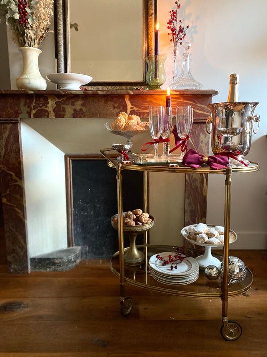 Desserte ancienne en laiton et verre fumé