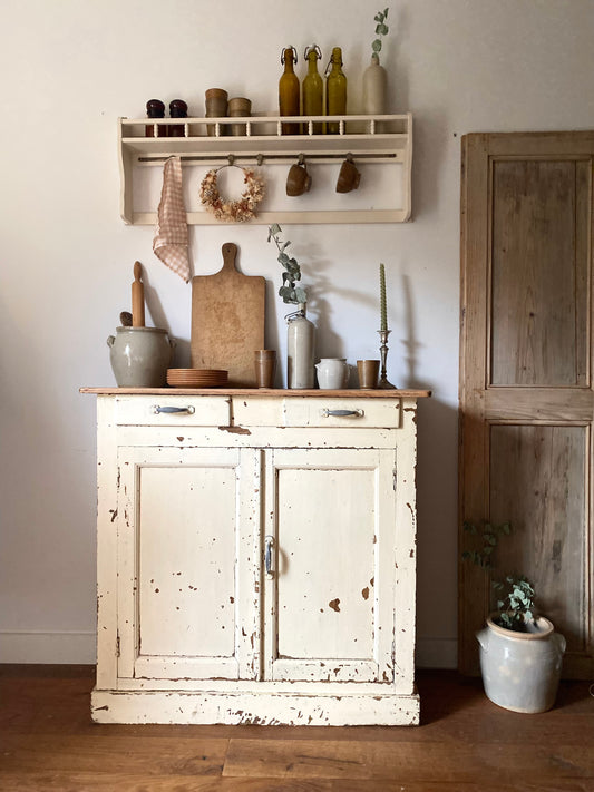 Étagère murale en bois ancien couleur crème