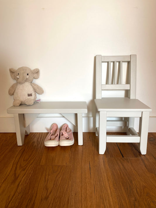 Petit banc pour enfant rustique en bois ancien peint en blanc