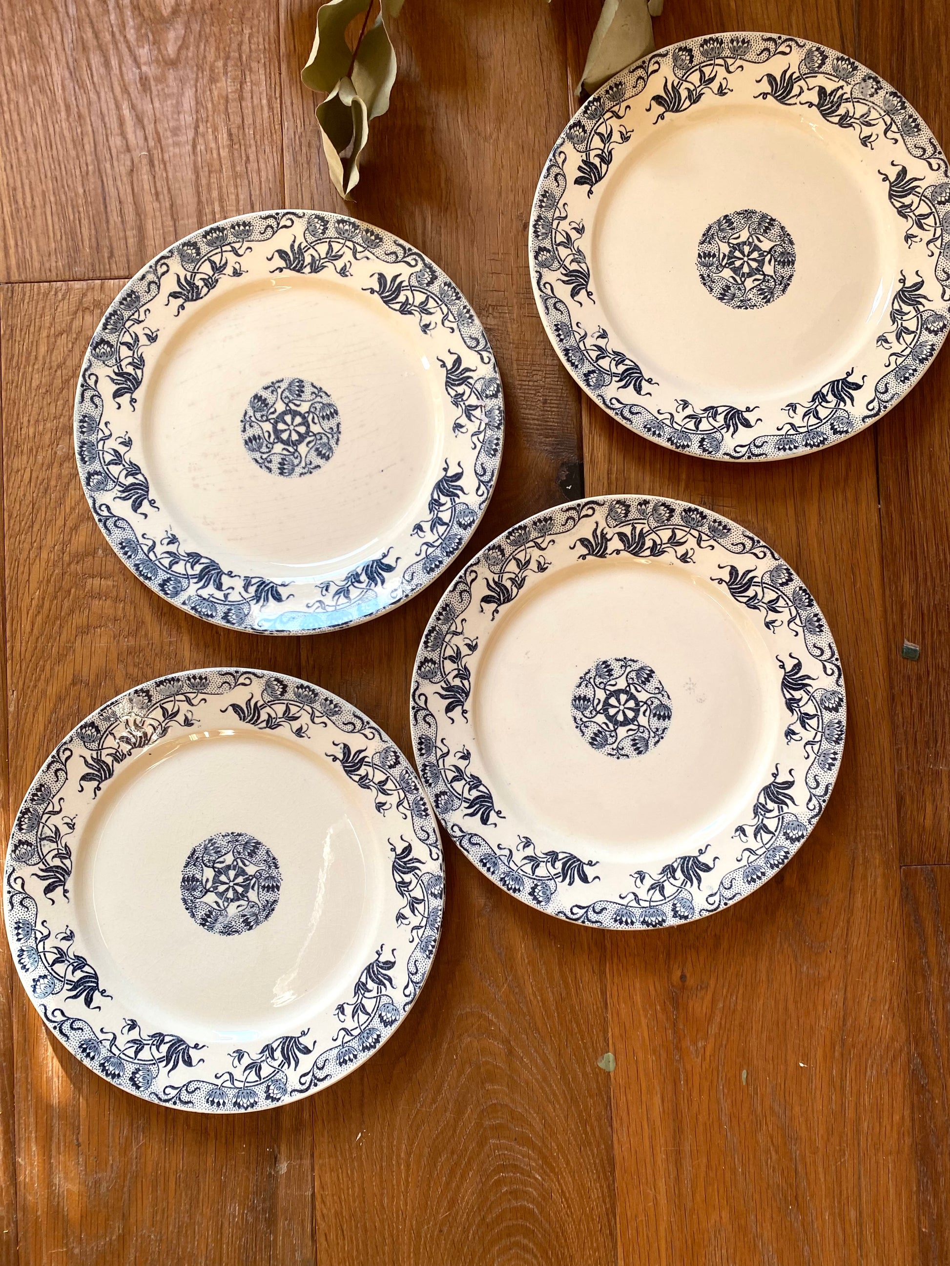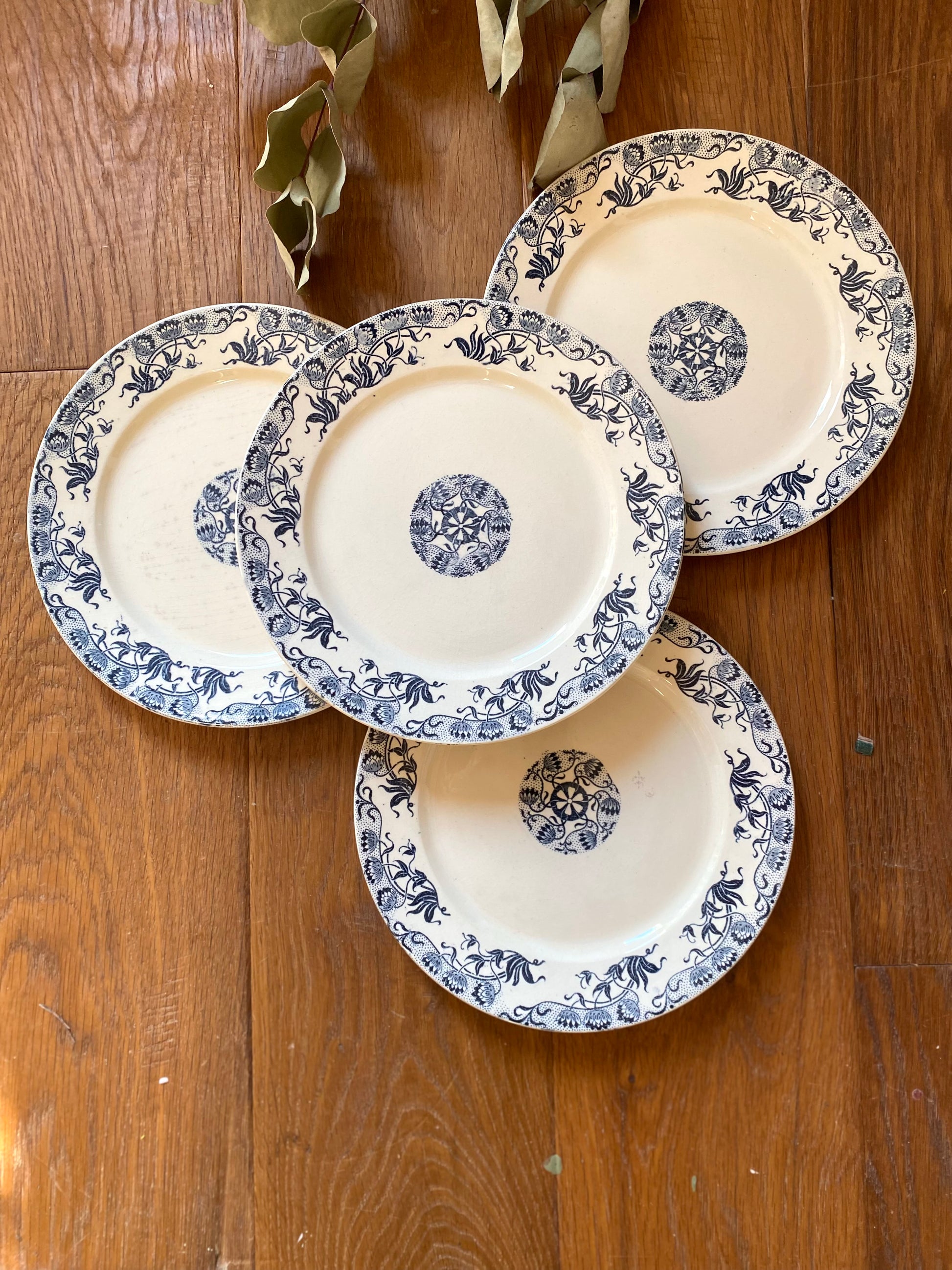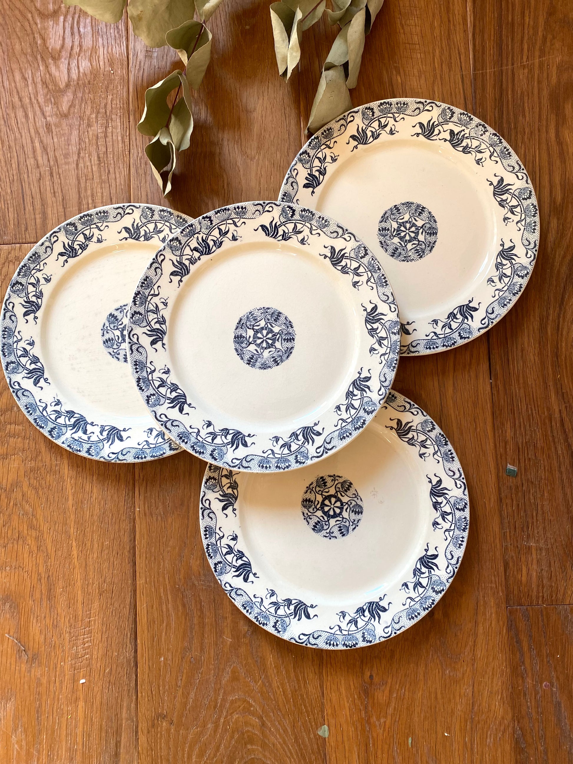 4 ravissantes assiettes à dessert en faïence ancienne