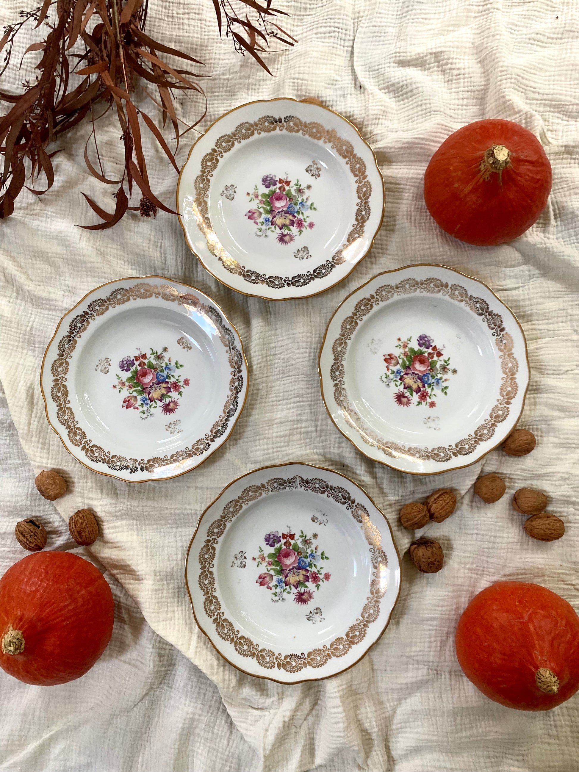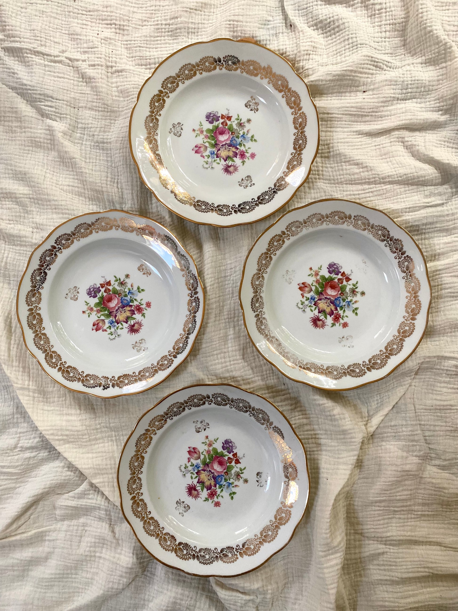 4 ravissantes assiettes creuses en faïence ancienne
