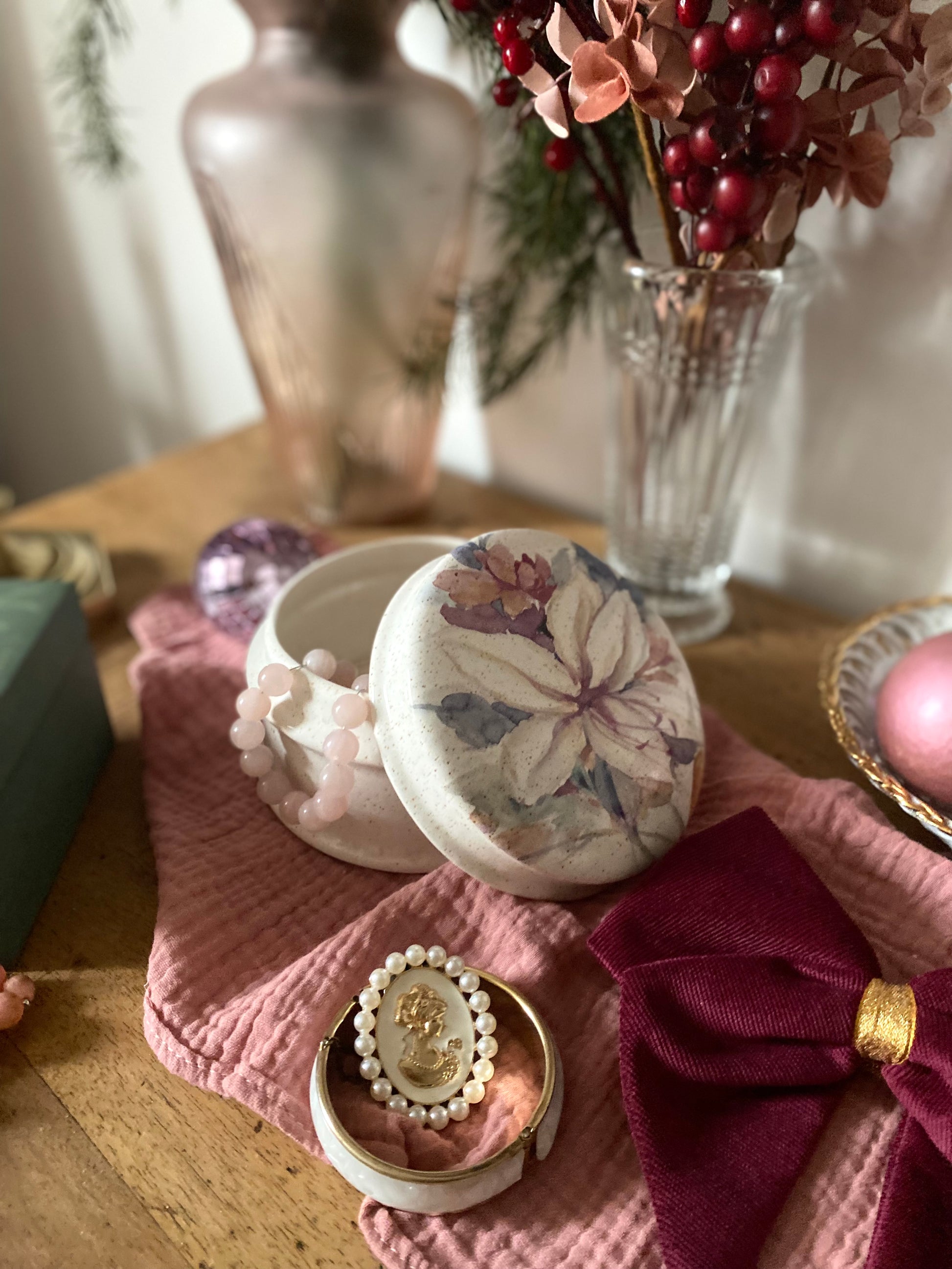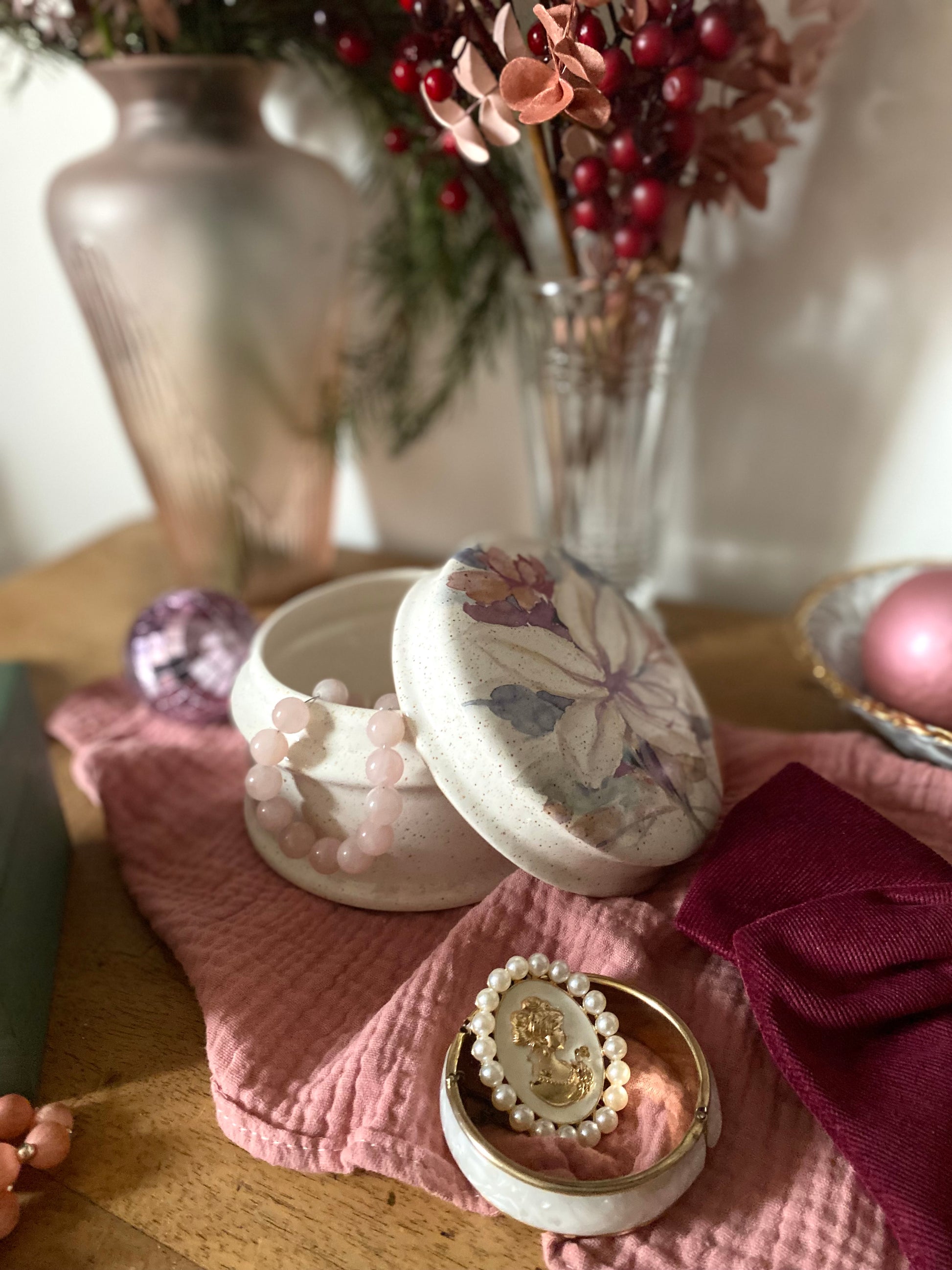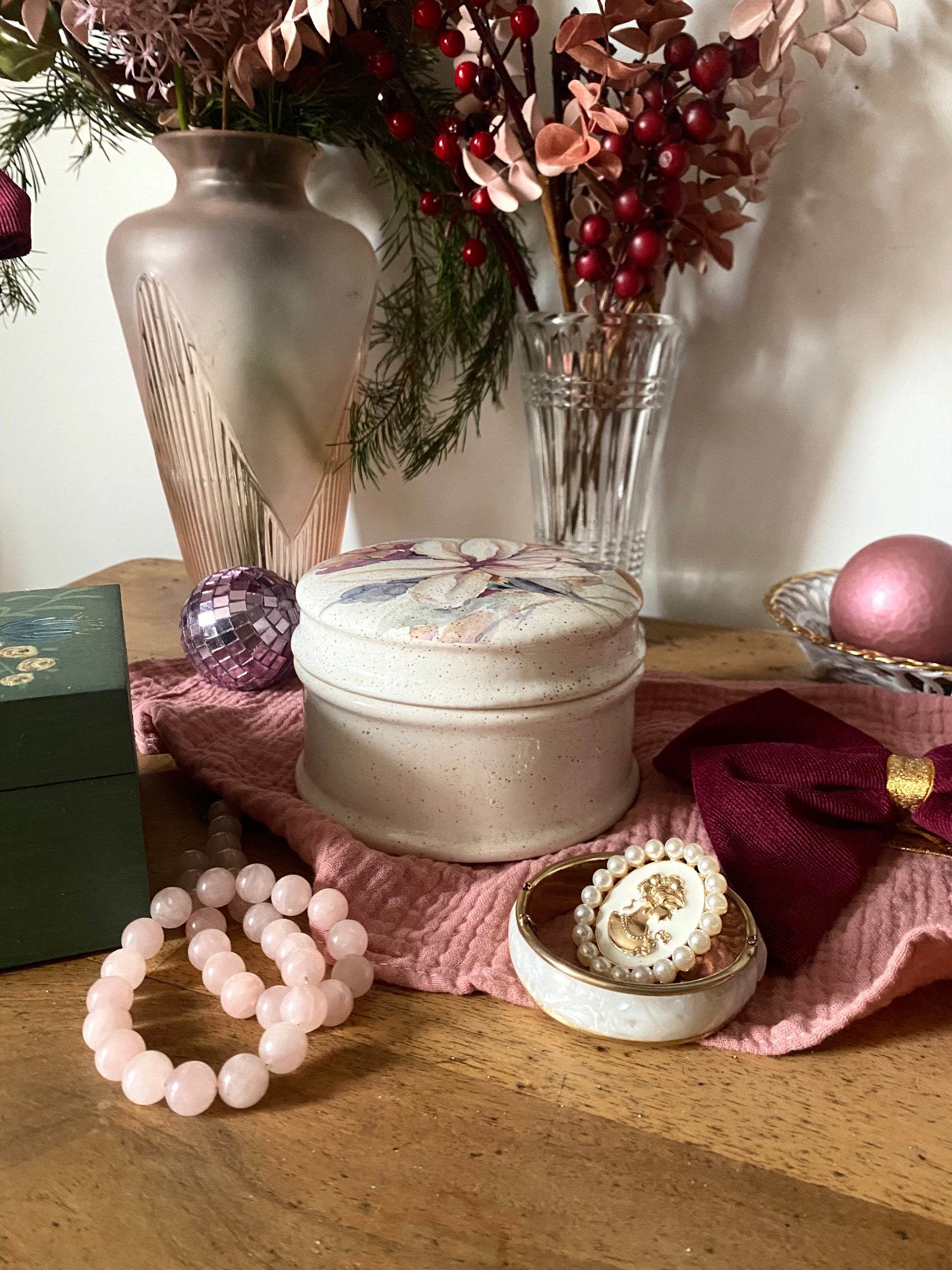 Cette boîte à bijoux provient des Faïences de Roanne, et plus précisément de l'atelier de la famille Coomans et à été fabriquée dans les années 1960.