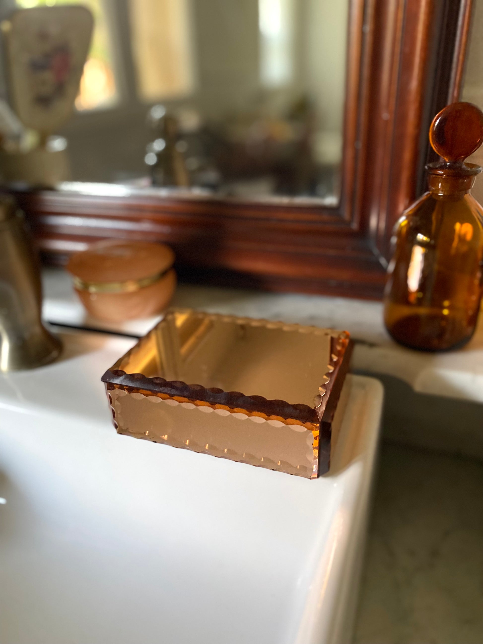Incroyable Boîte à bijoux datant du milieu du XXe siècle (style Art Déco tardif ou années 50/60) qui dégage un charme "Hollywood Regency" très marqué.