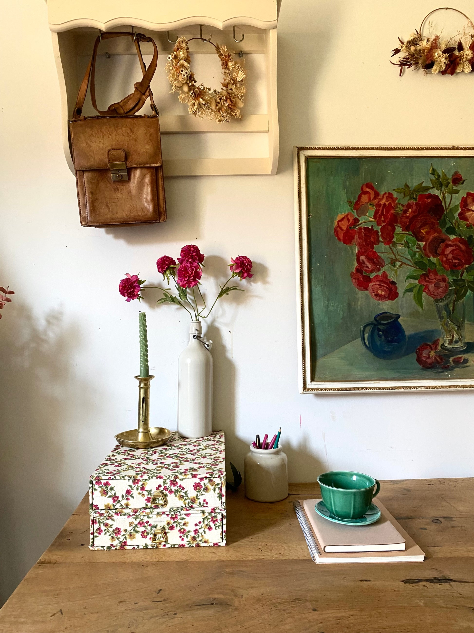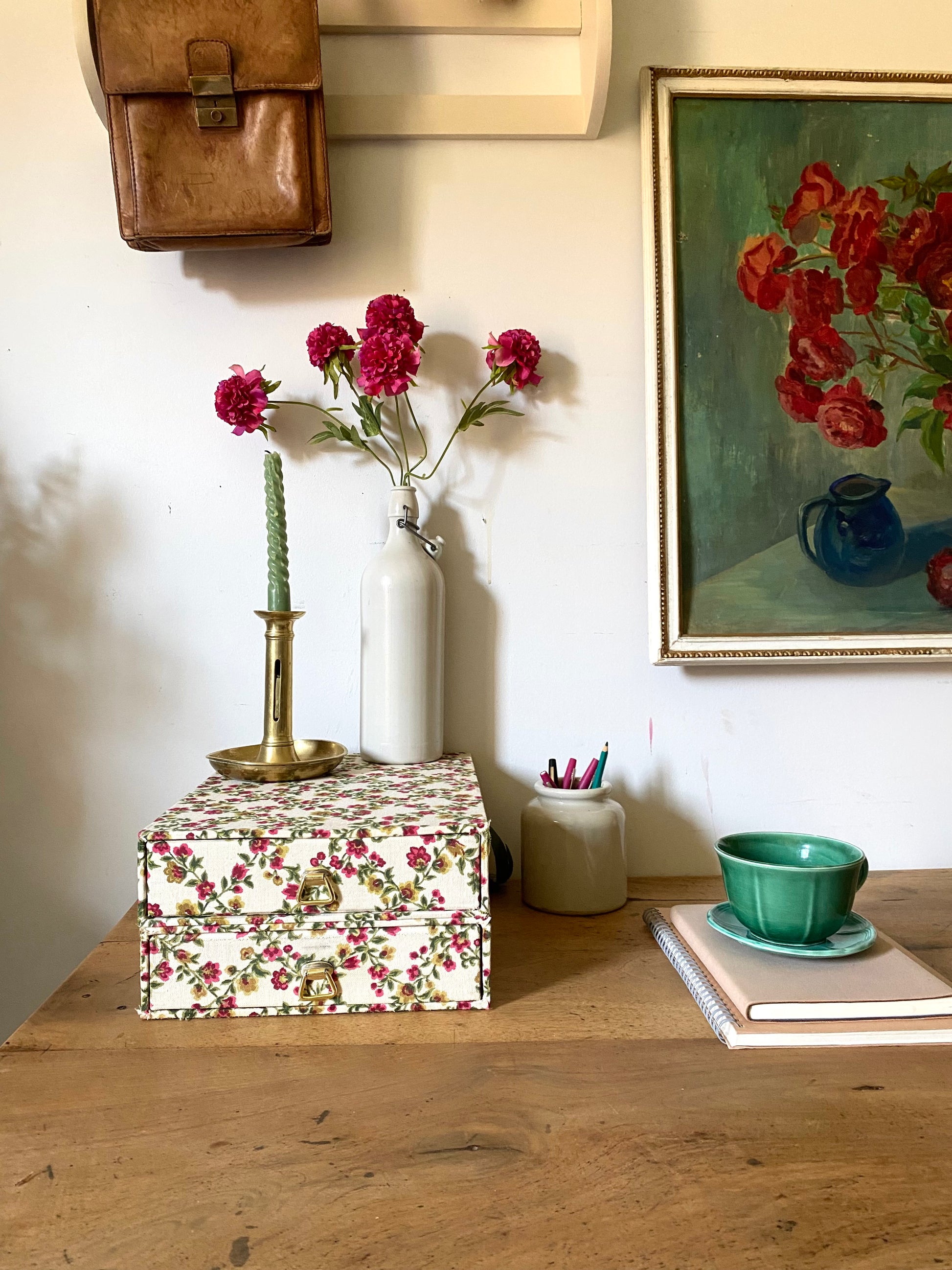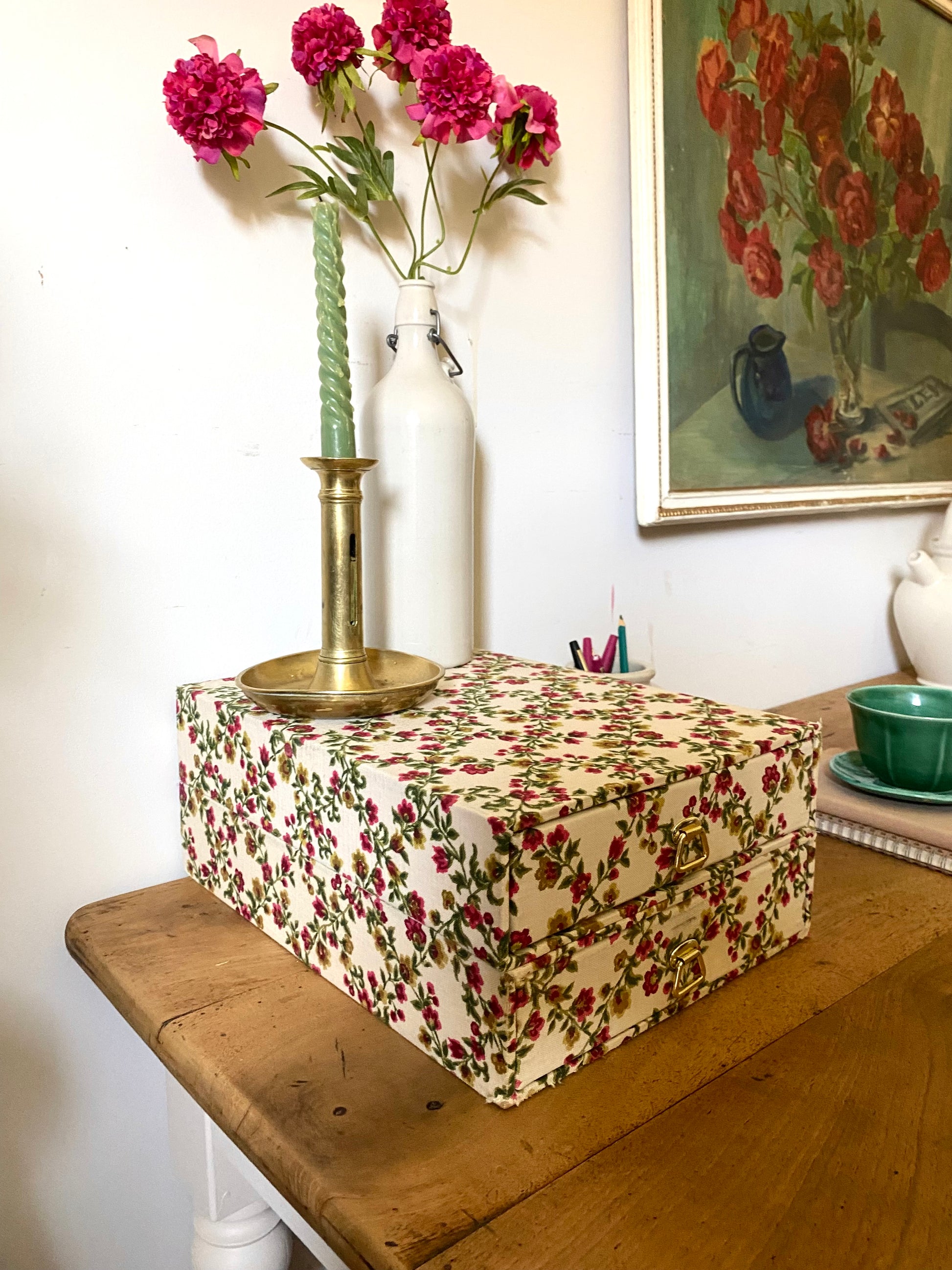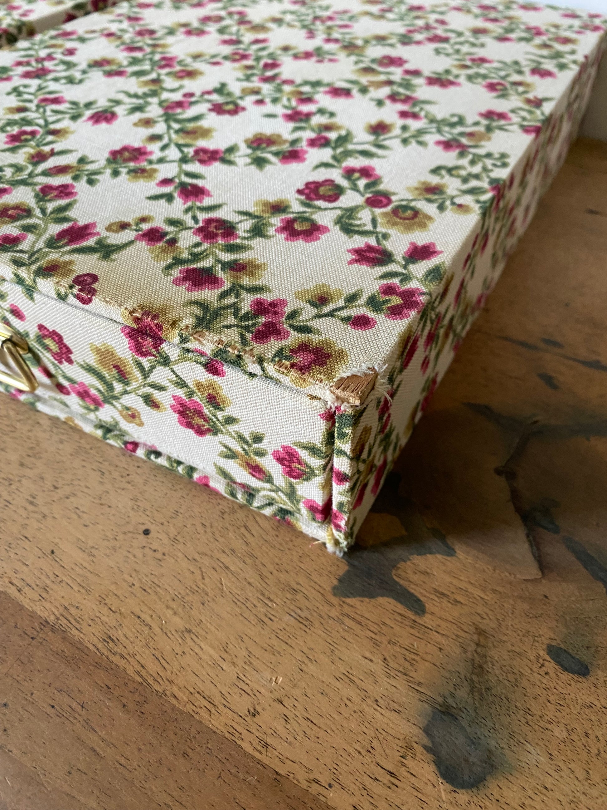 Ravissant duo de boîte de rangement en cartons recouvertes d’un très joli tissus ancien.