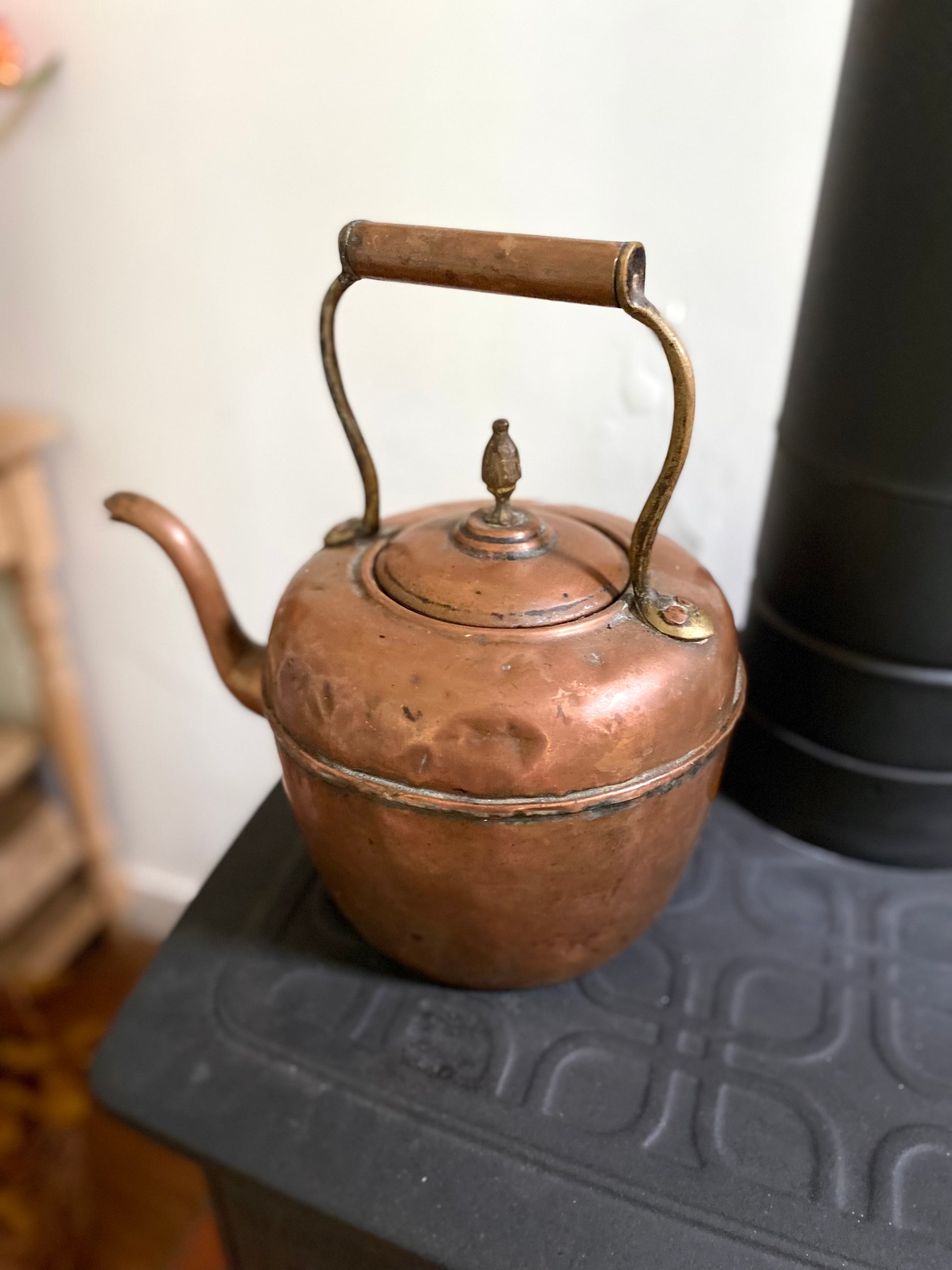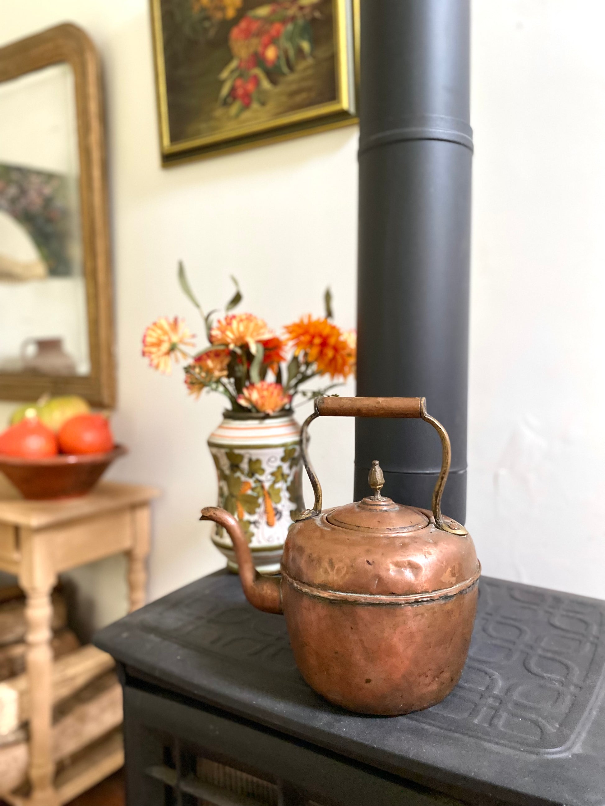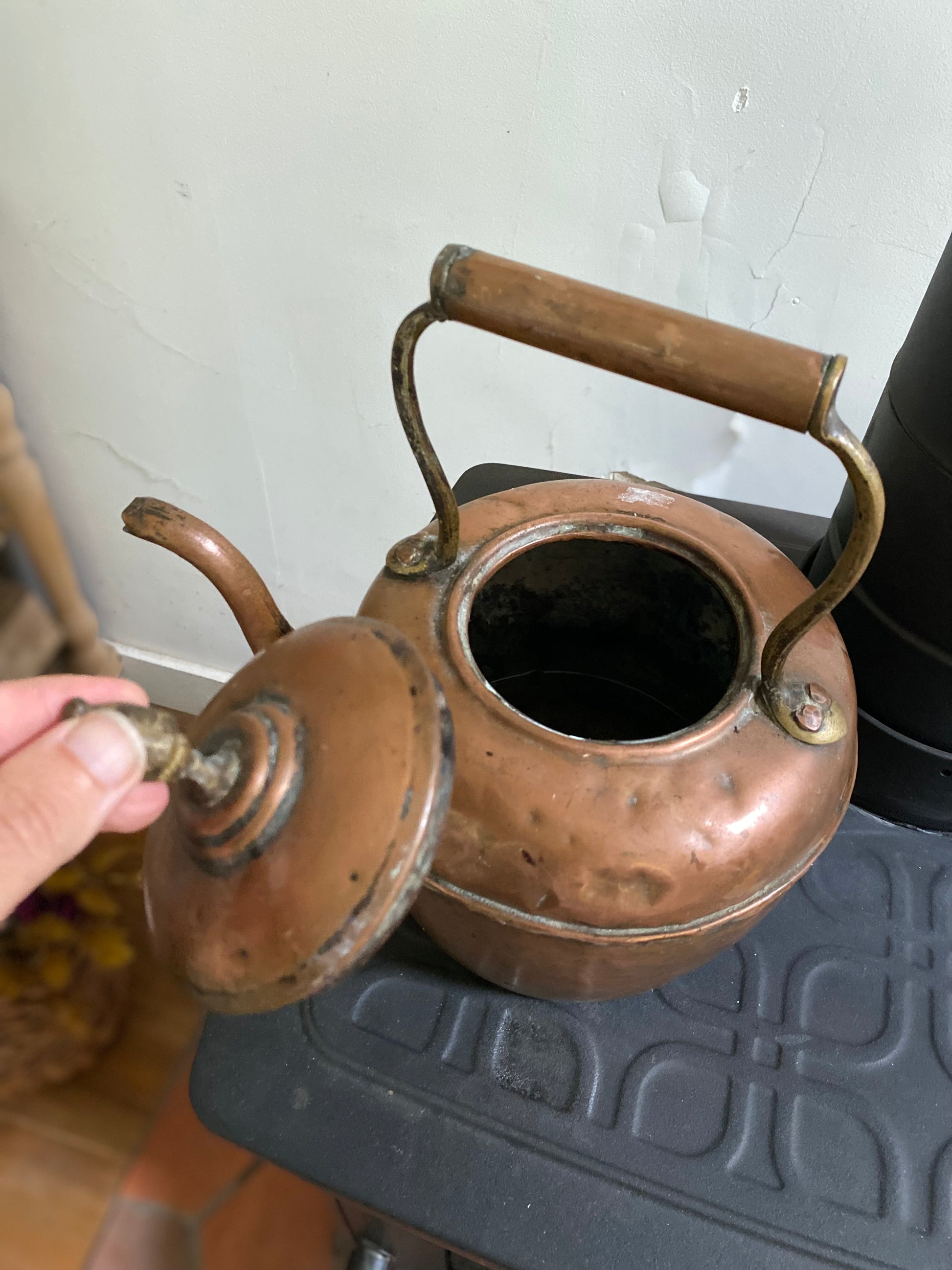 Adorable bouilloire ancienne, en cuivre martelé datant du début du XXe siècle.