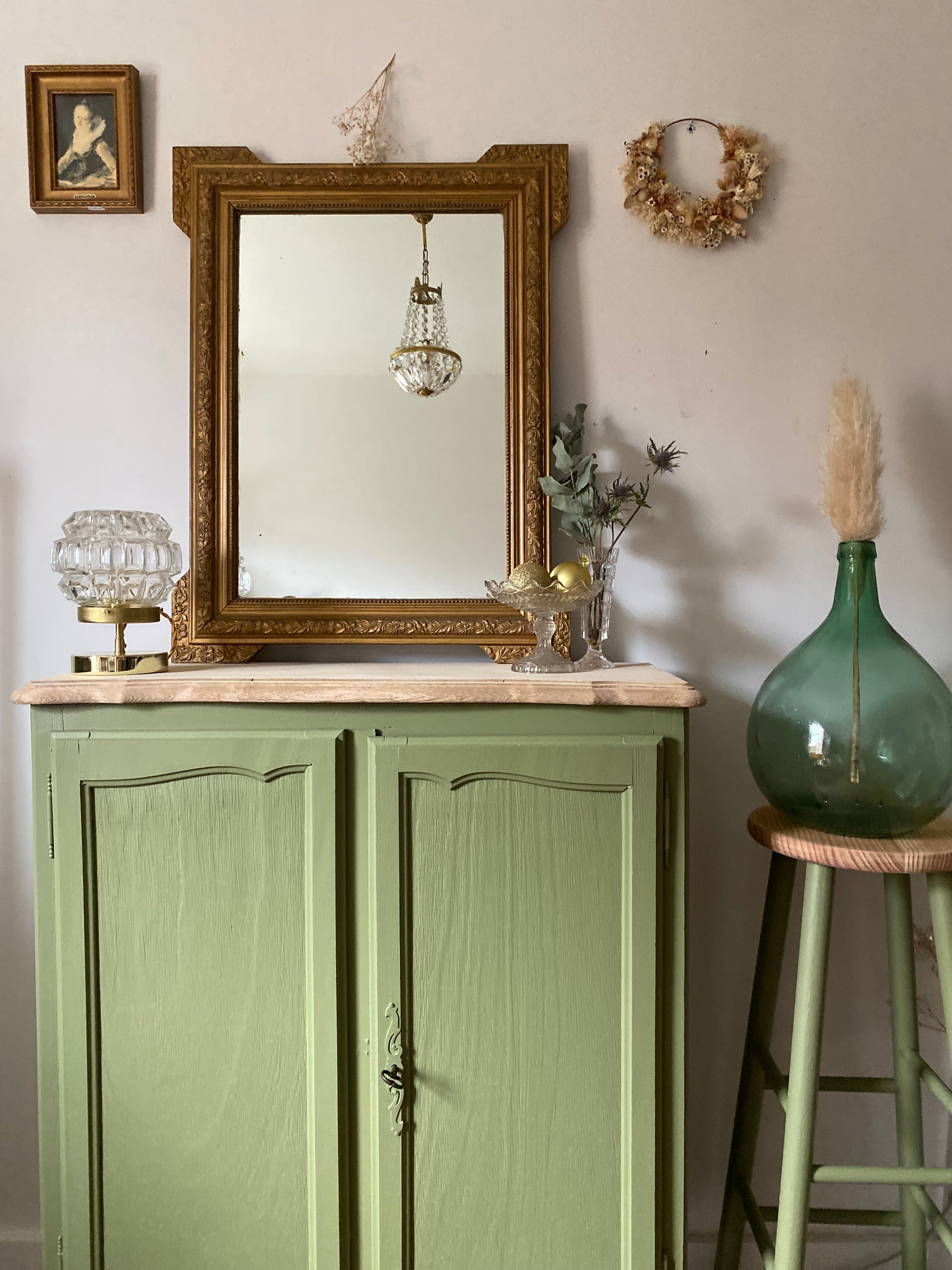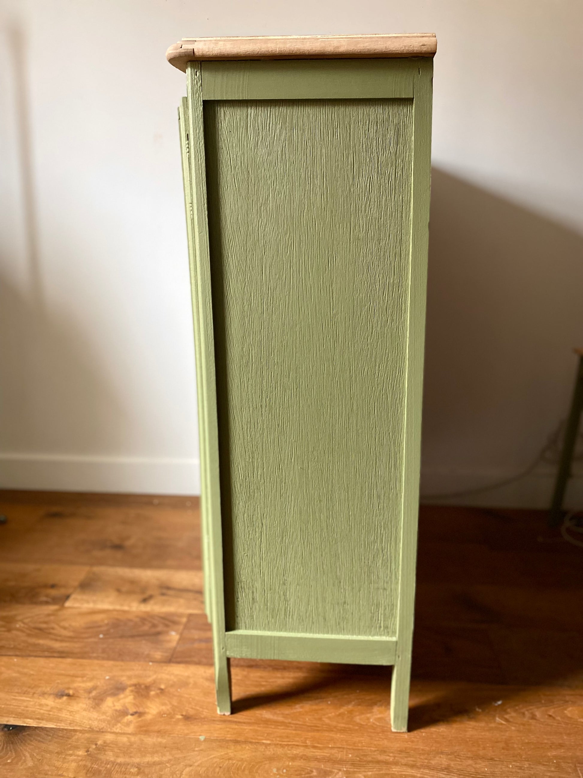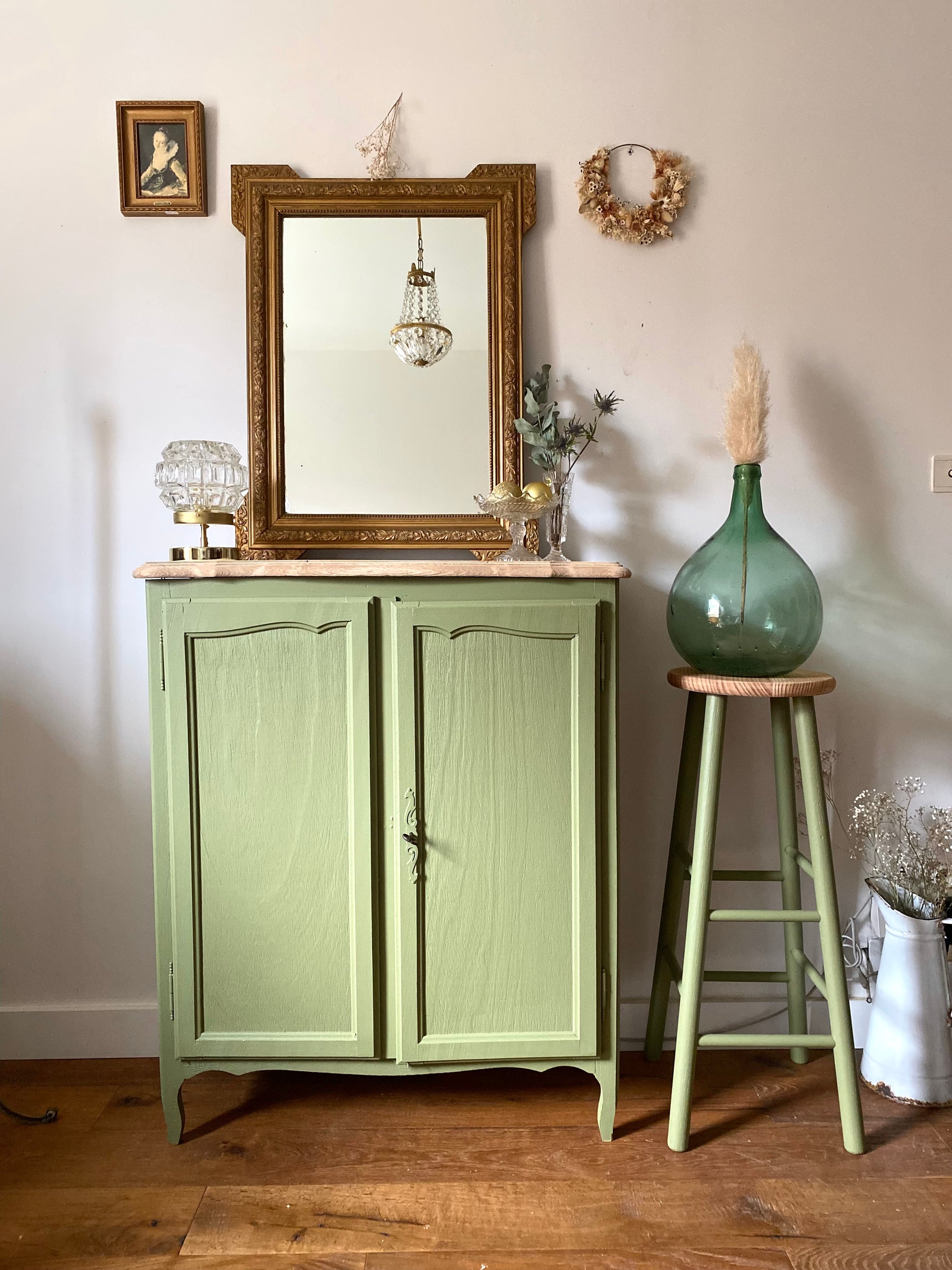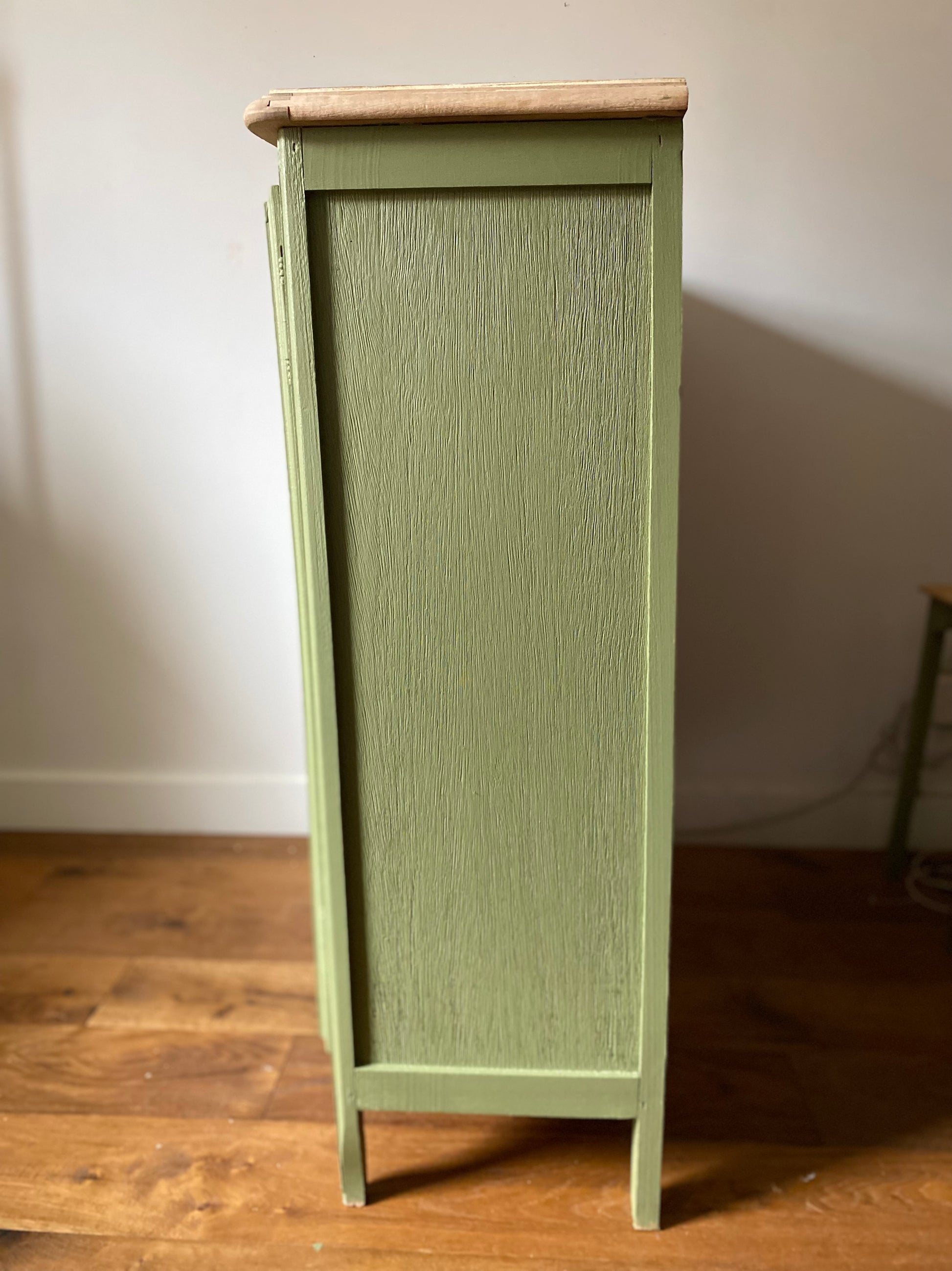Le meuble a été peint dans la jolie teinte Vert Botanique de Libéron.