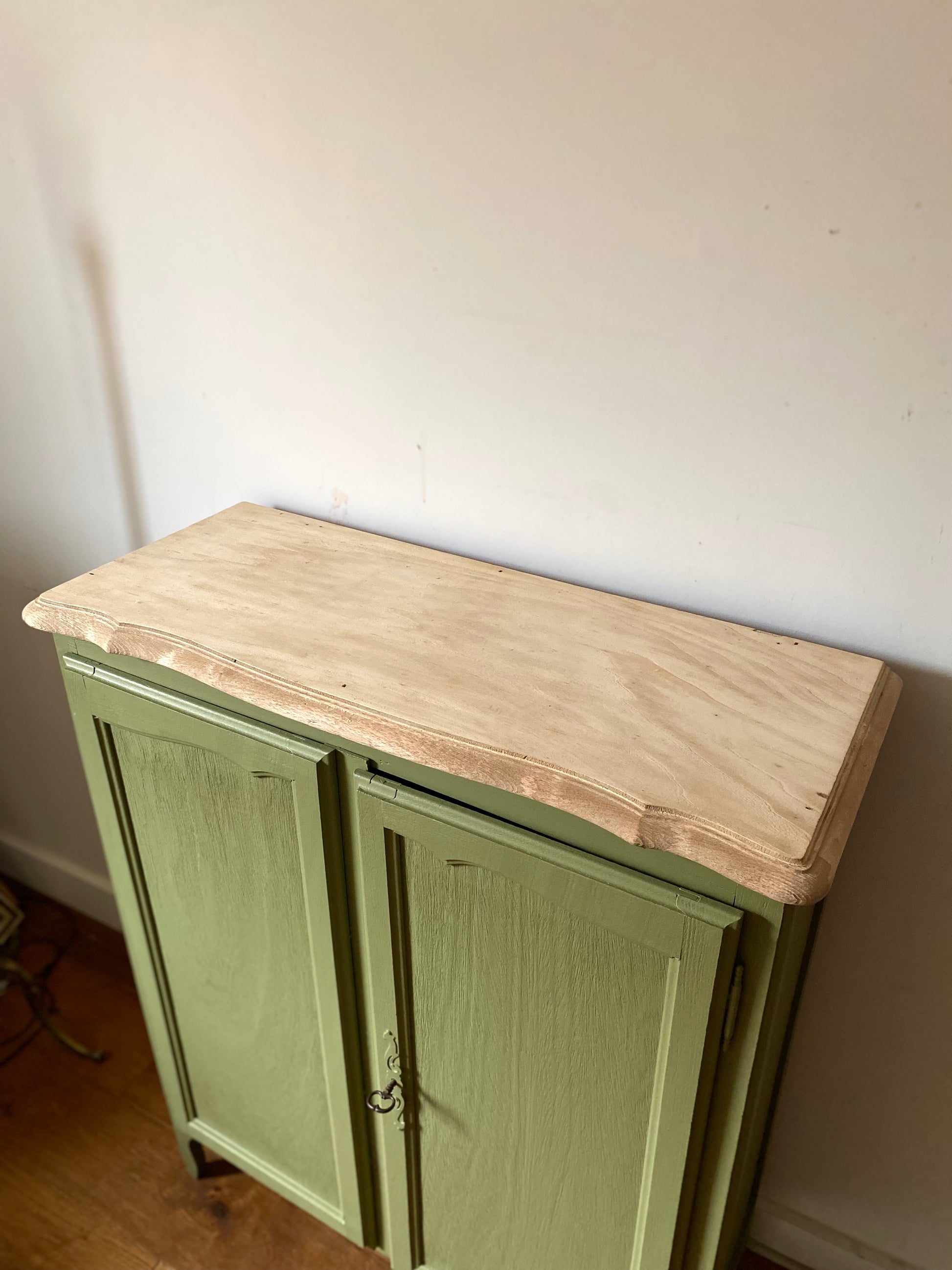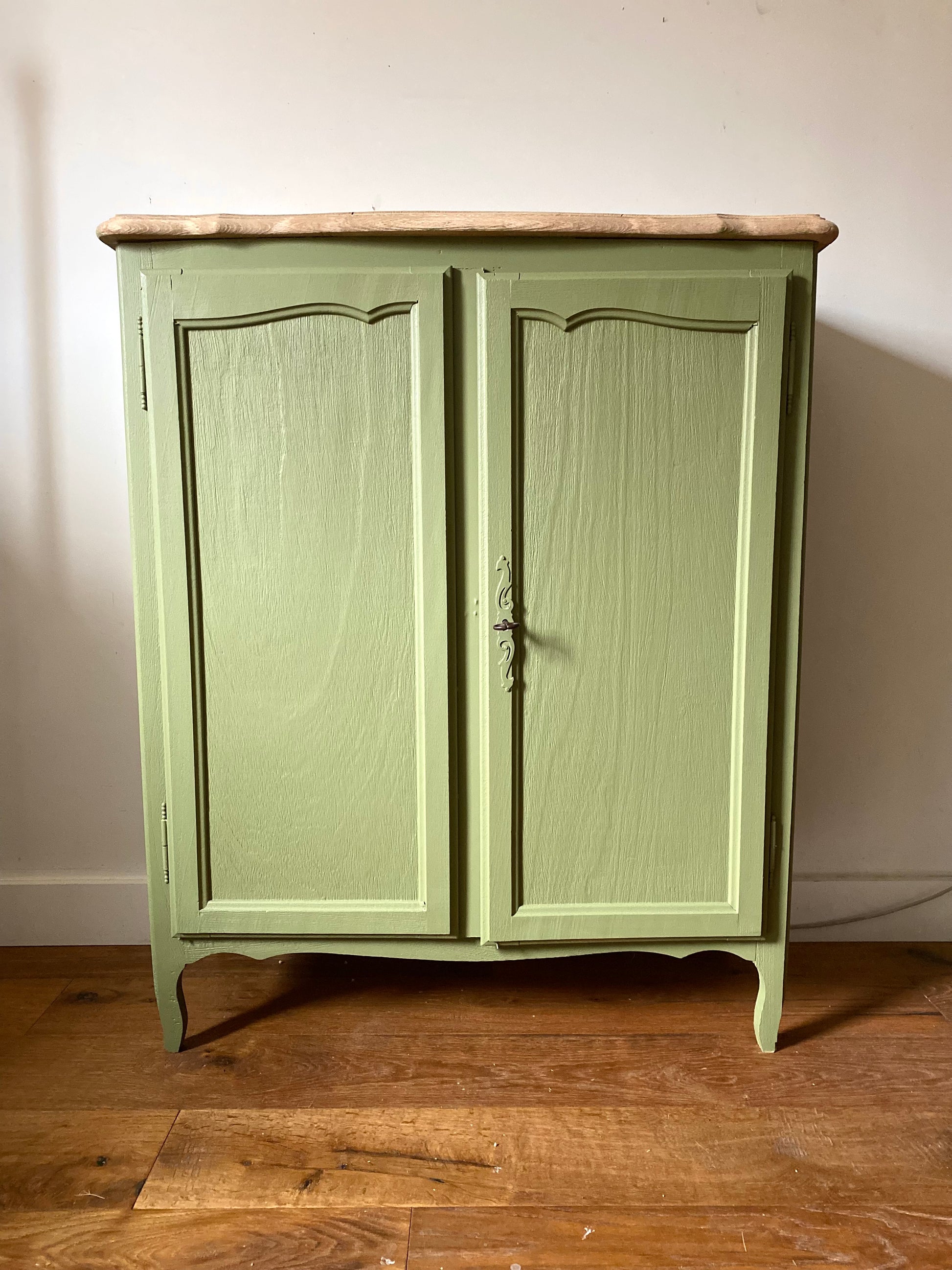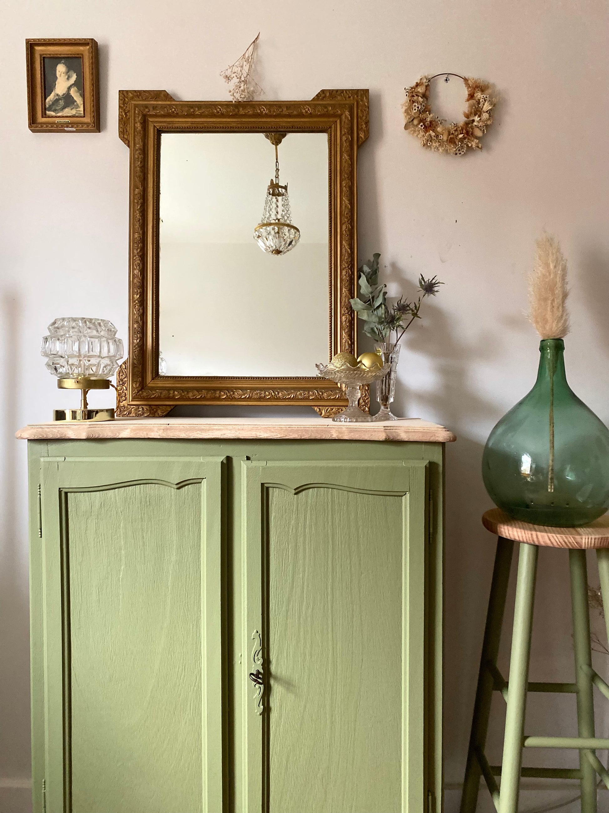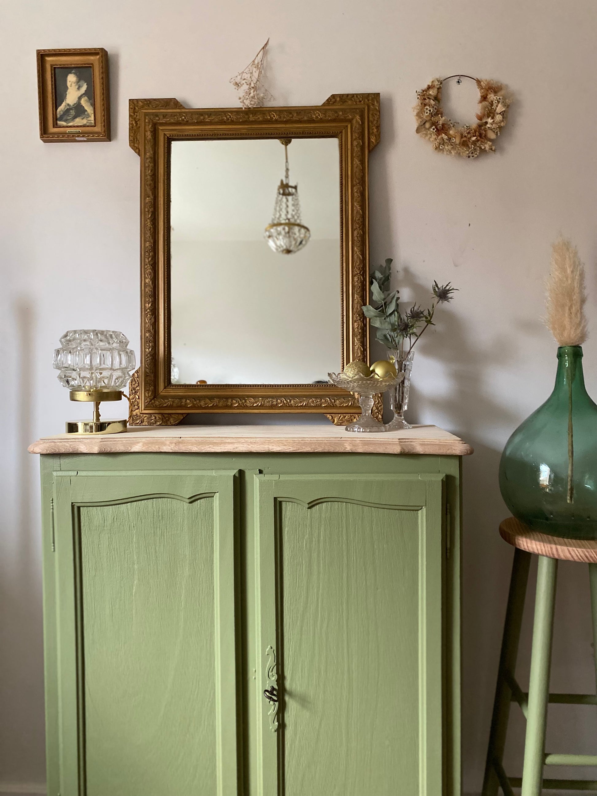 Le meuble a été peint dans la jolie teinte Vert Botanique de Libéron.
