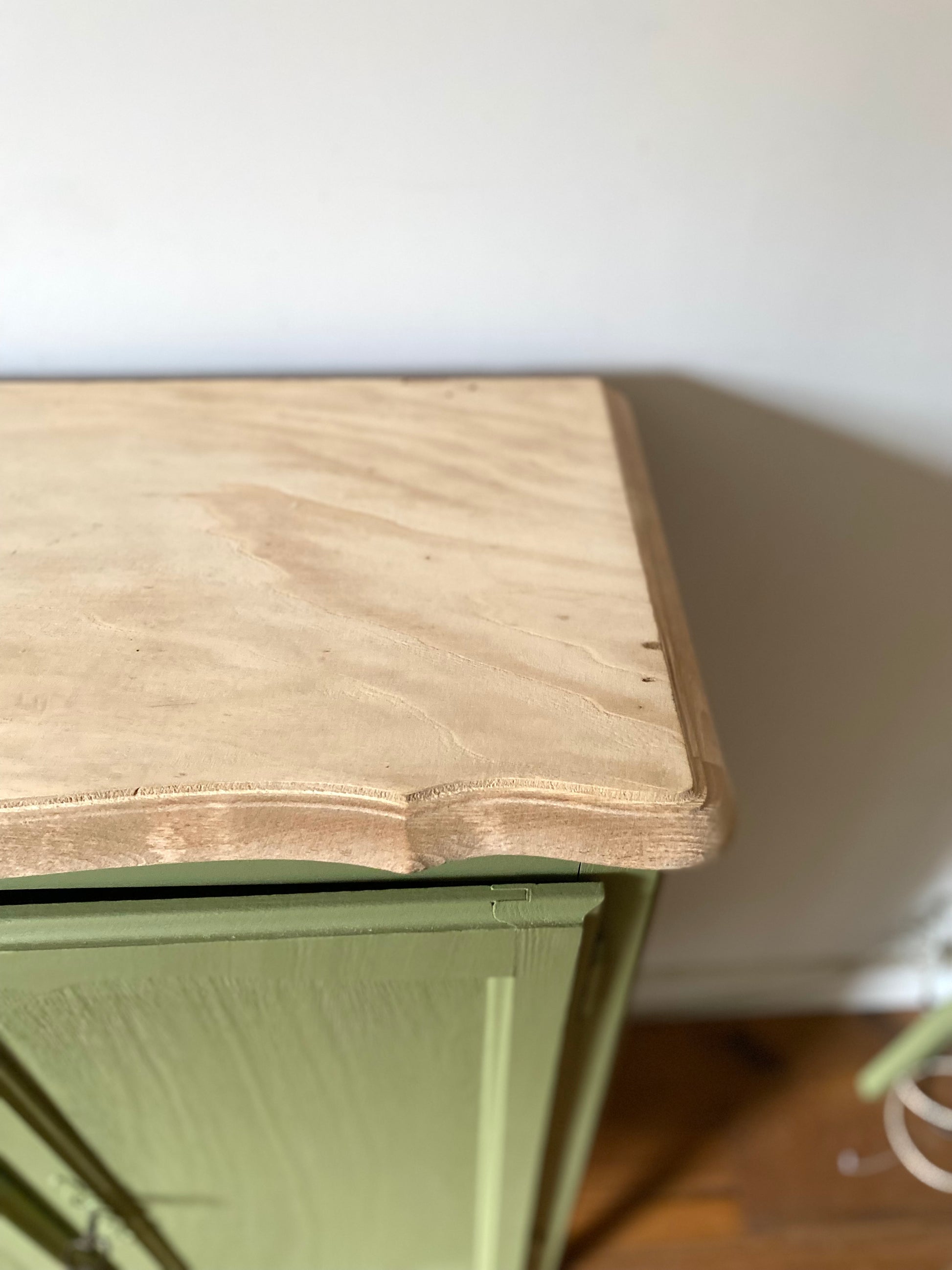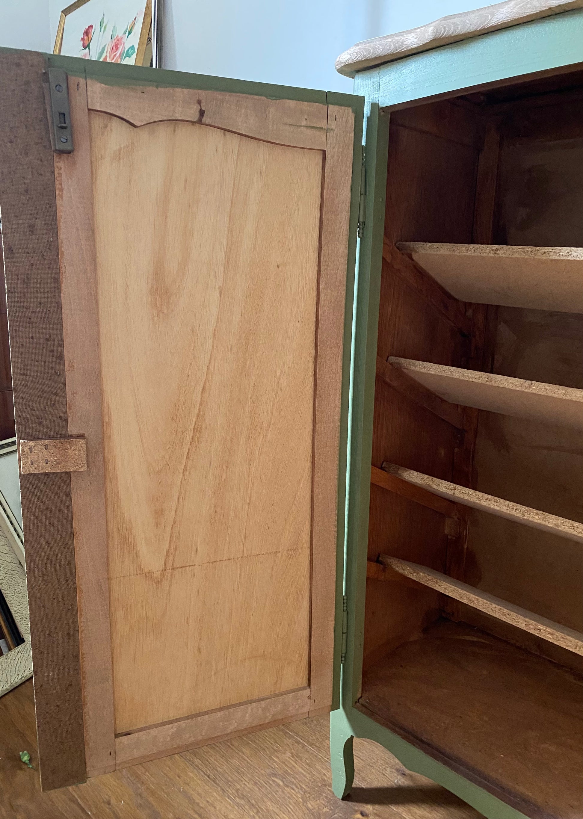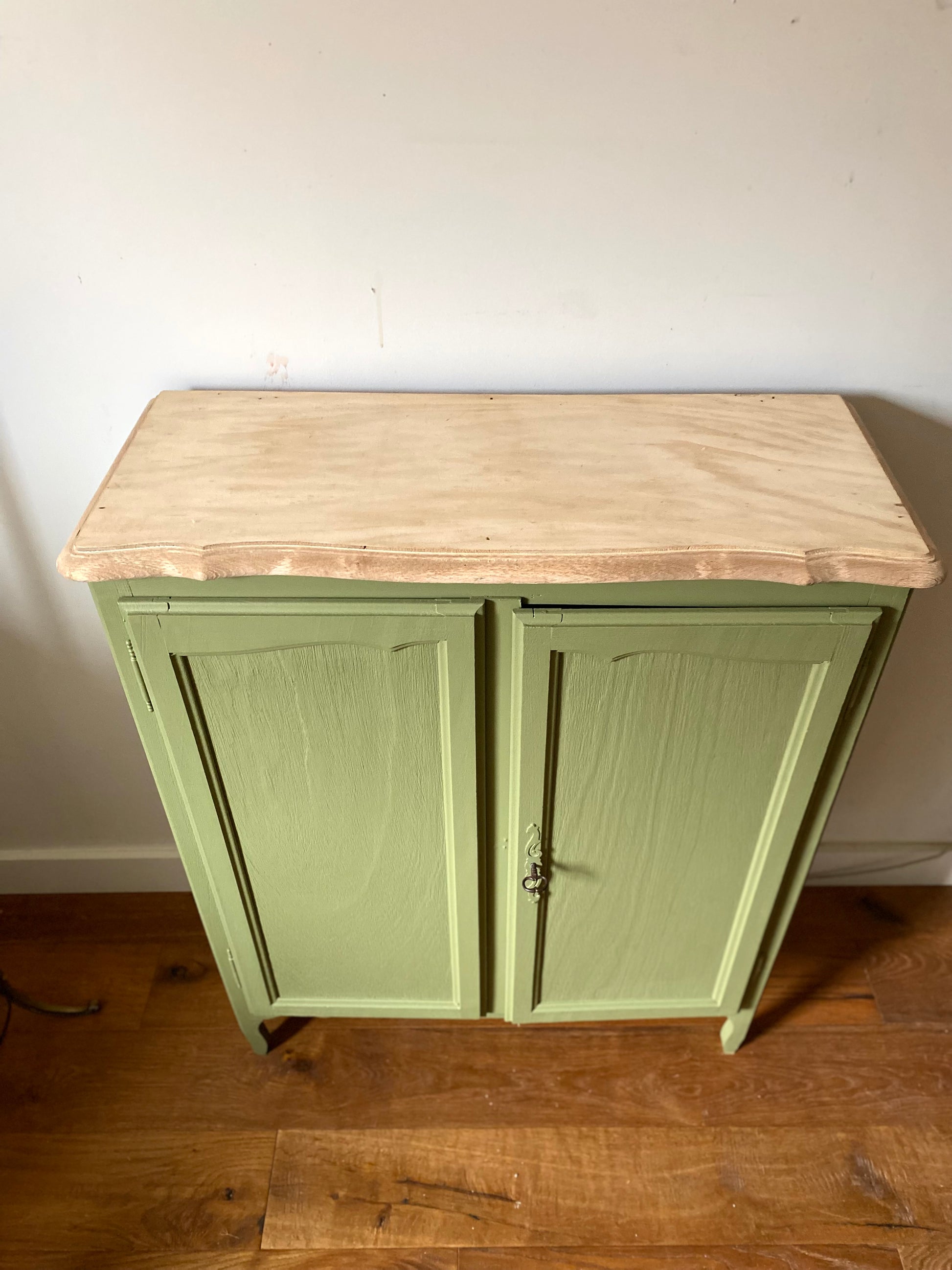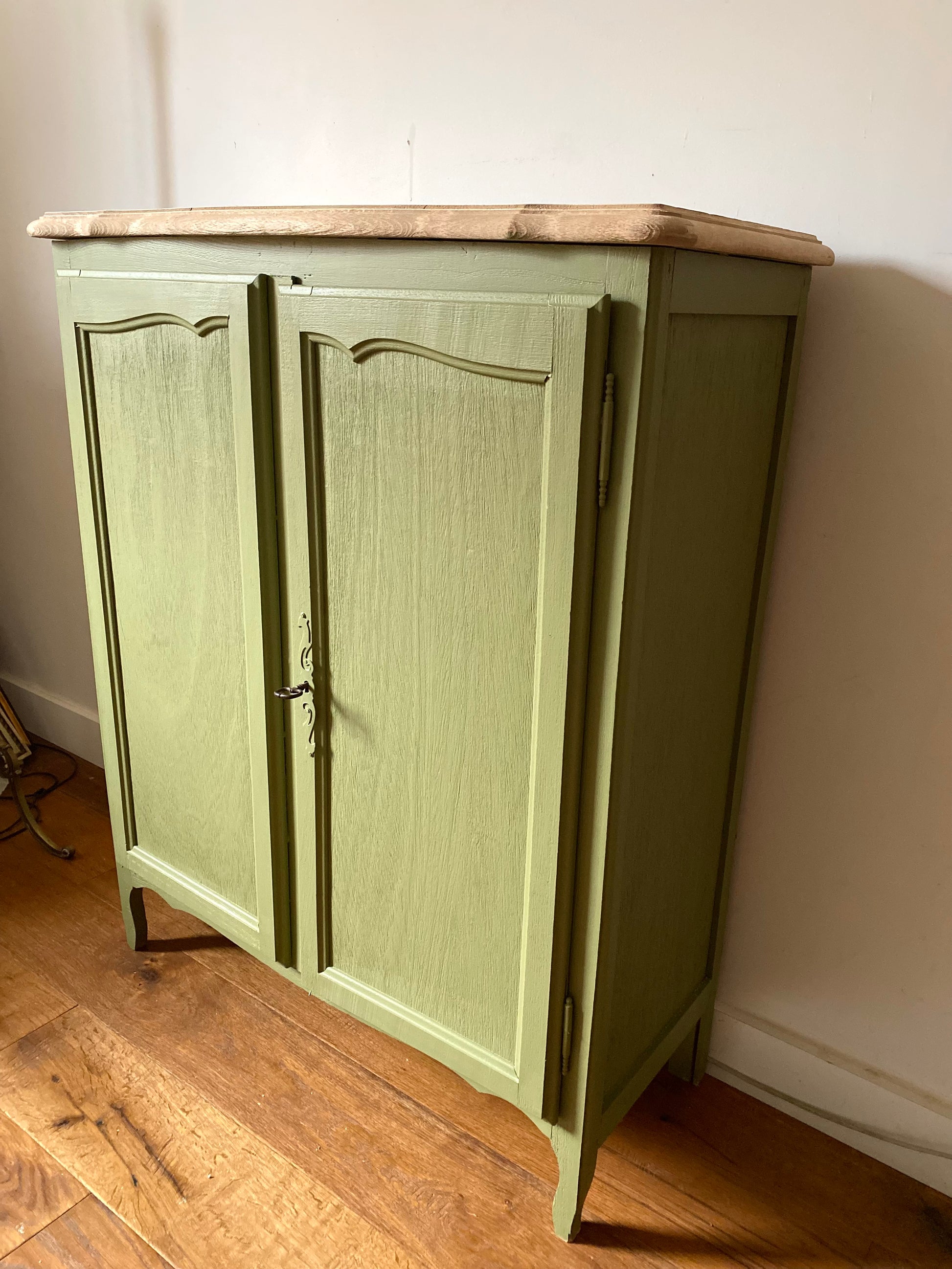 Le meuble a été peint dans la jolie teinte Vert Botanique de Libéron.