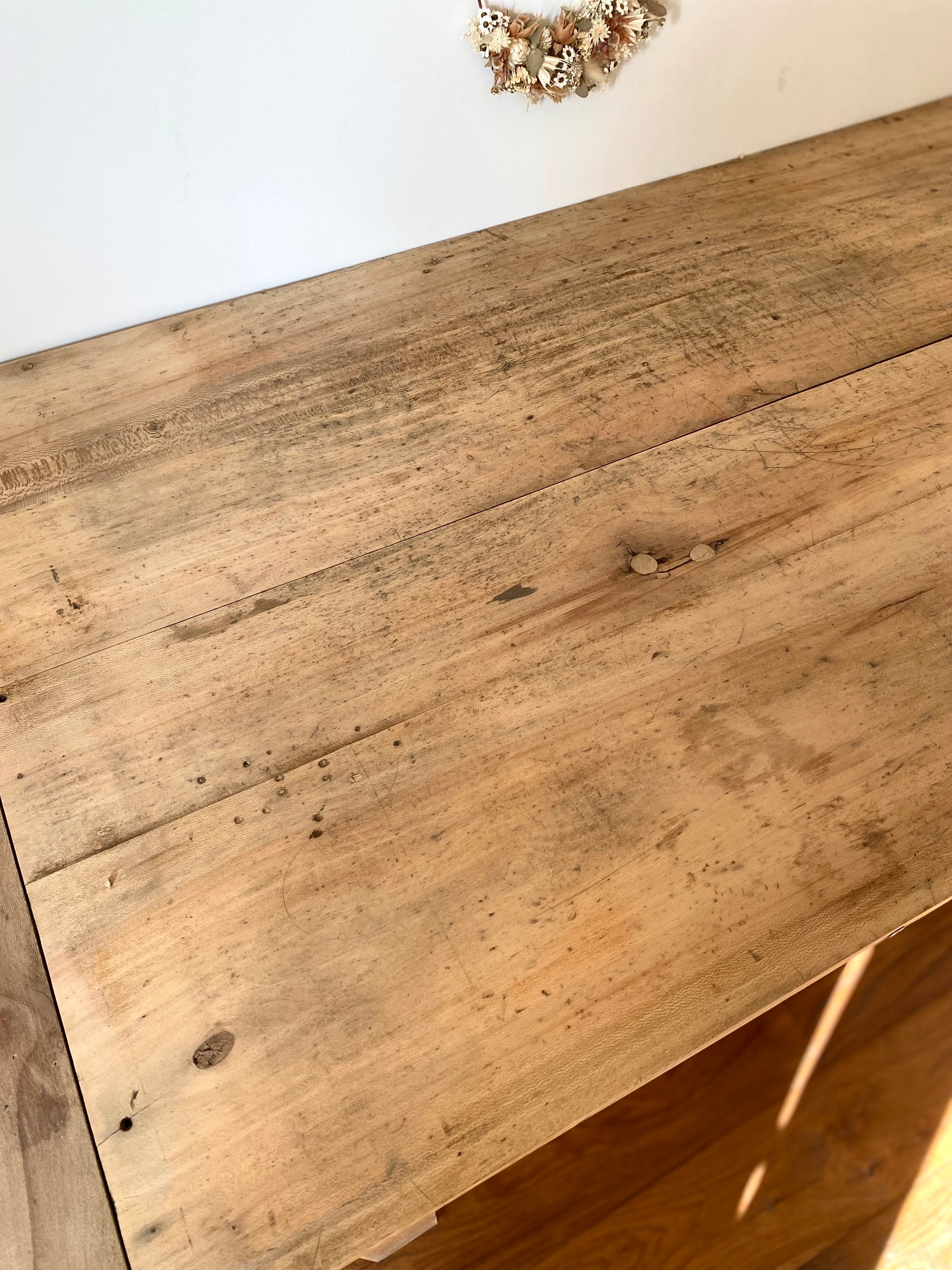 Ancien établis en bois massif qui fera maintenant un parfait grand bureau pour les adeptes de grand plan de travail !