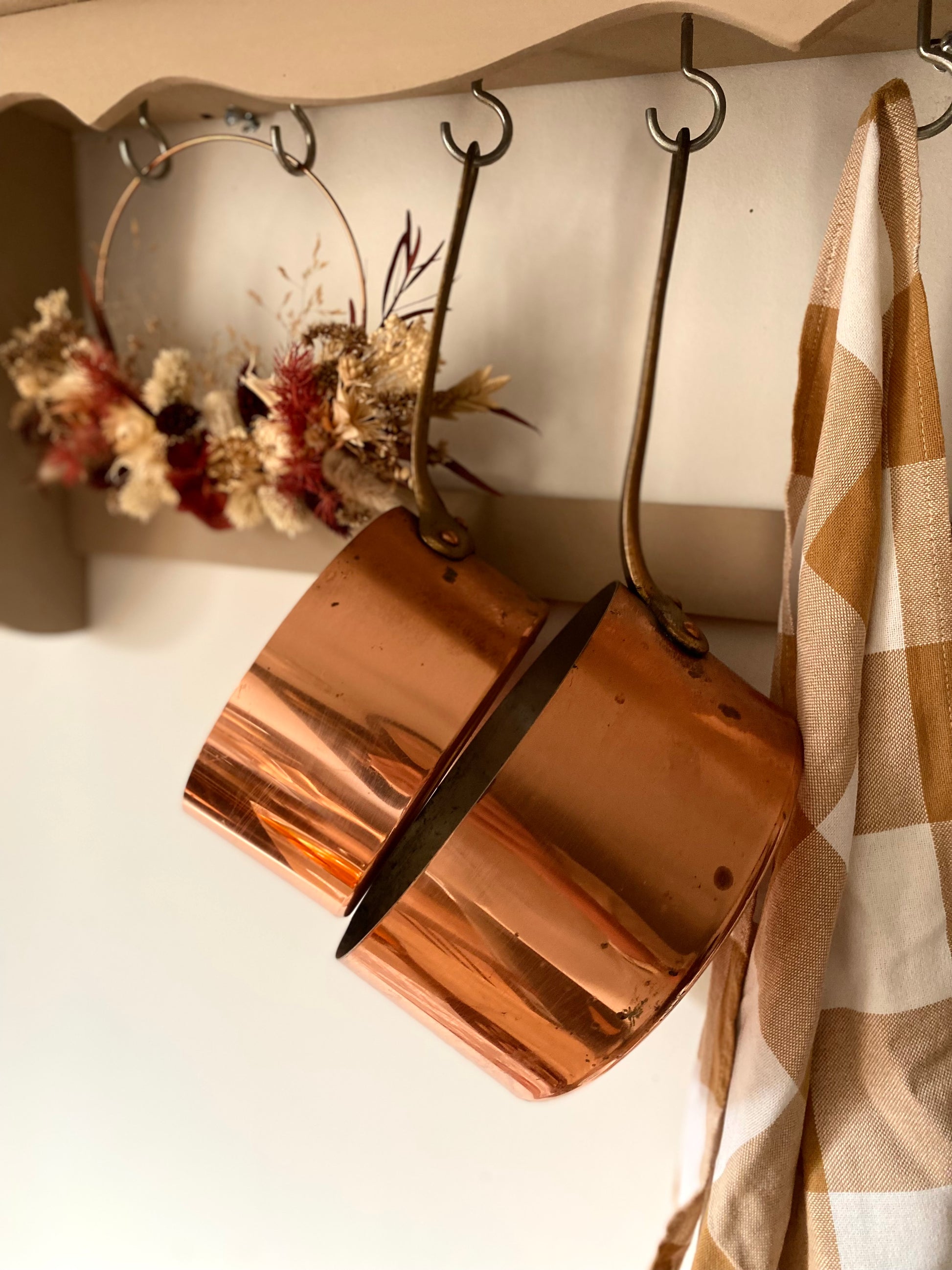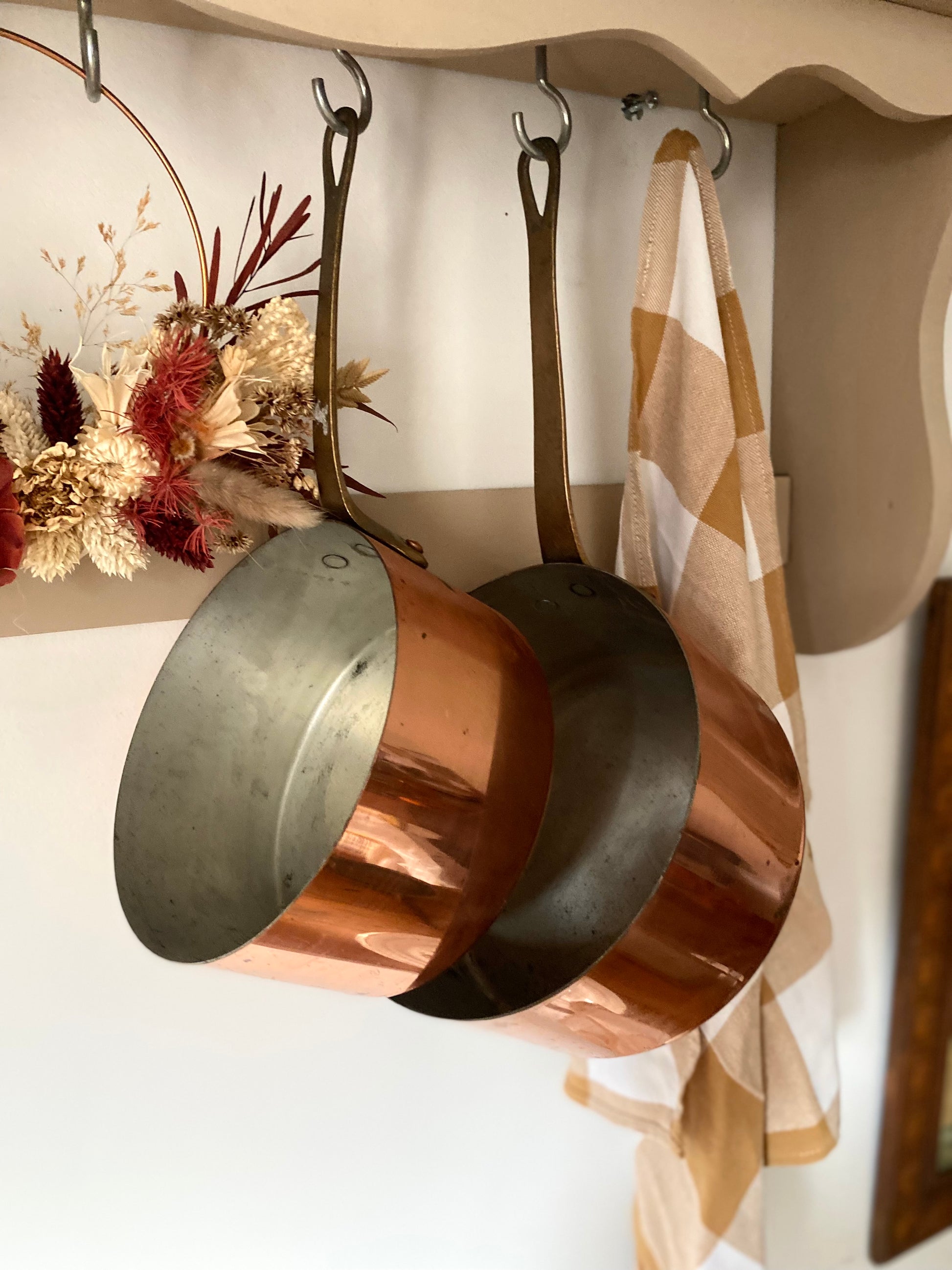 Duo de 2 belles casseroles en cuivre datant du milieu du XXe siècle (1920-1950).