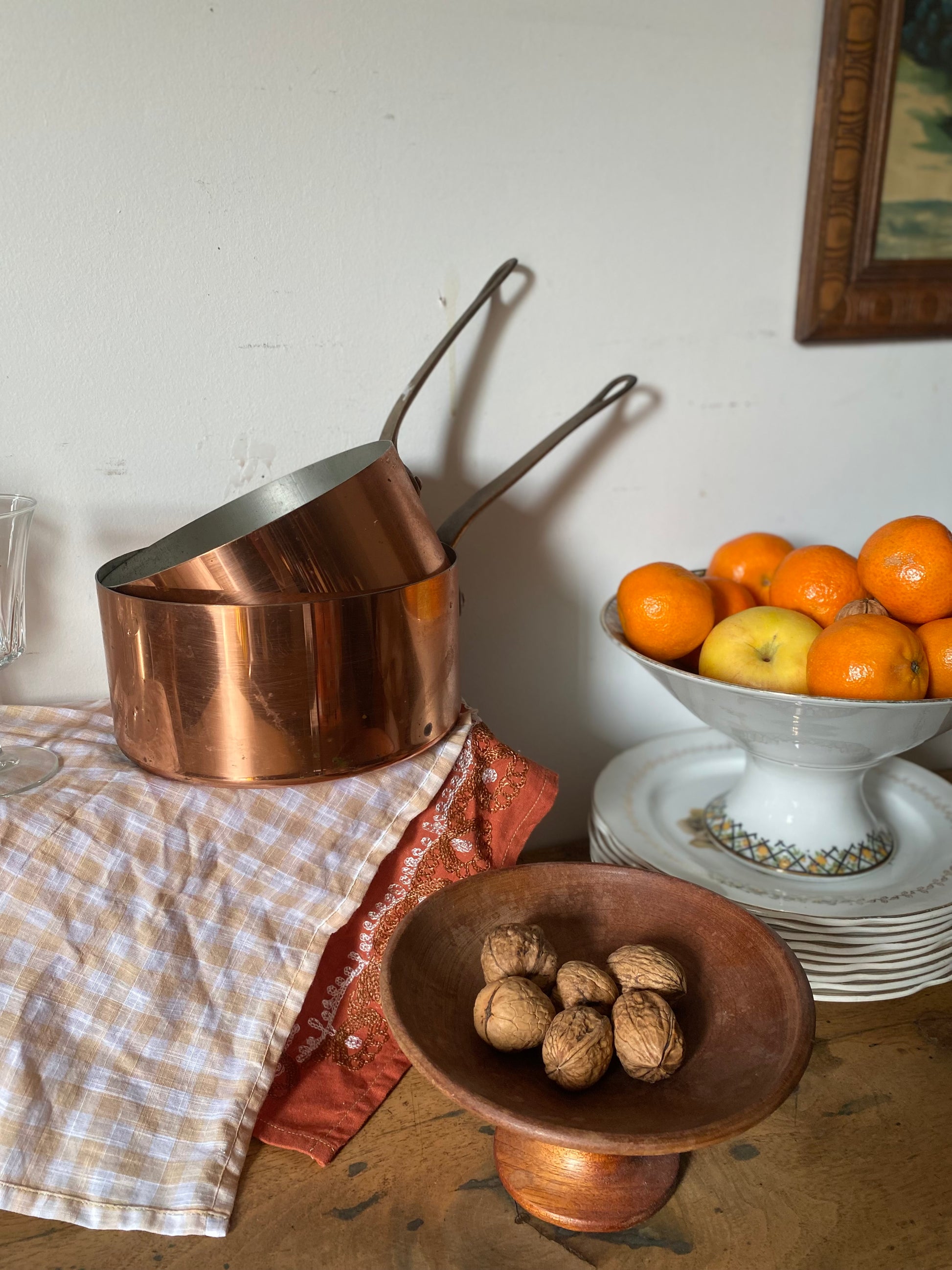 Casseroles en cuivre milieu du XXe siècle de fabrication française par Métaux Ouvrés Vesoul