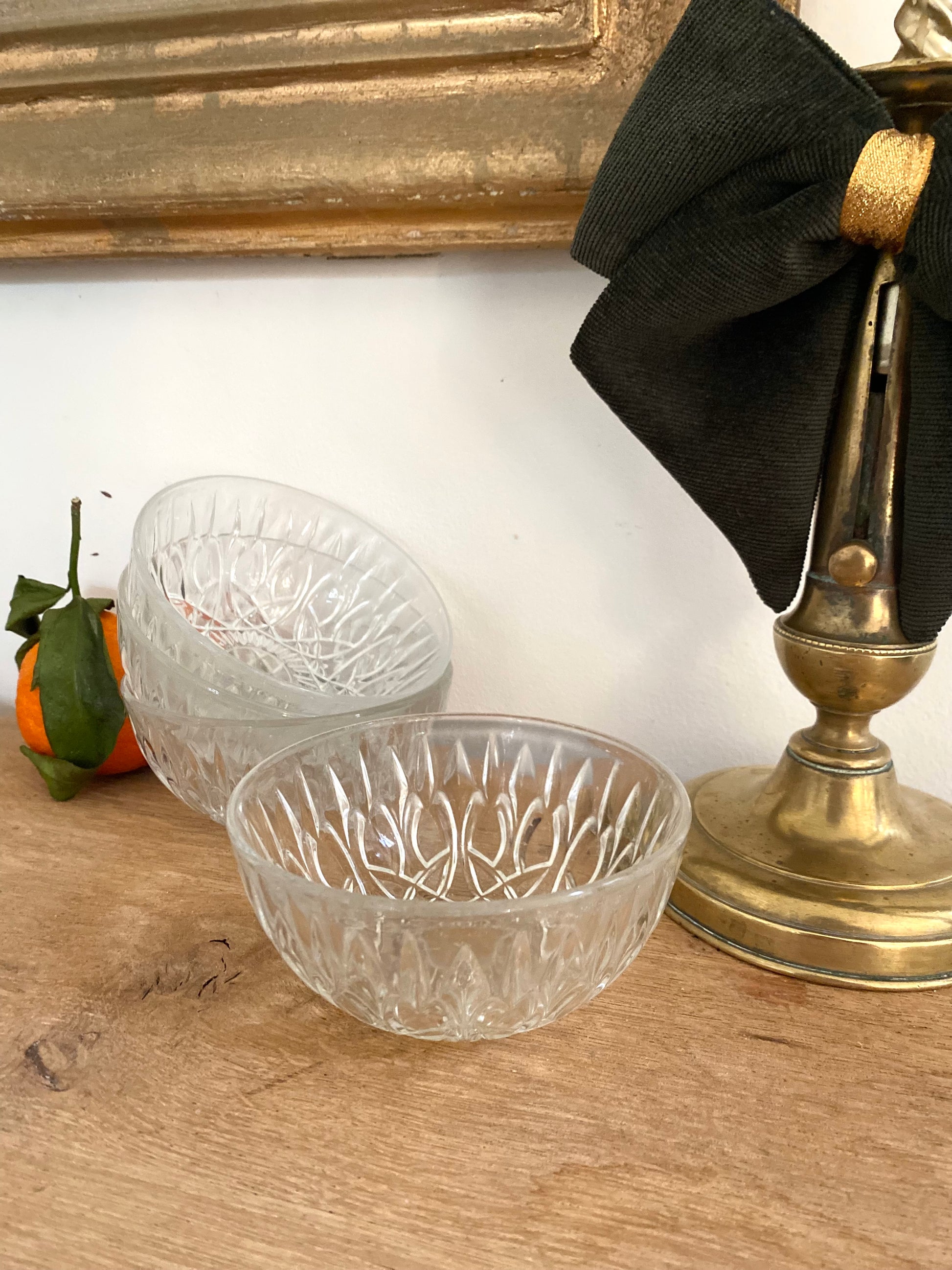 Élégant ensemble de 4 coupelles ou ramequins en verre moulé ancien.