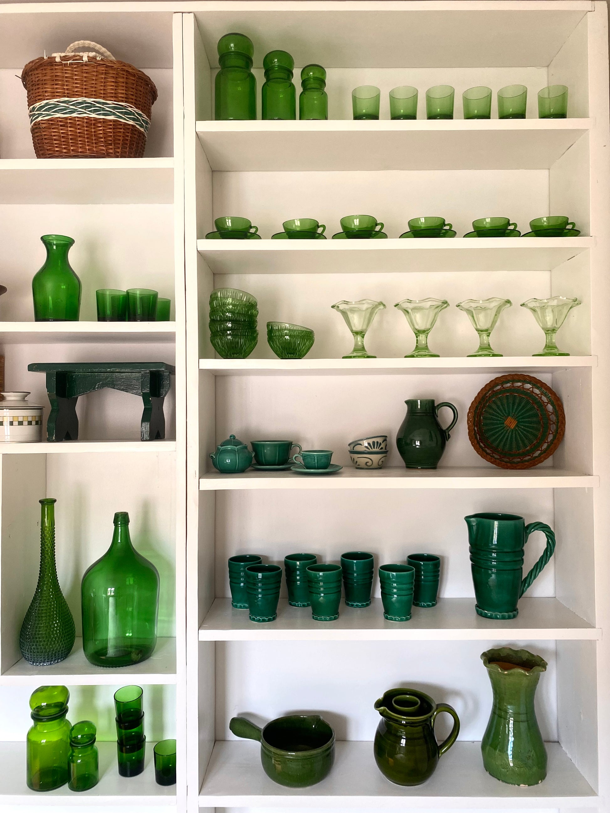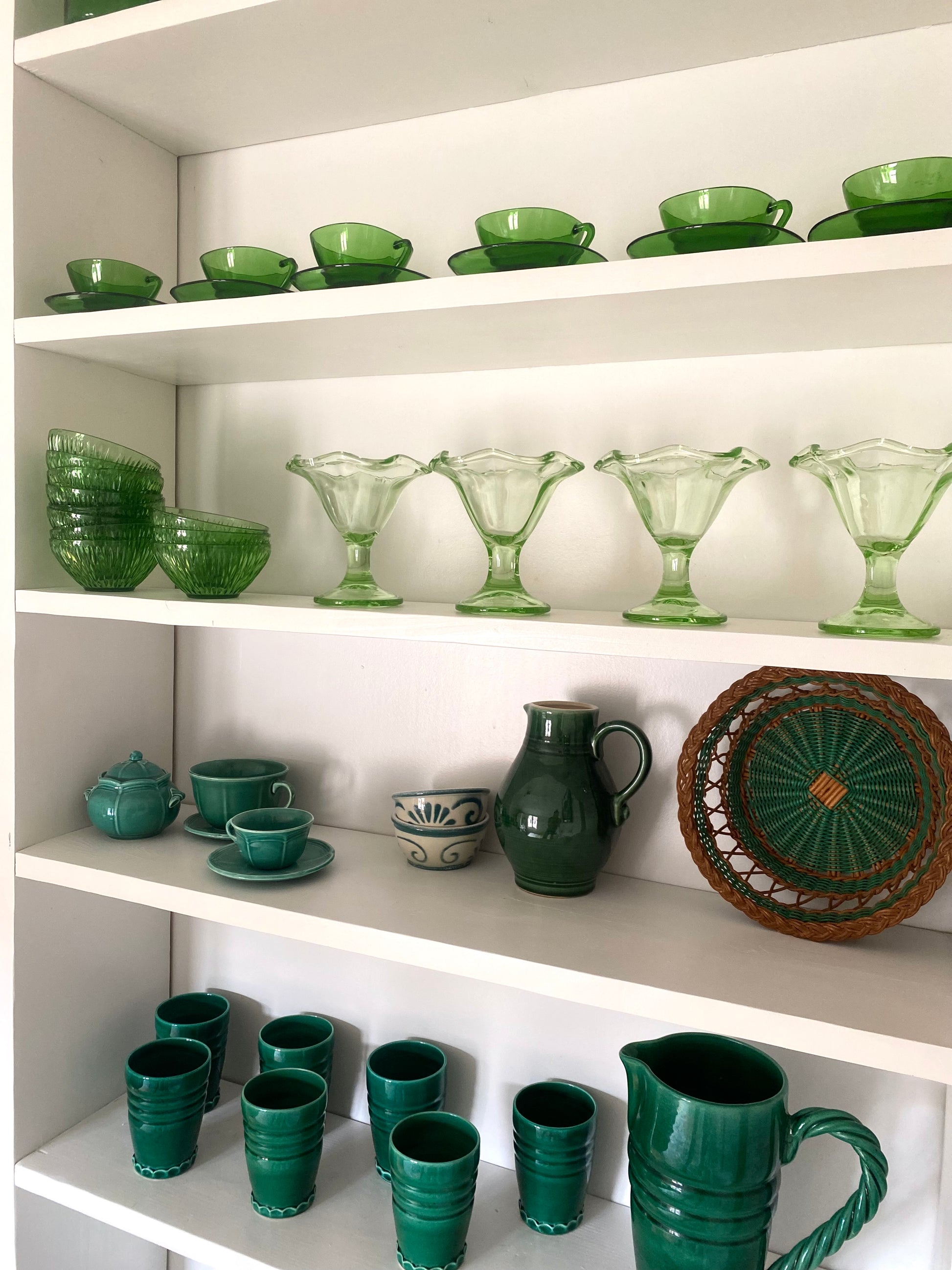 Ensemble de 4 coupes à glace vertes à la silhouette délicieusement rétro en verre ancien