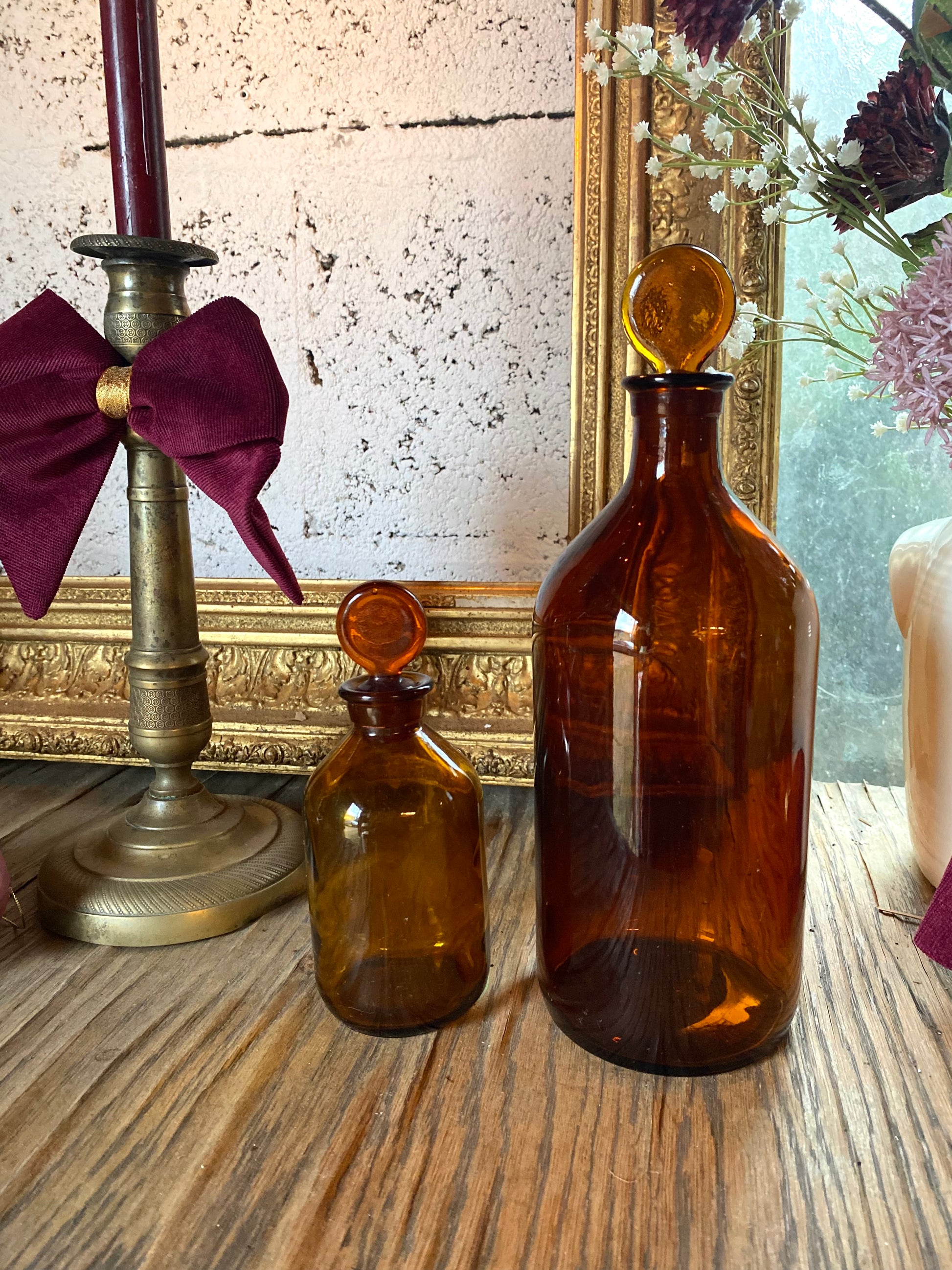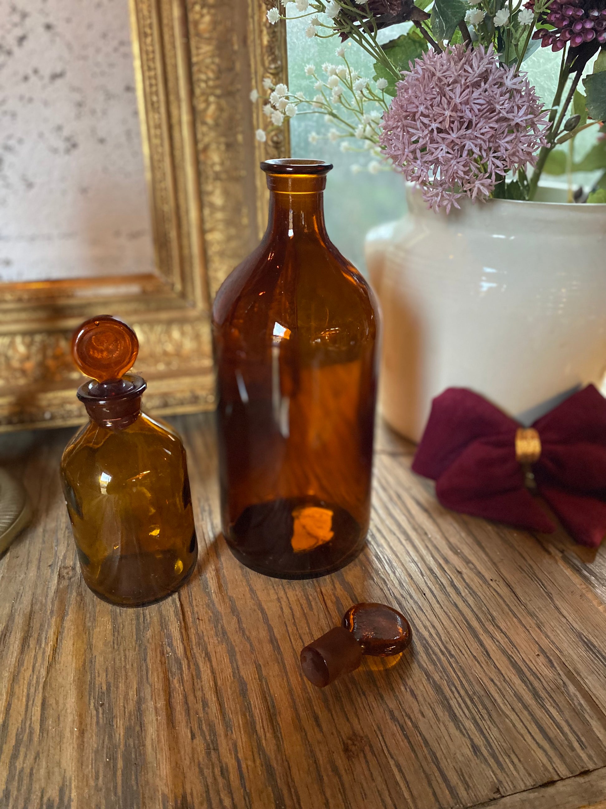Ravissant duo de Flacons de laboratoire ou de pharmacie français du début du XXe siècle (période 1920-1940), fabriqués par un producteur majeur de l’époque .