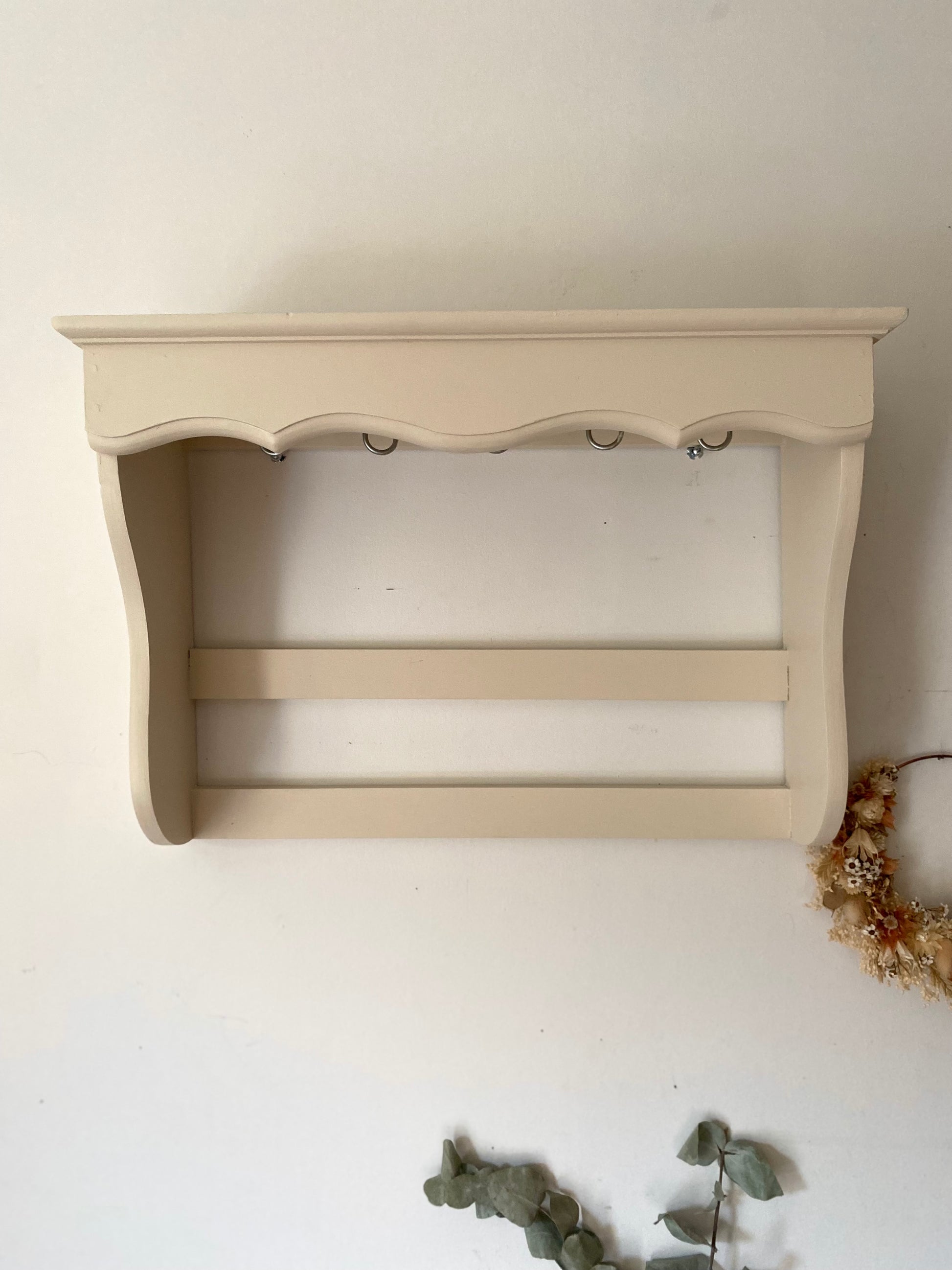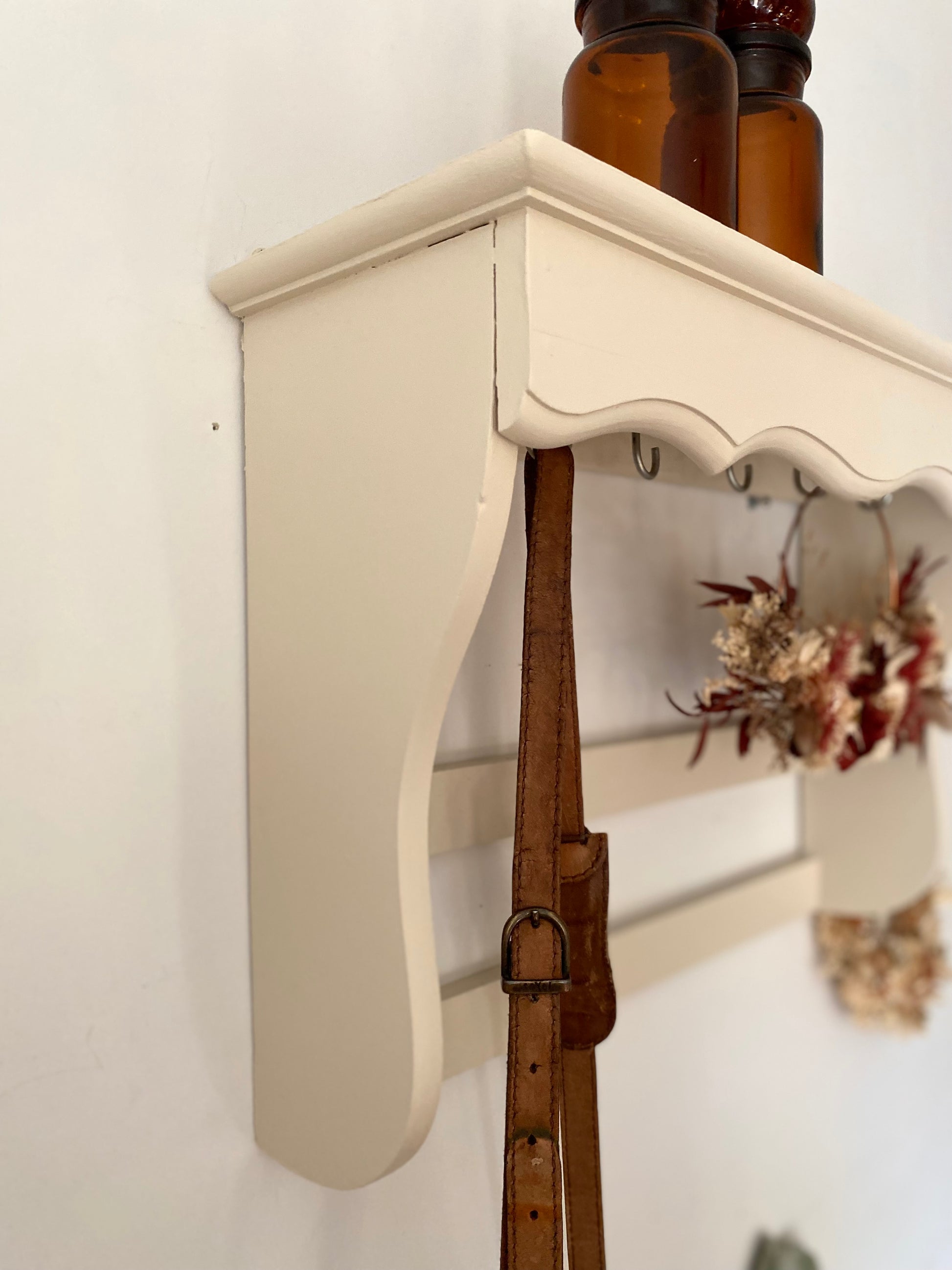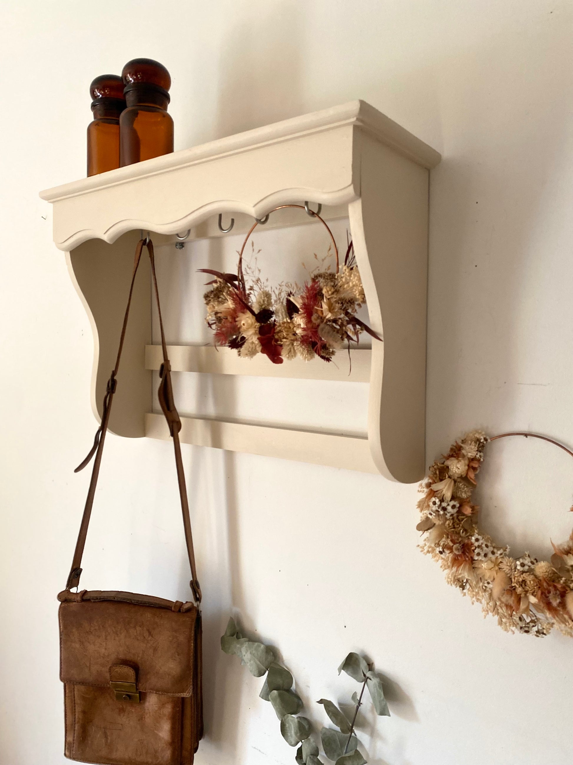 Ravissante étagère murale en bois ancien rénové dans la lumineuse teinte Ivoire d’Orfèvre de Liberon