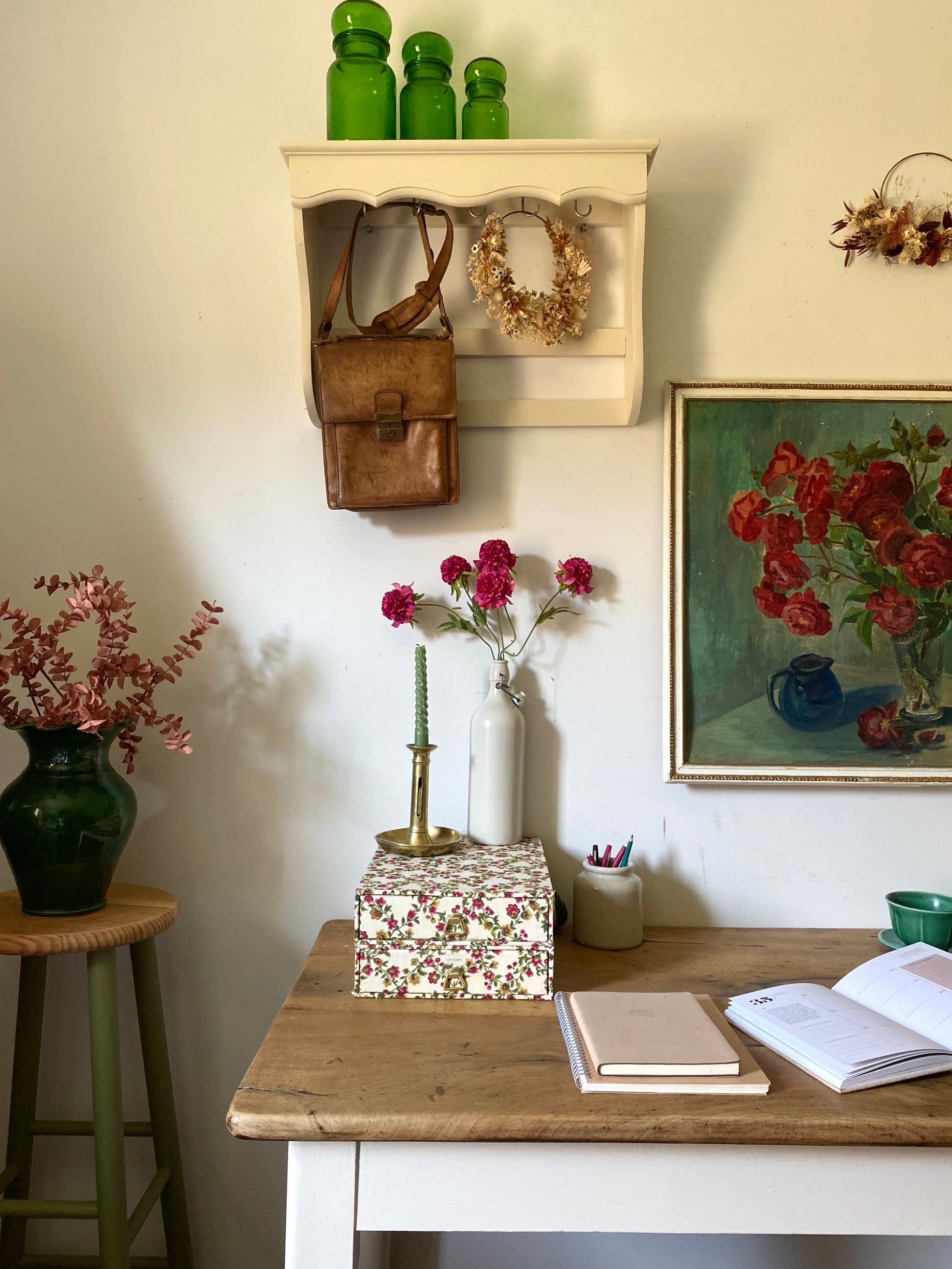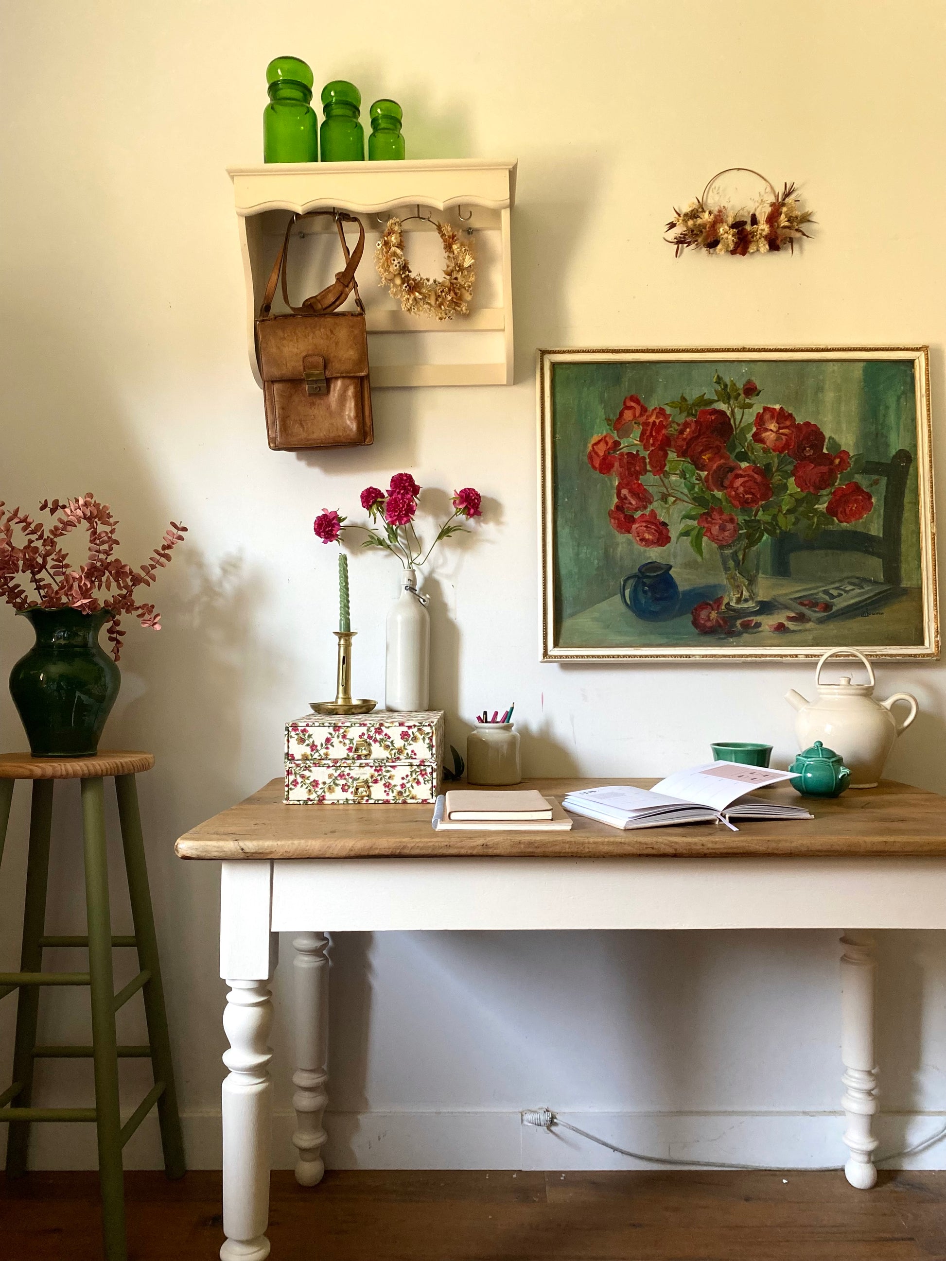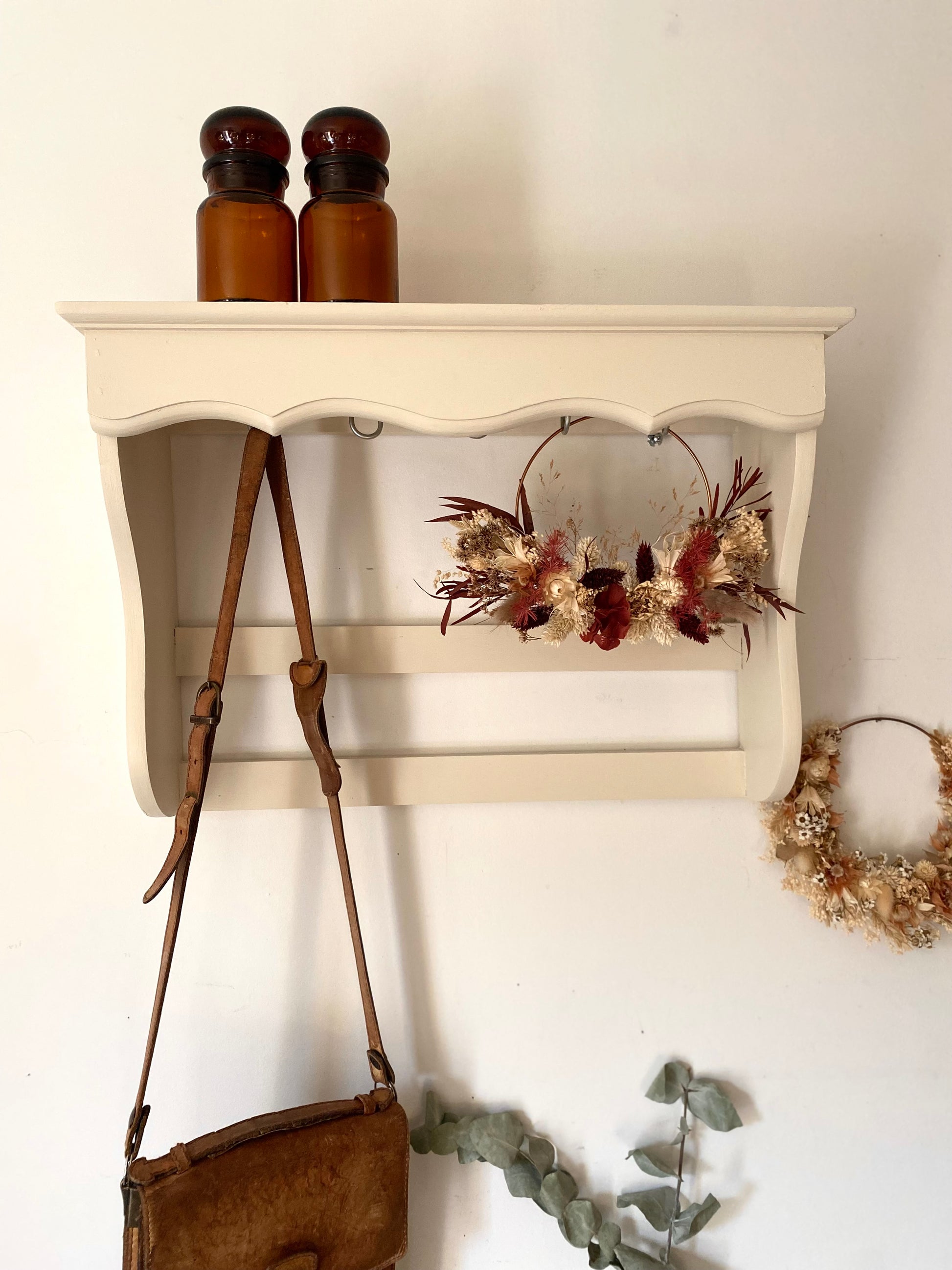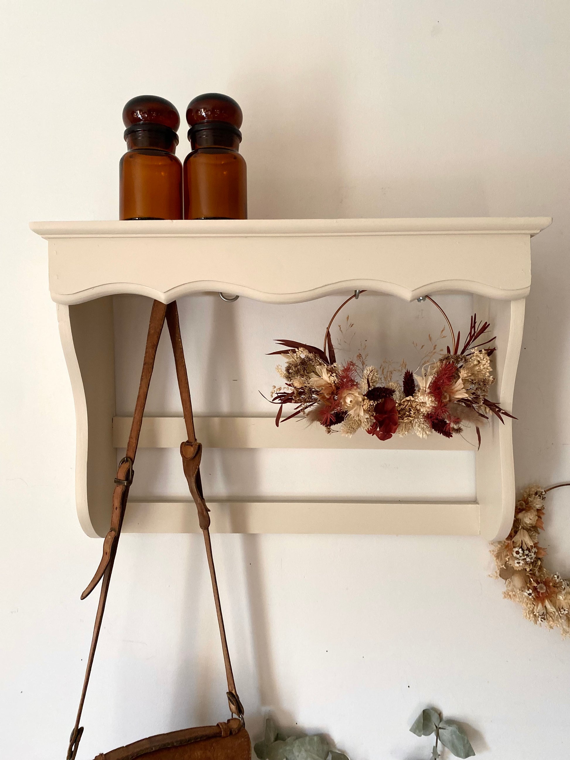 Ravissante étagère murale en bois ancien rénové dans la lumineuse teinte Ivoire d’Orfèvre de Liberon