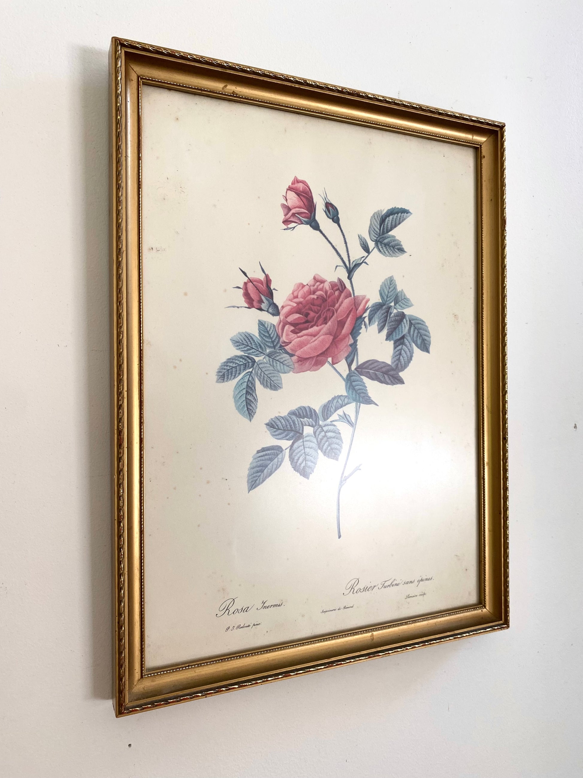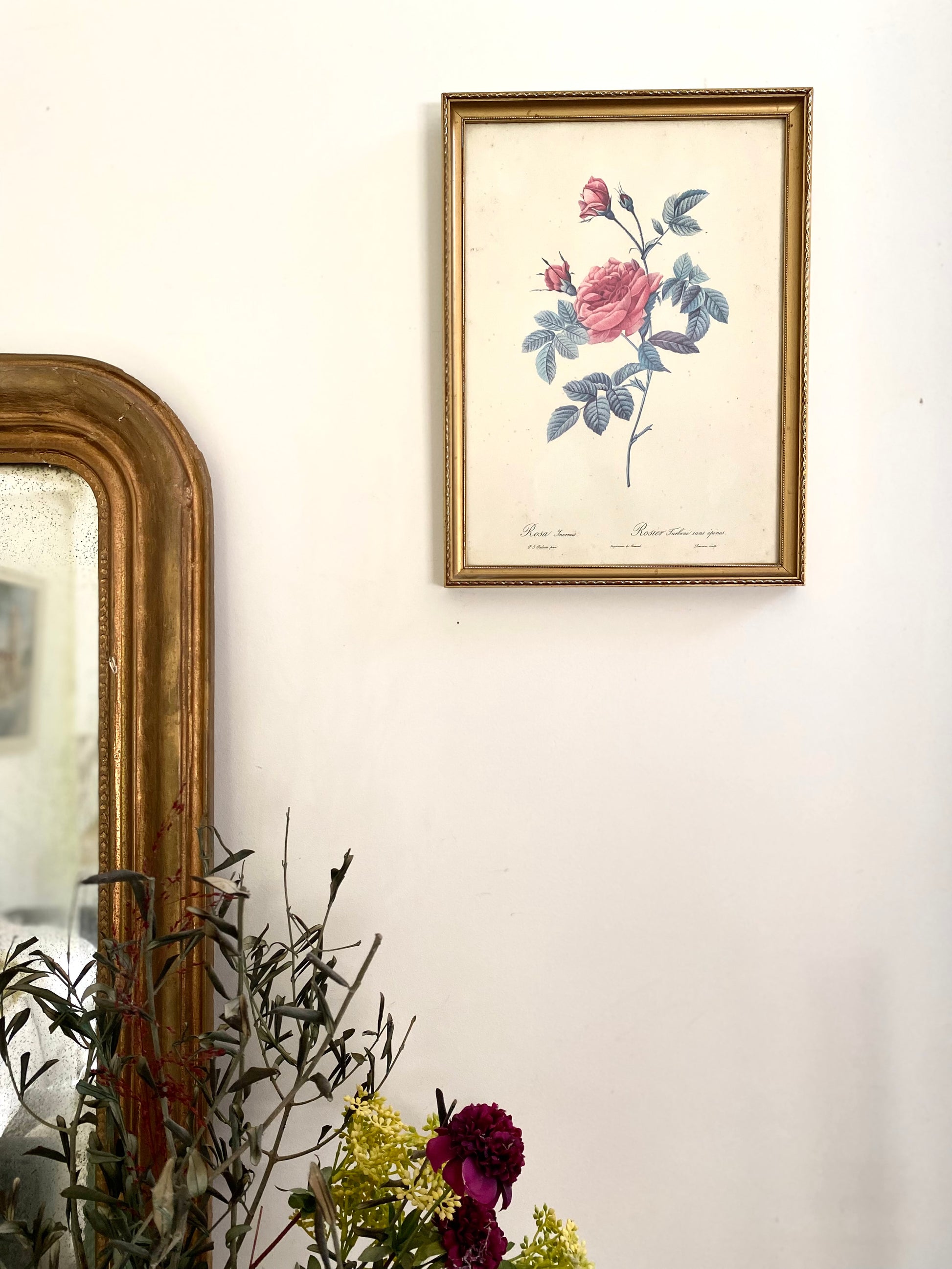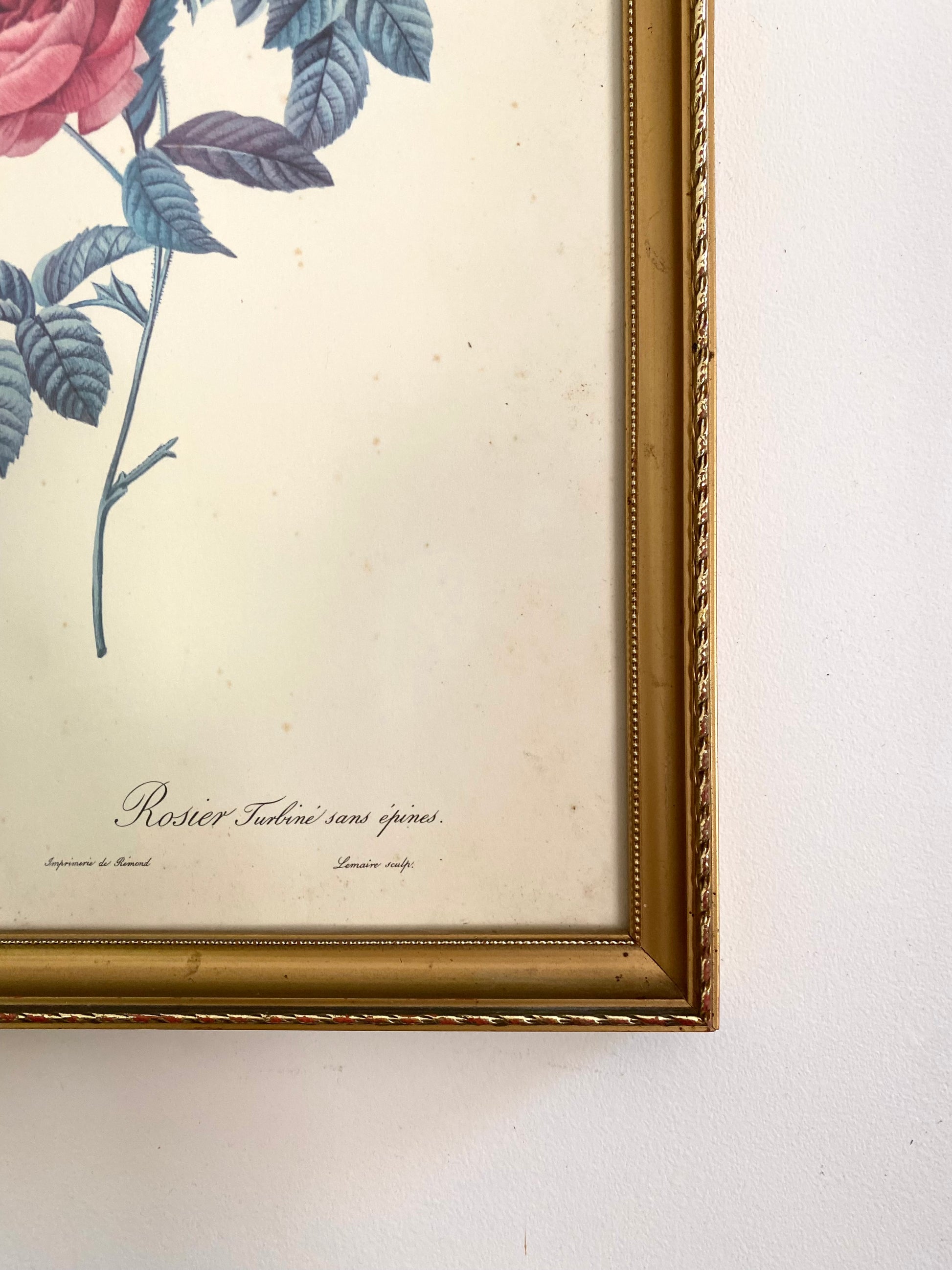 Ravissante illustration botanique ancienne dans un joli cadre doré au bois délicatement travaillé