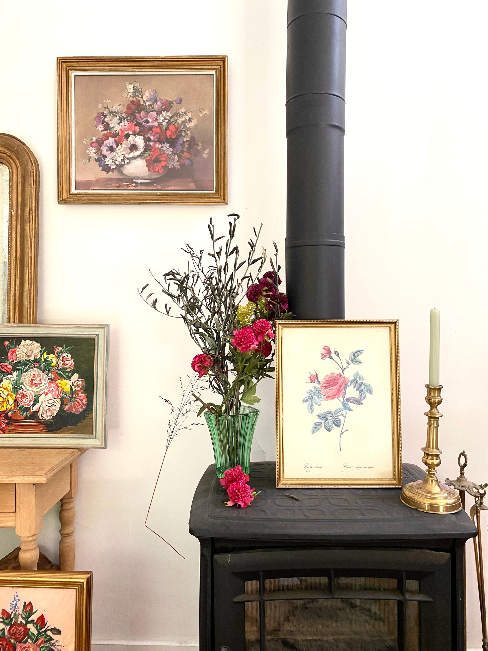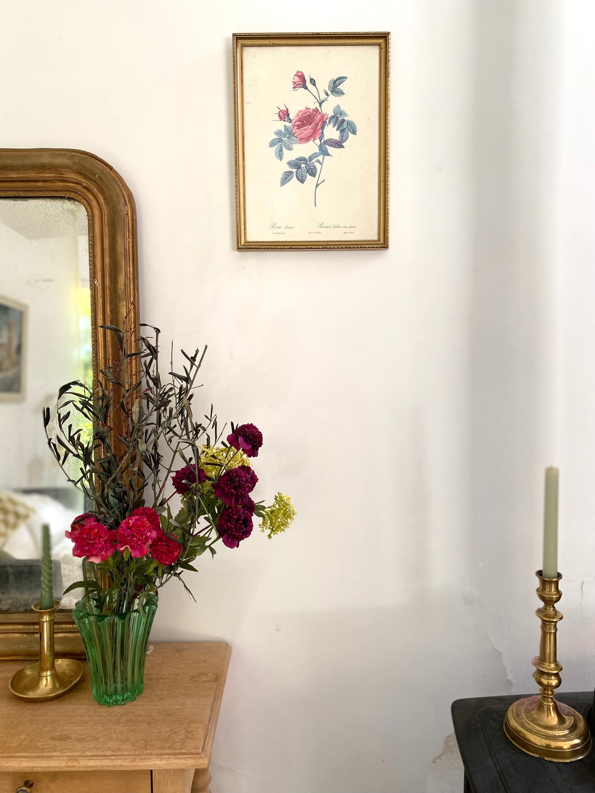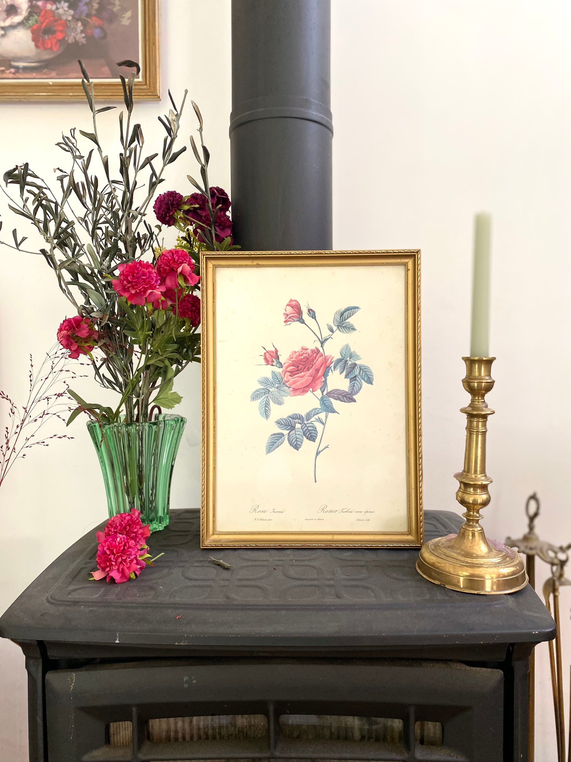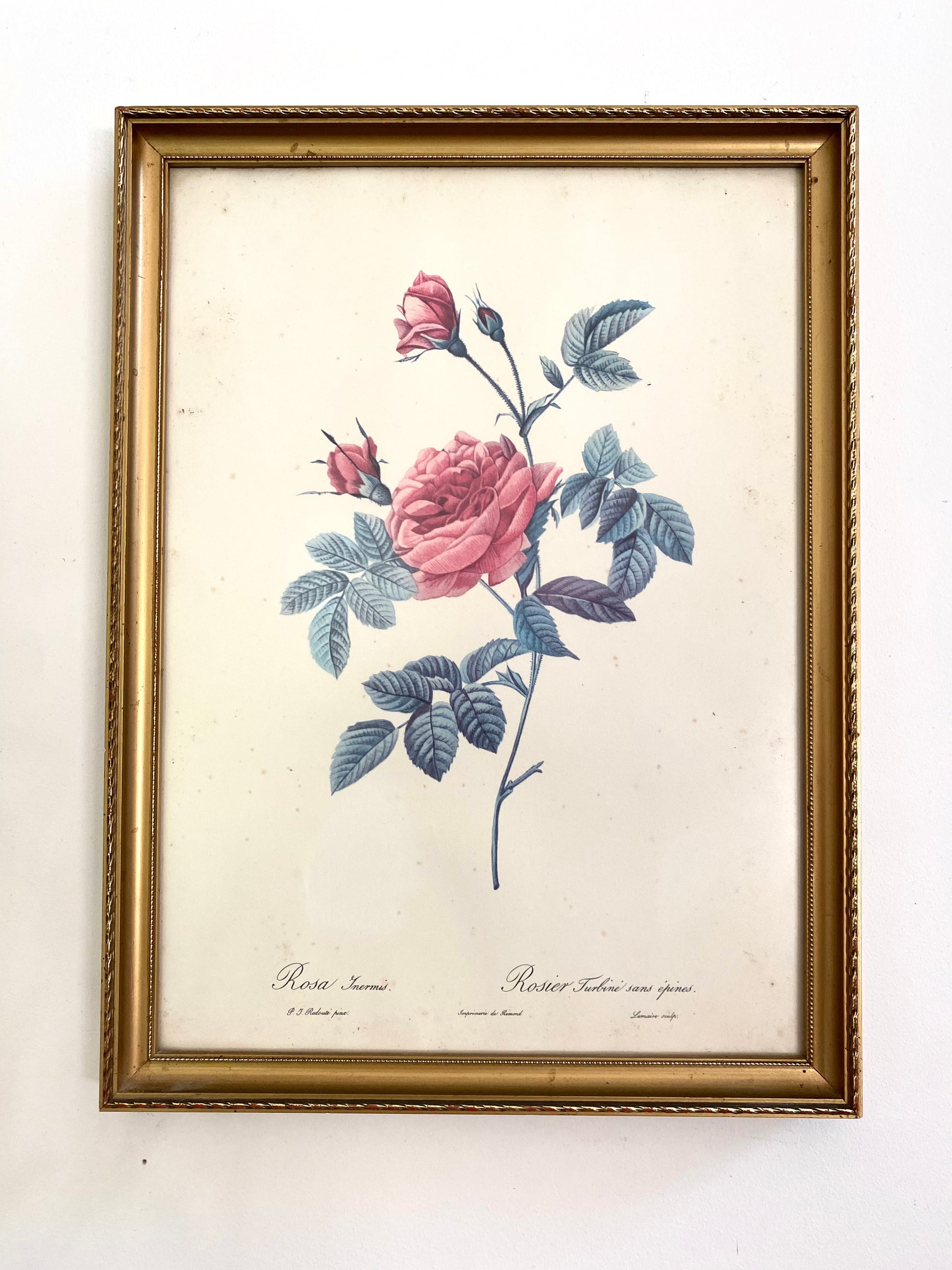 Ravissante illustration botanique ancienne dans un joli cadre doré au bois délicatement travaillé