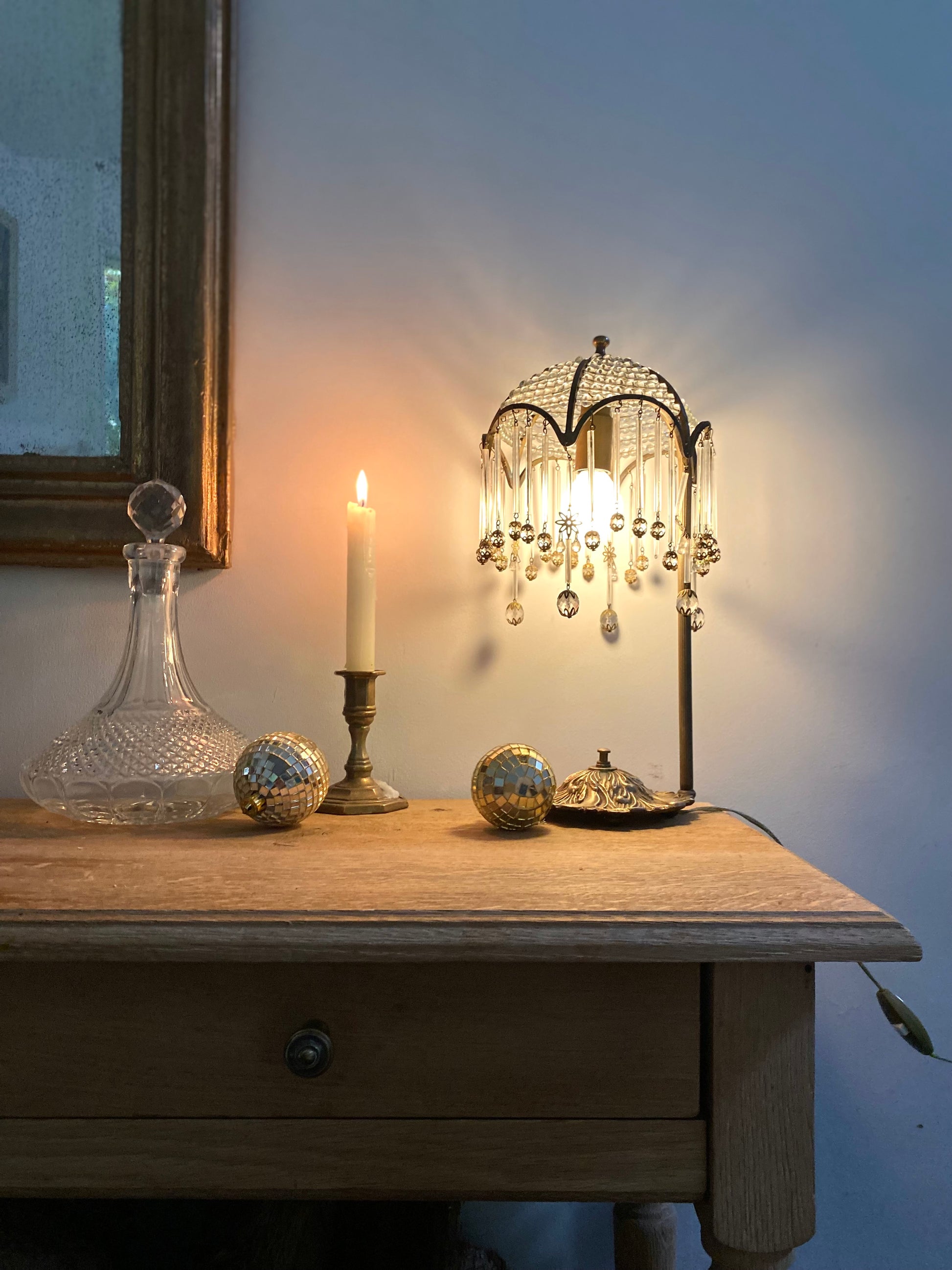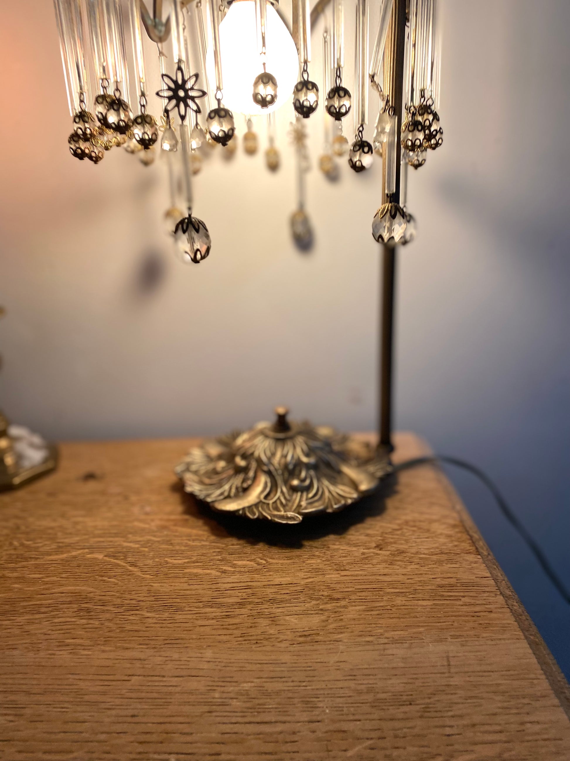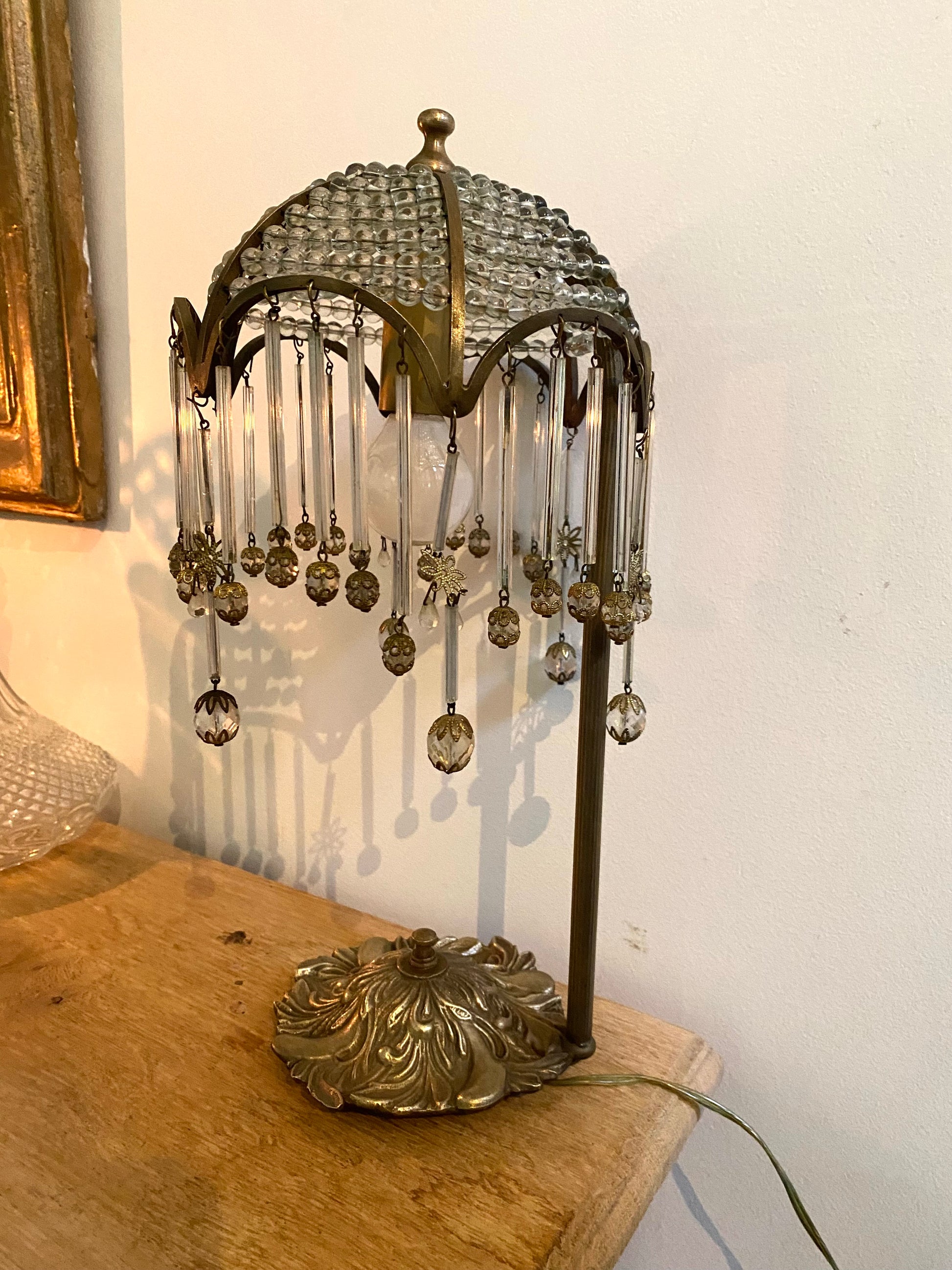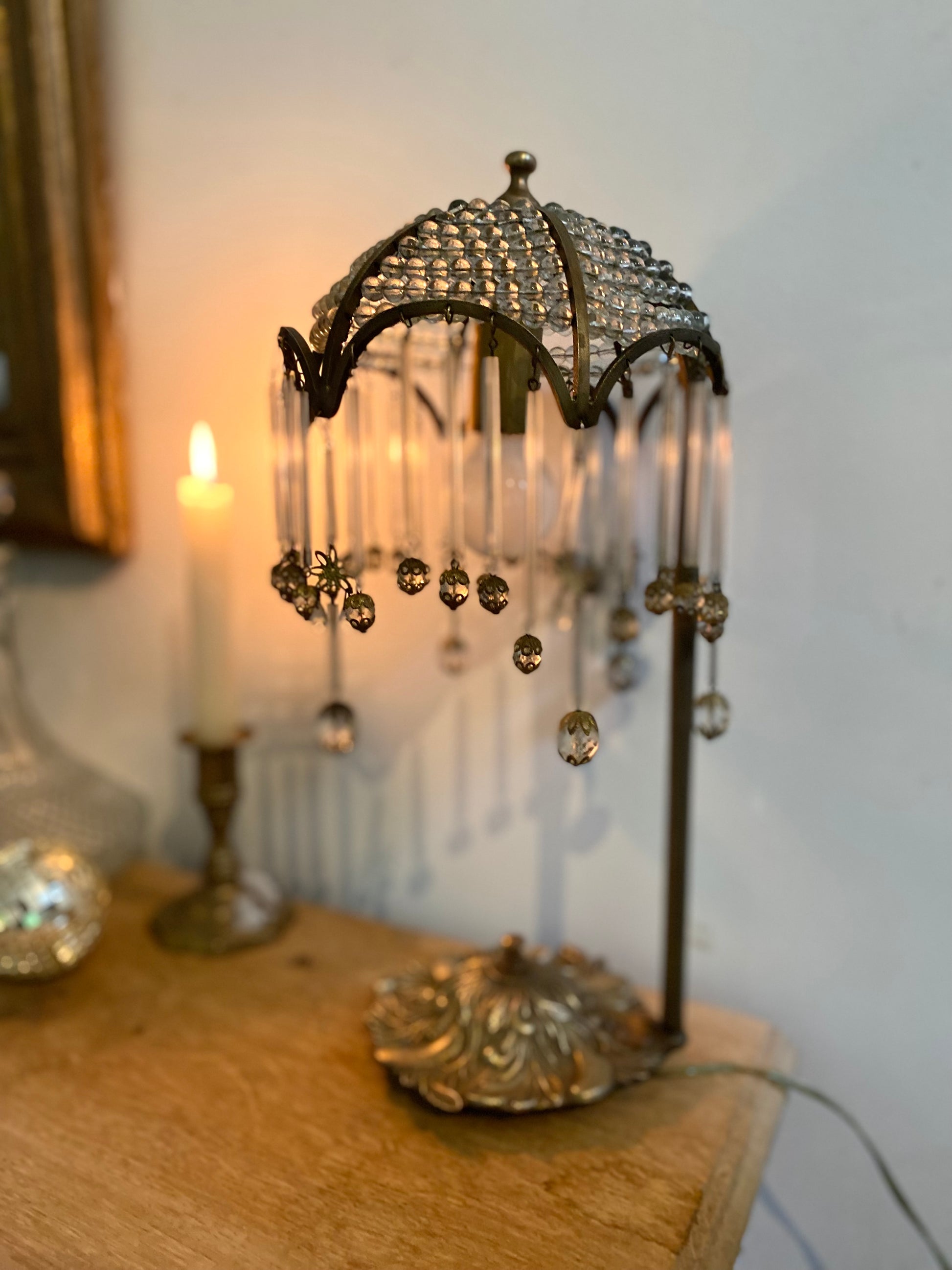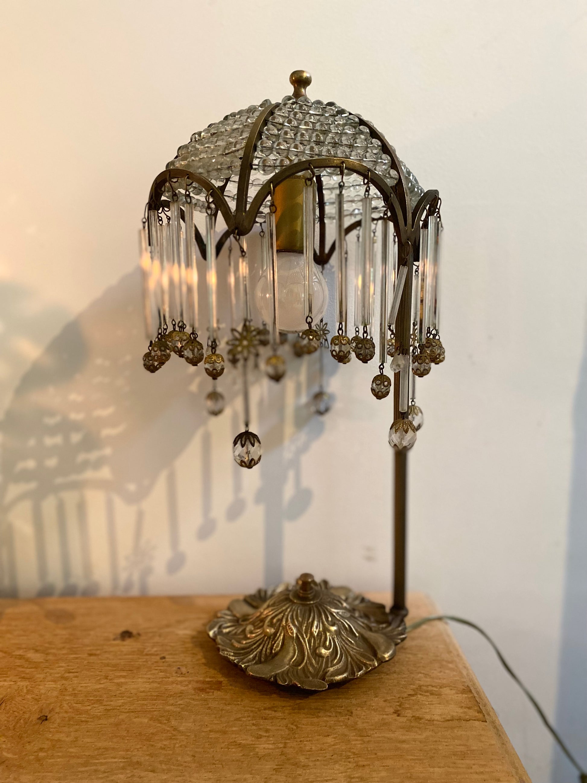 Le look général et la présence de pampilles et de perles de cristal sont typiques des lampes de boudoir (ou lampes "Mushroom" ou "Waterfall") très prisées dans les années 1920 et 1930, souvent appelées style Art Déco ou Charleston.