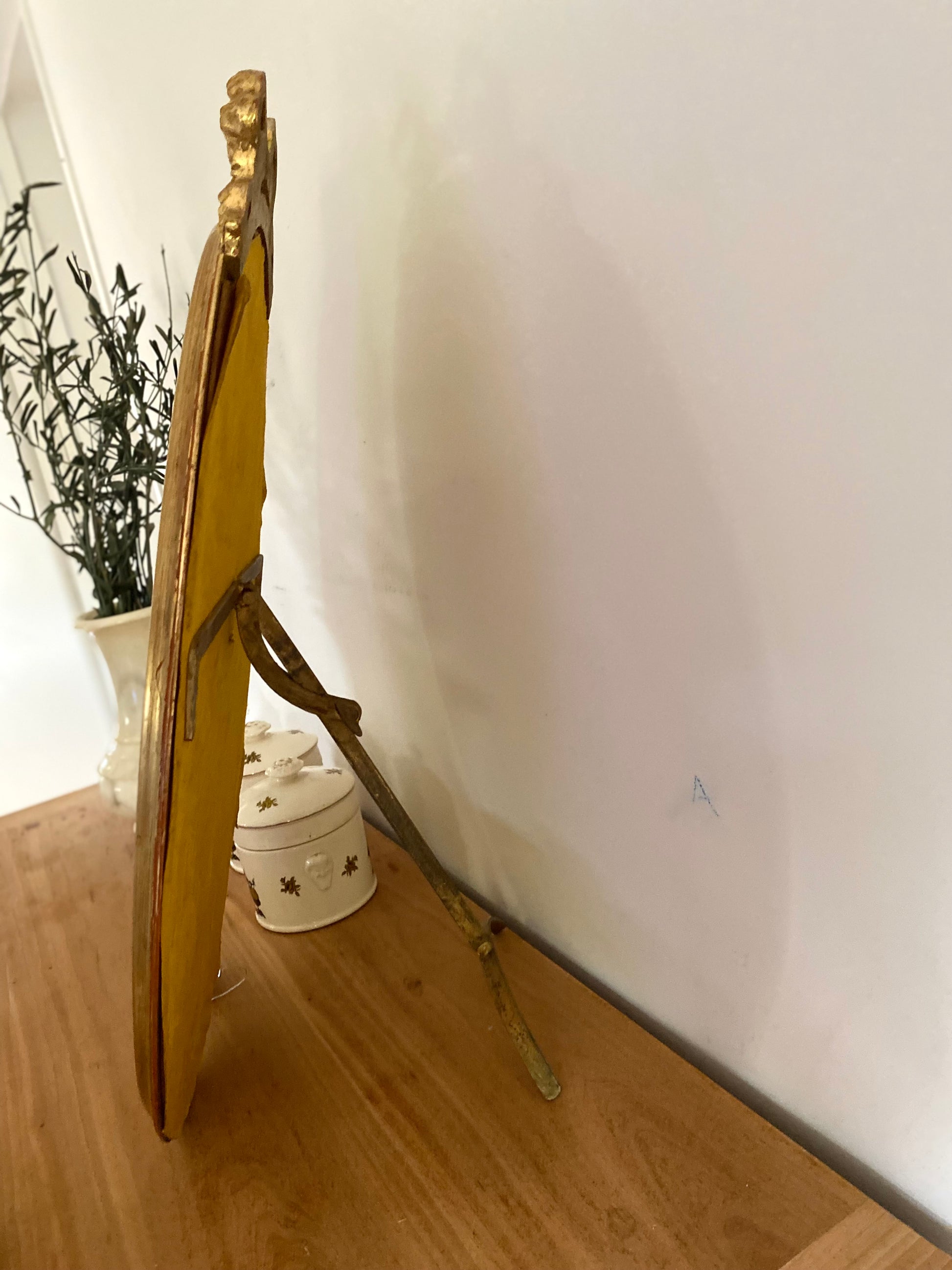 Ravissant miroir de forme ovale sur pied ( également appelé miroir de coiffeuse ou de courtoisie ) de style style Louis XVI datant du XIXe siècle.