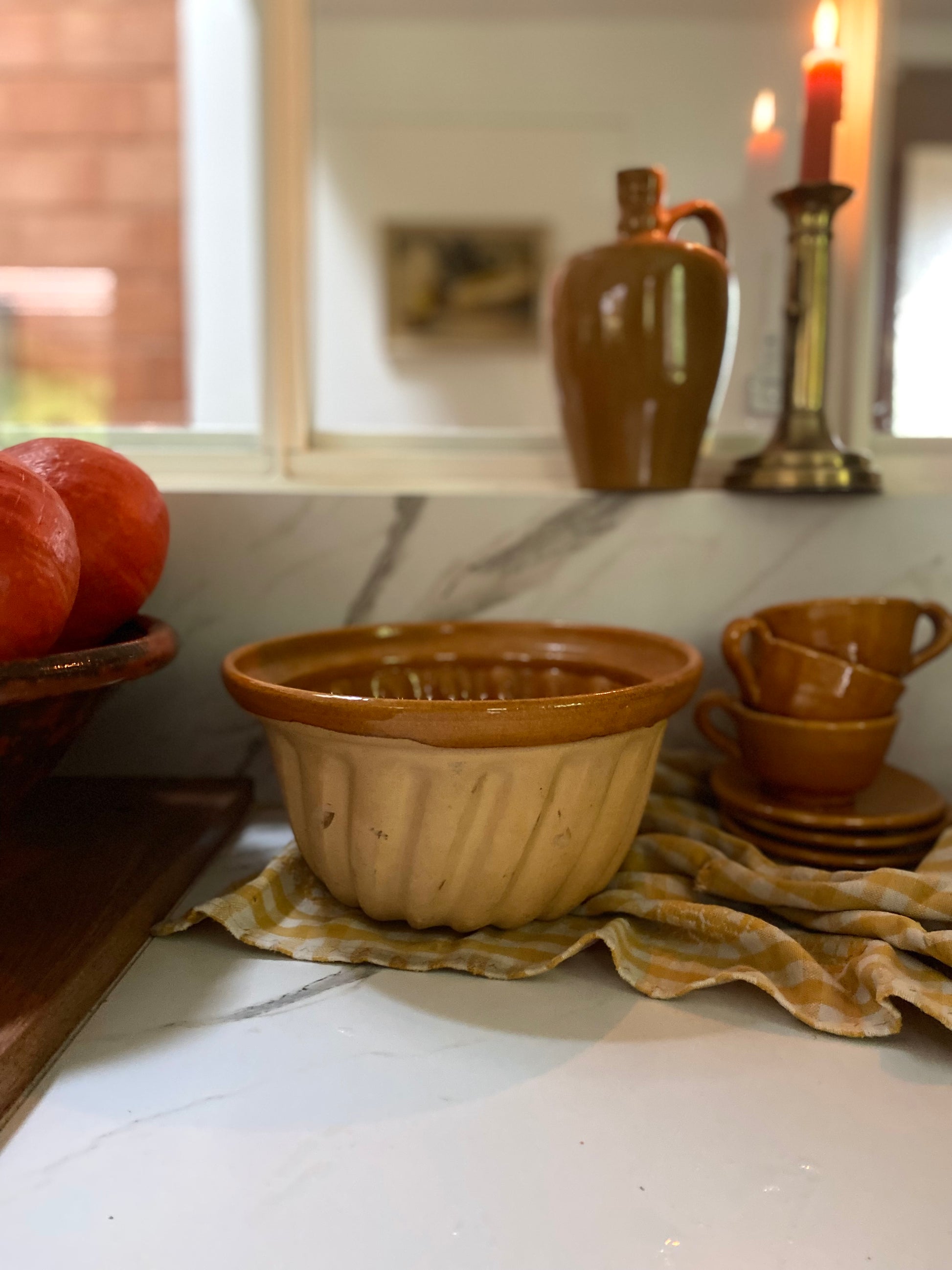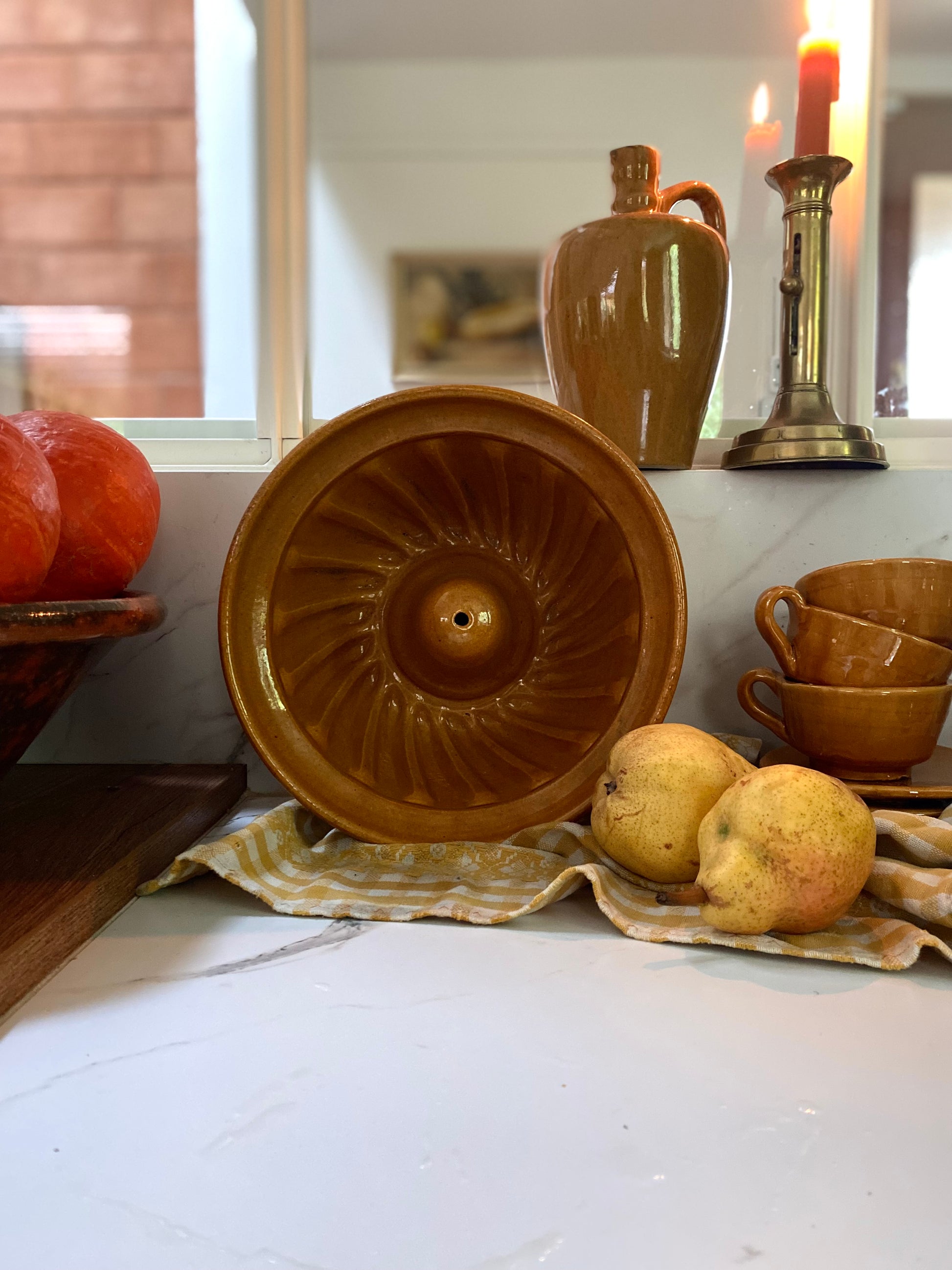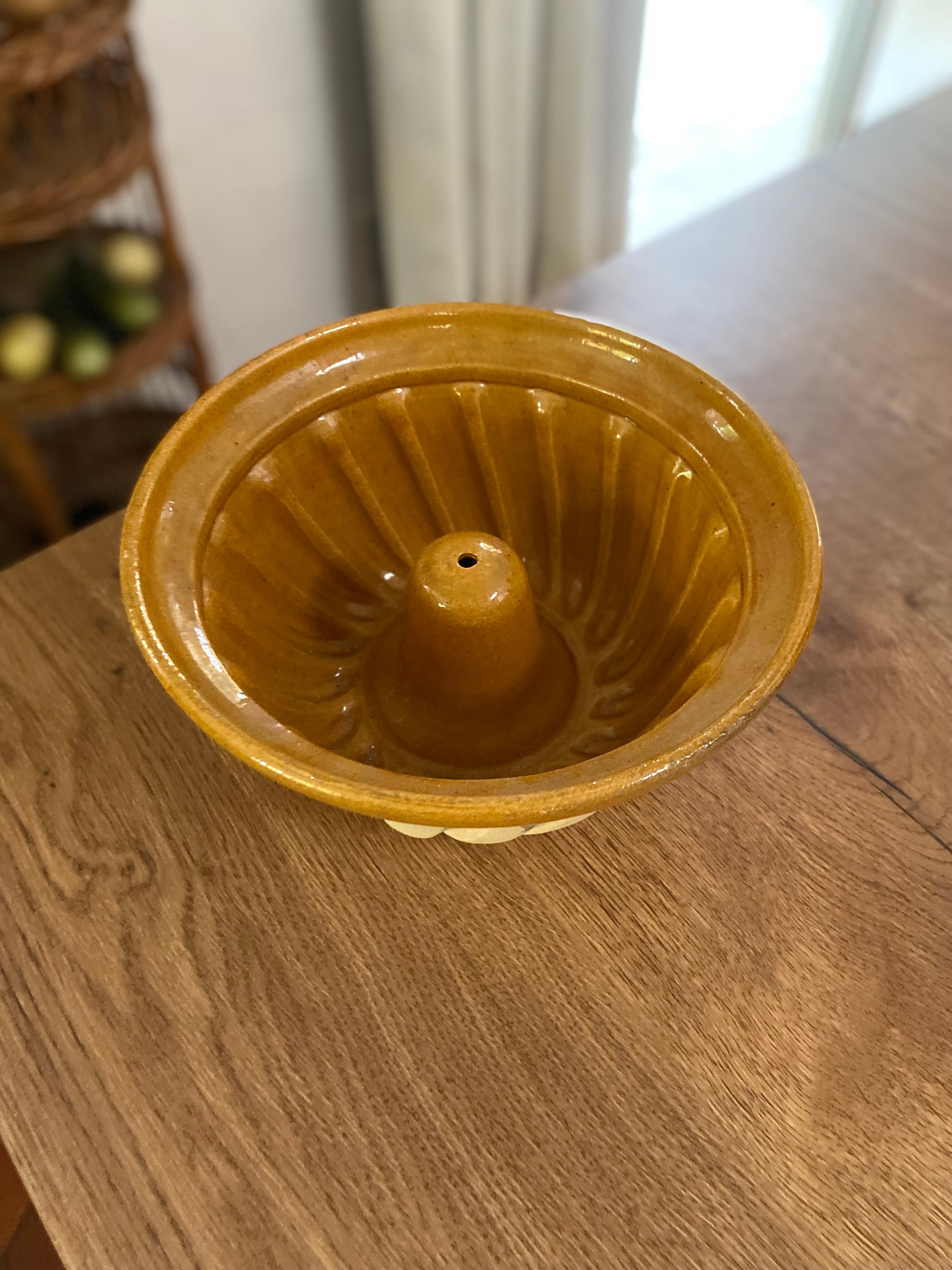 Ravissant moule de cuisson traditionnel en céramique ou en faïence émaillée datant des années 60/70.