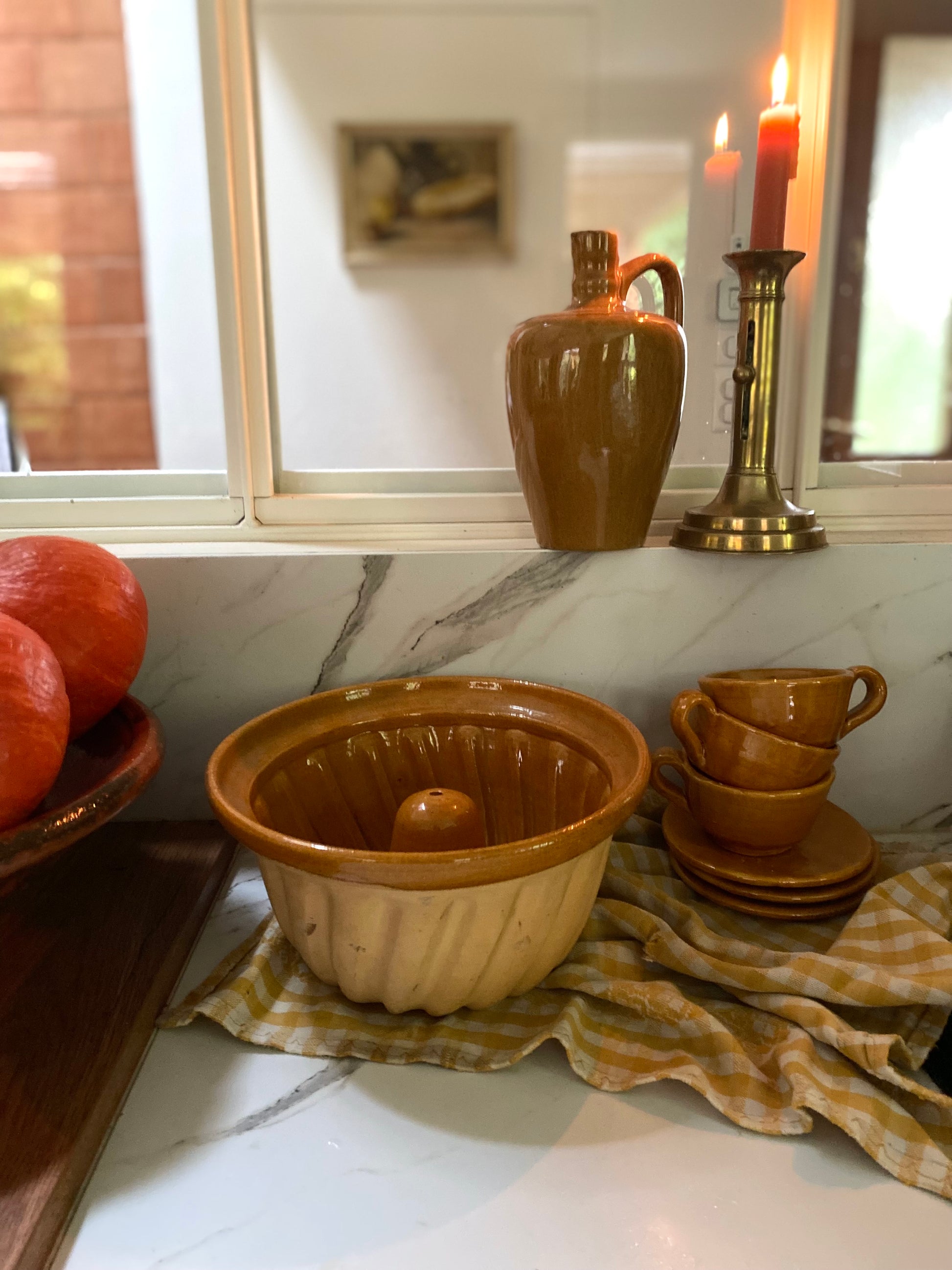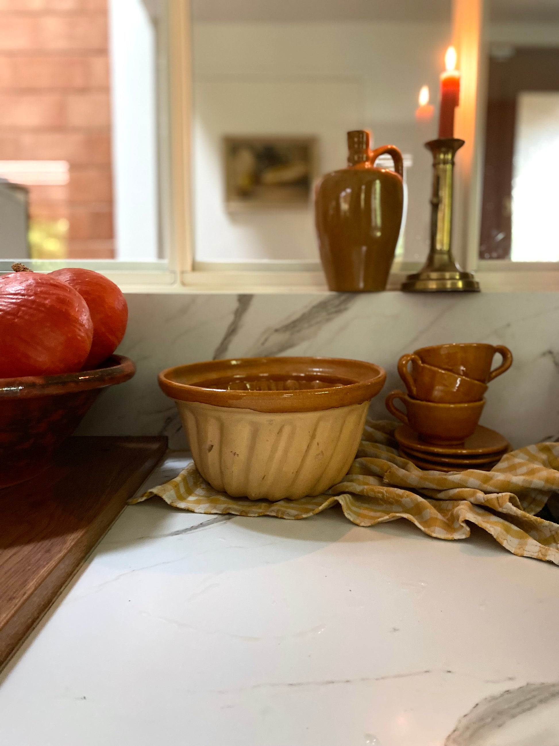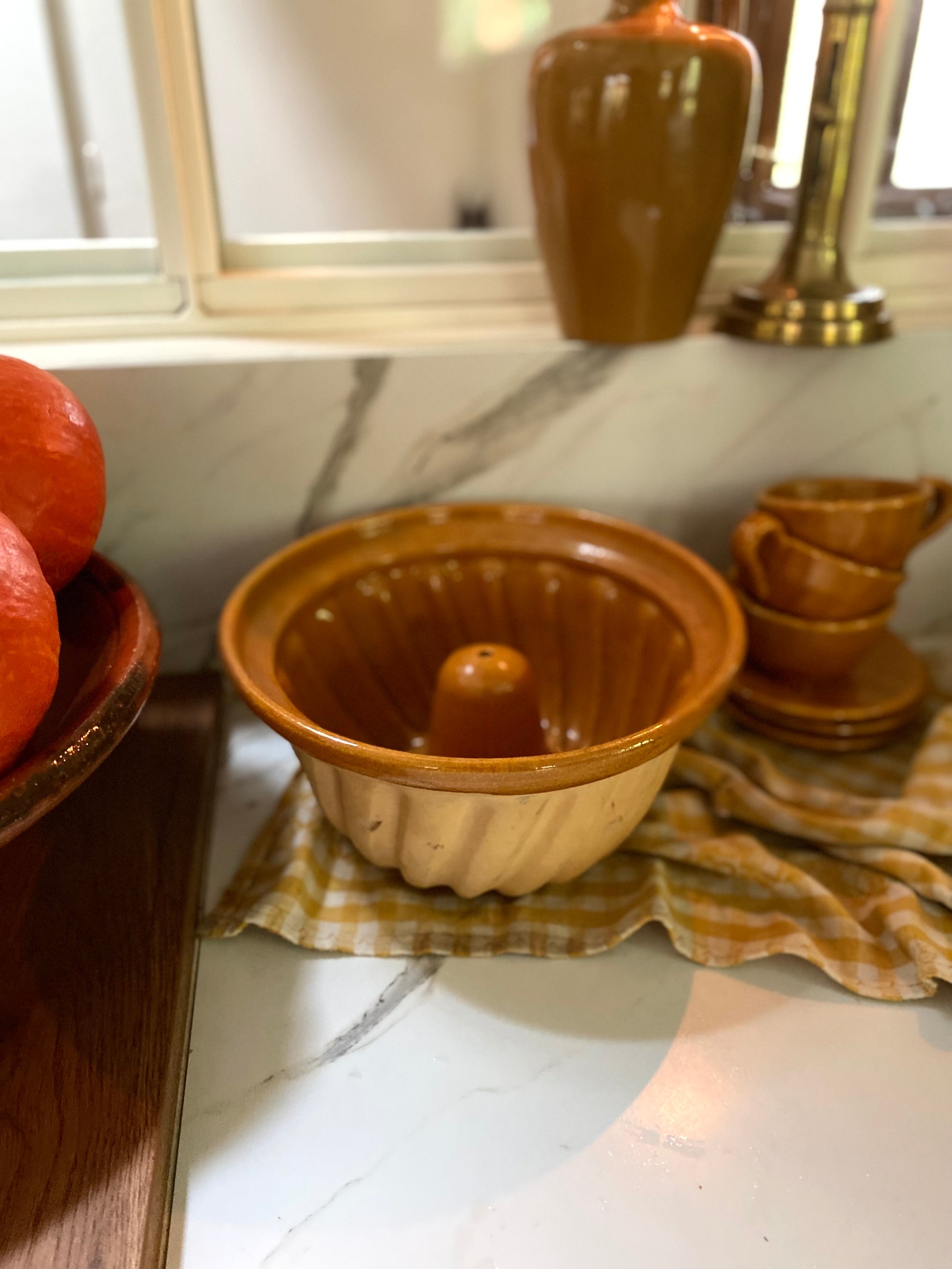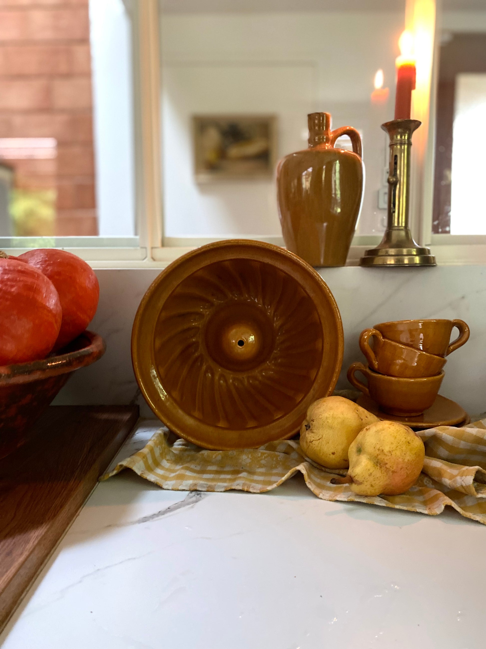 Ravissant moule de cuisson traditionnel en céramique ou en faïence émaillée datant des années 60/70.