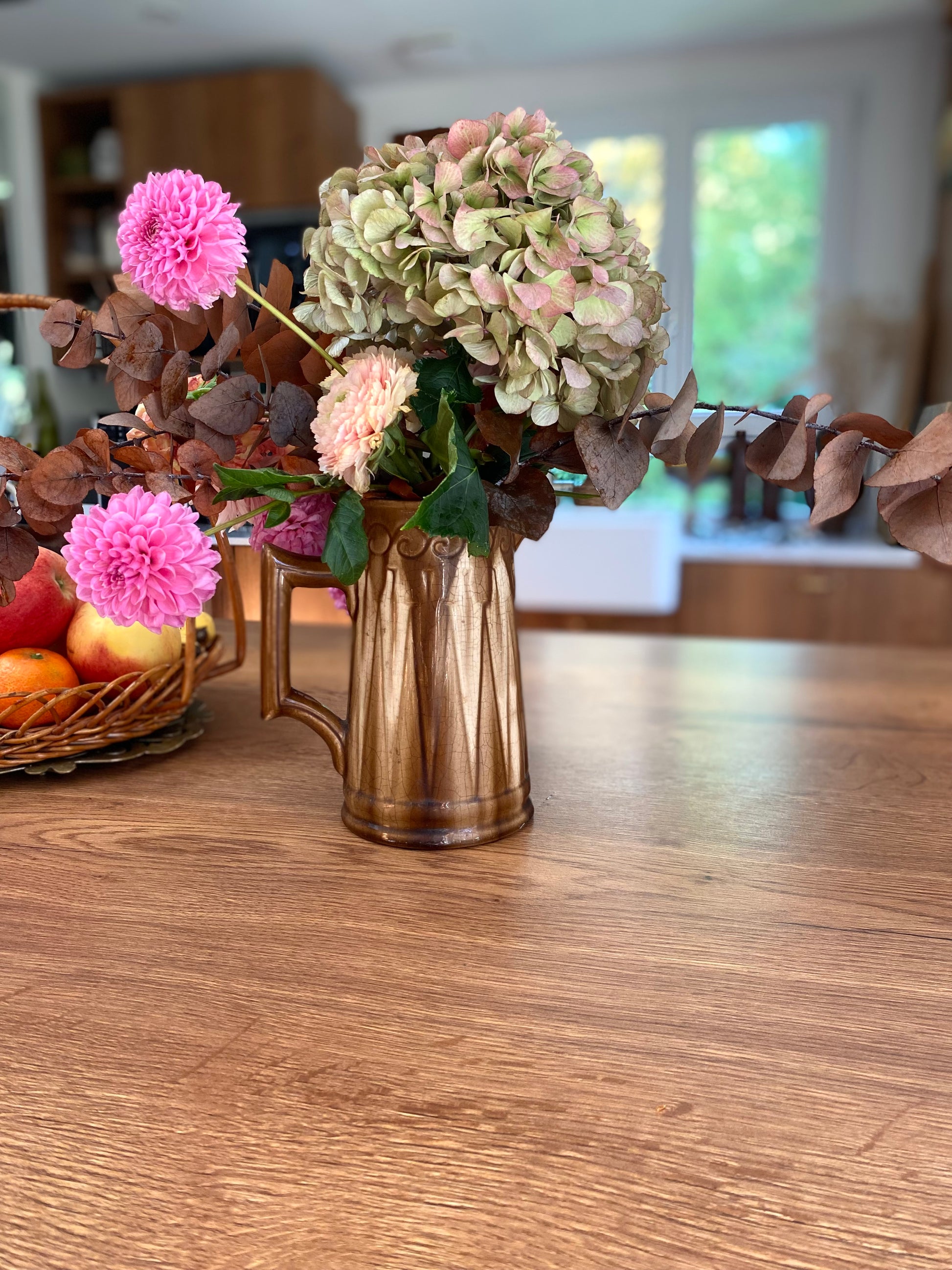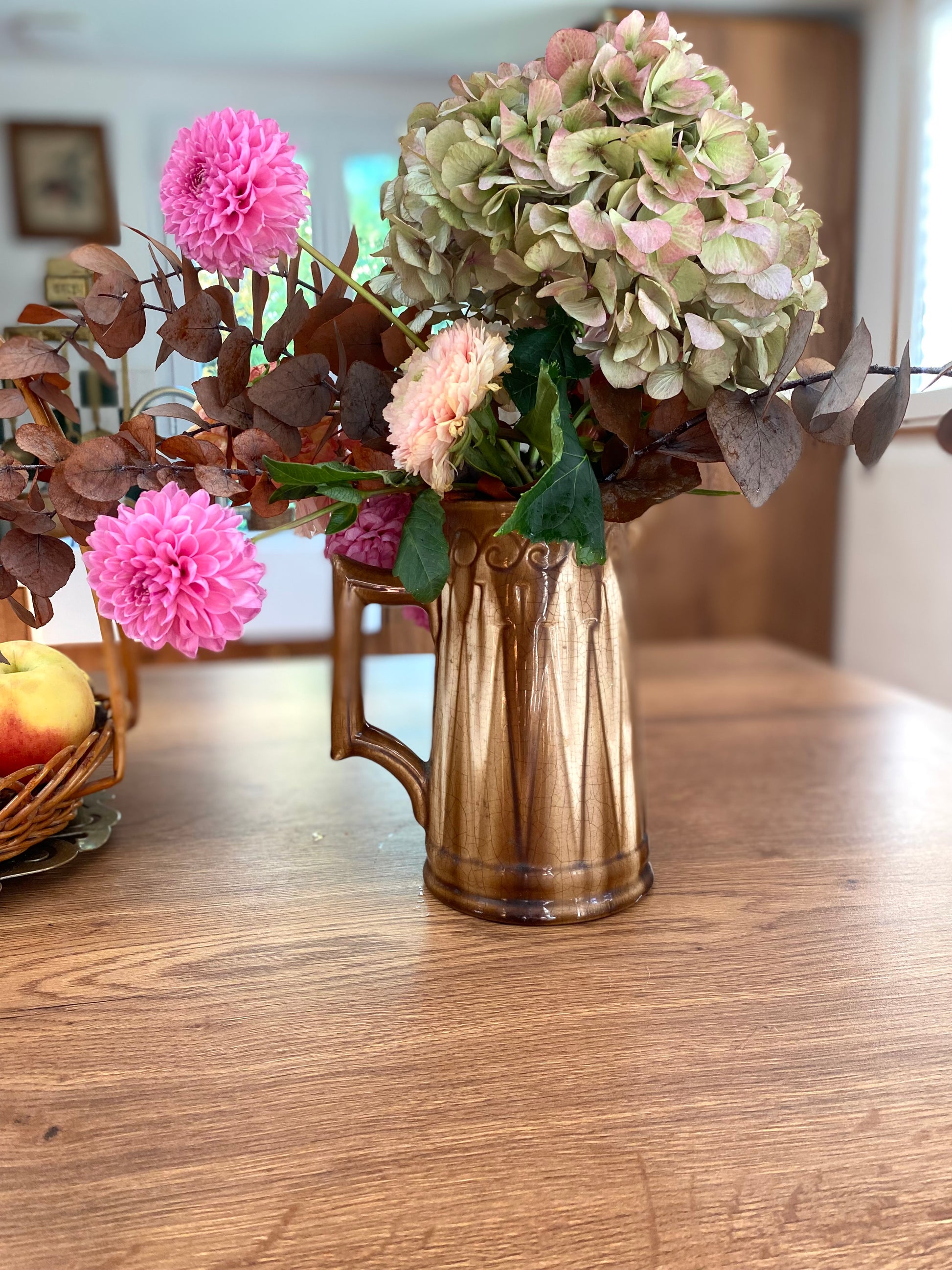 Broc ancien en céramique vernissée dans un joli dégradé chocolat