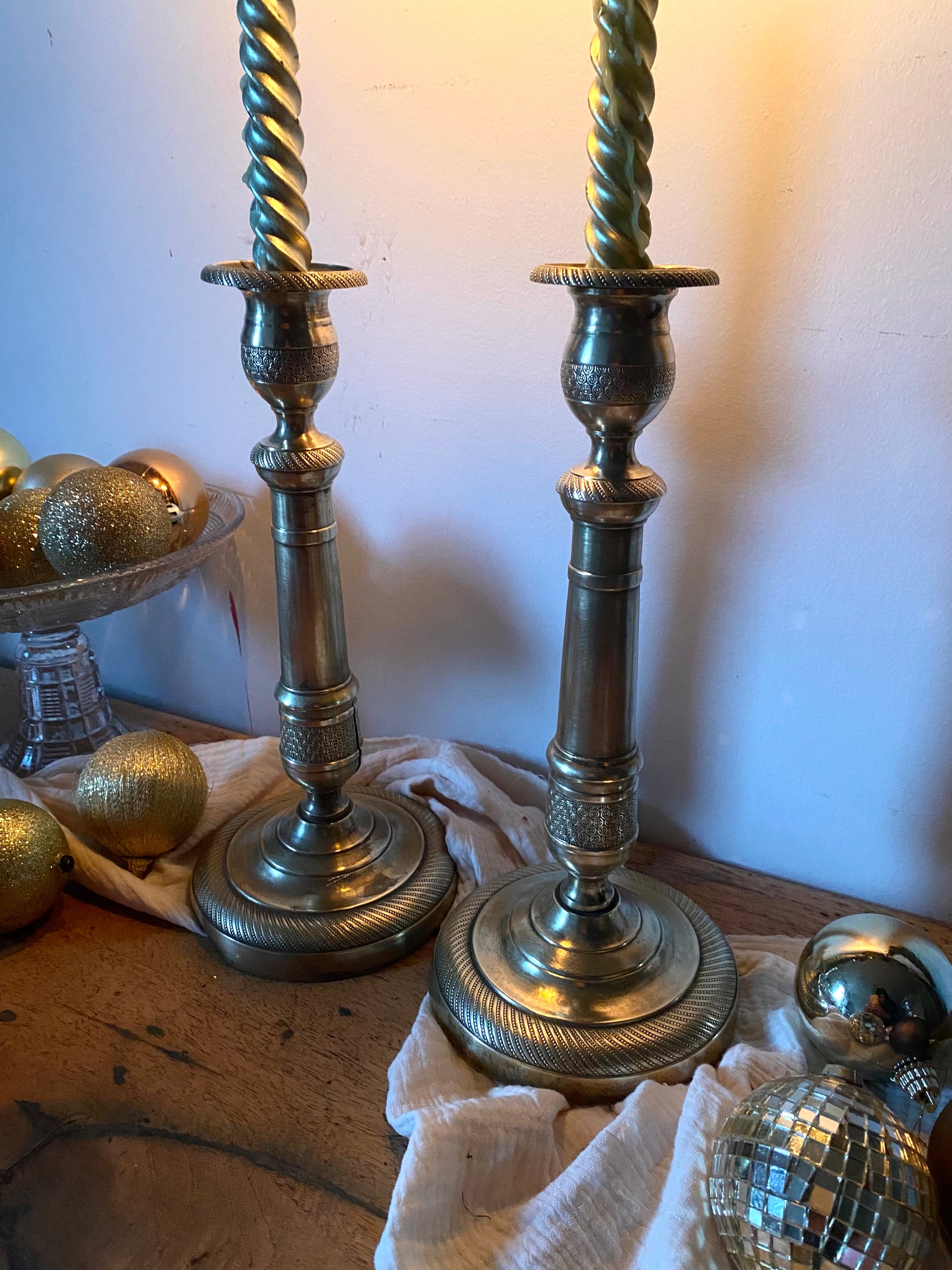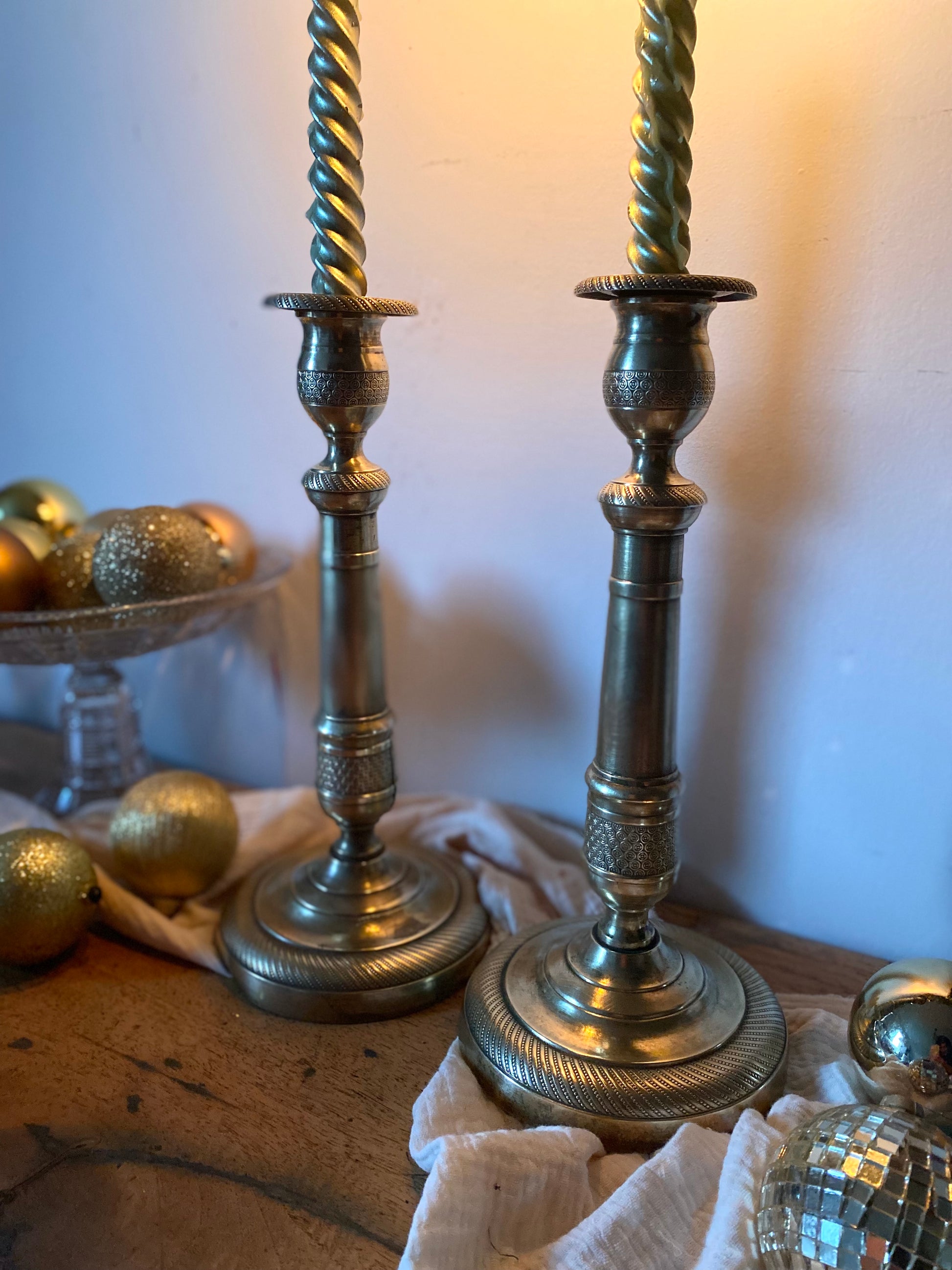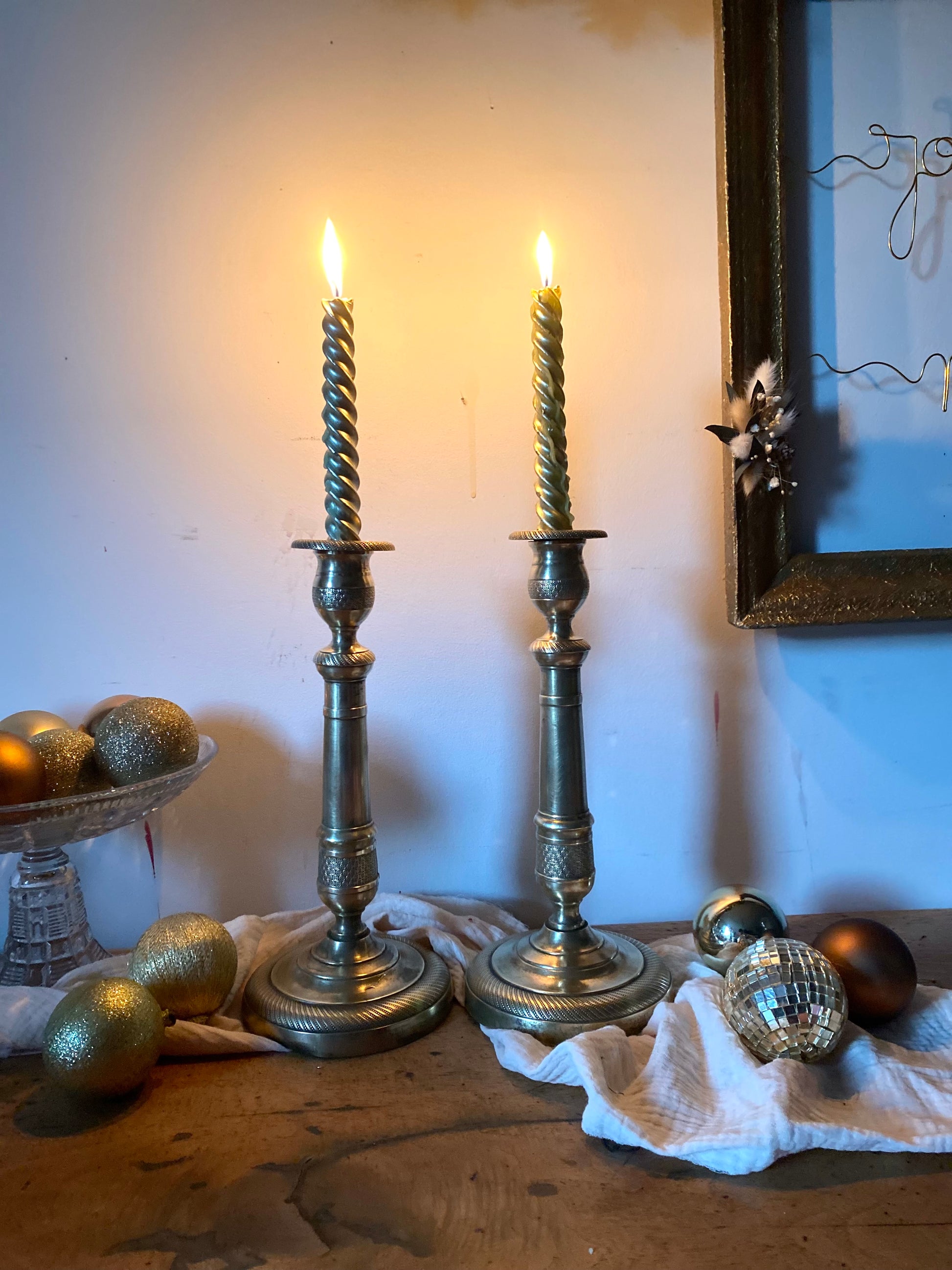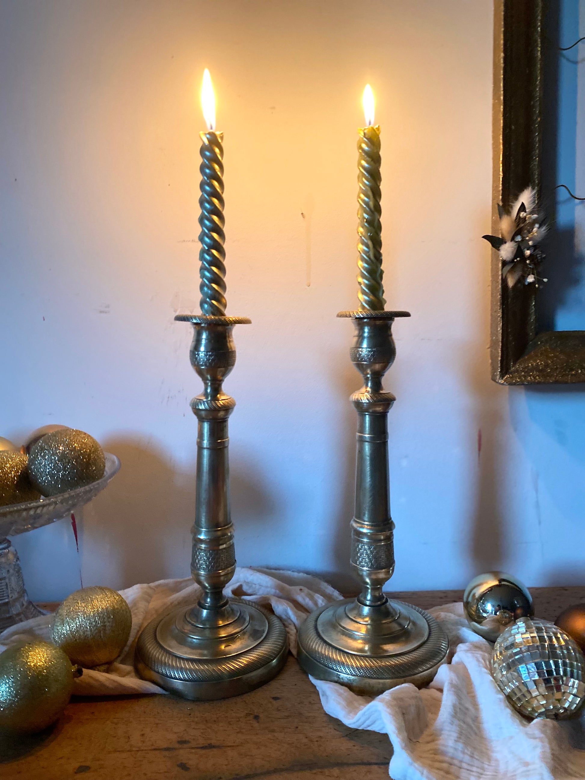 Sublime paire de bougeoirs en laiton de la fin du XIXe siècle.
