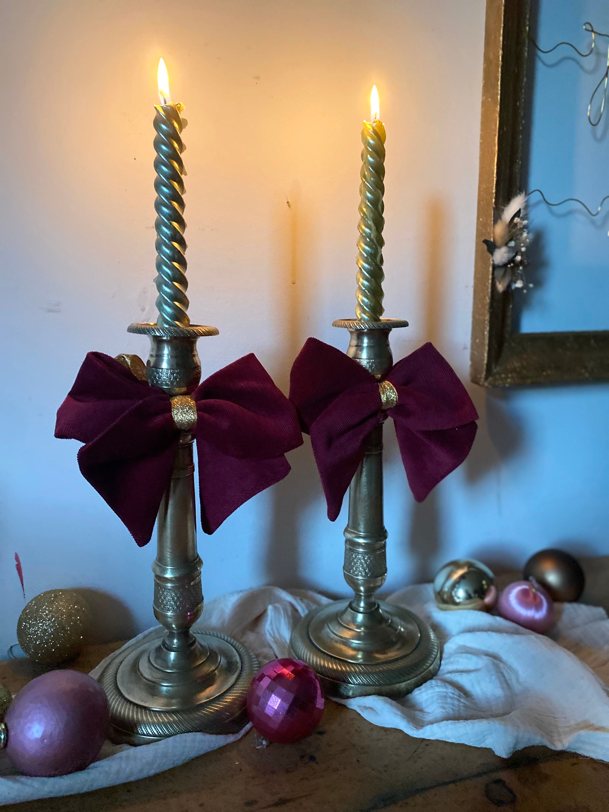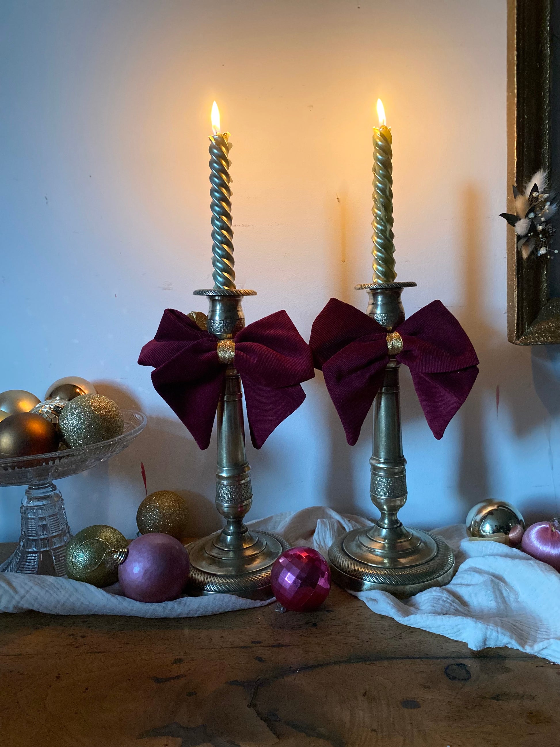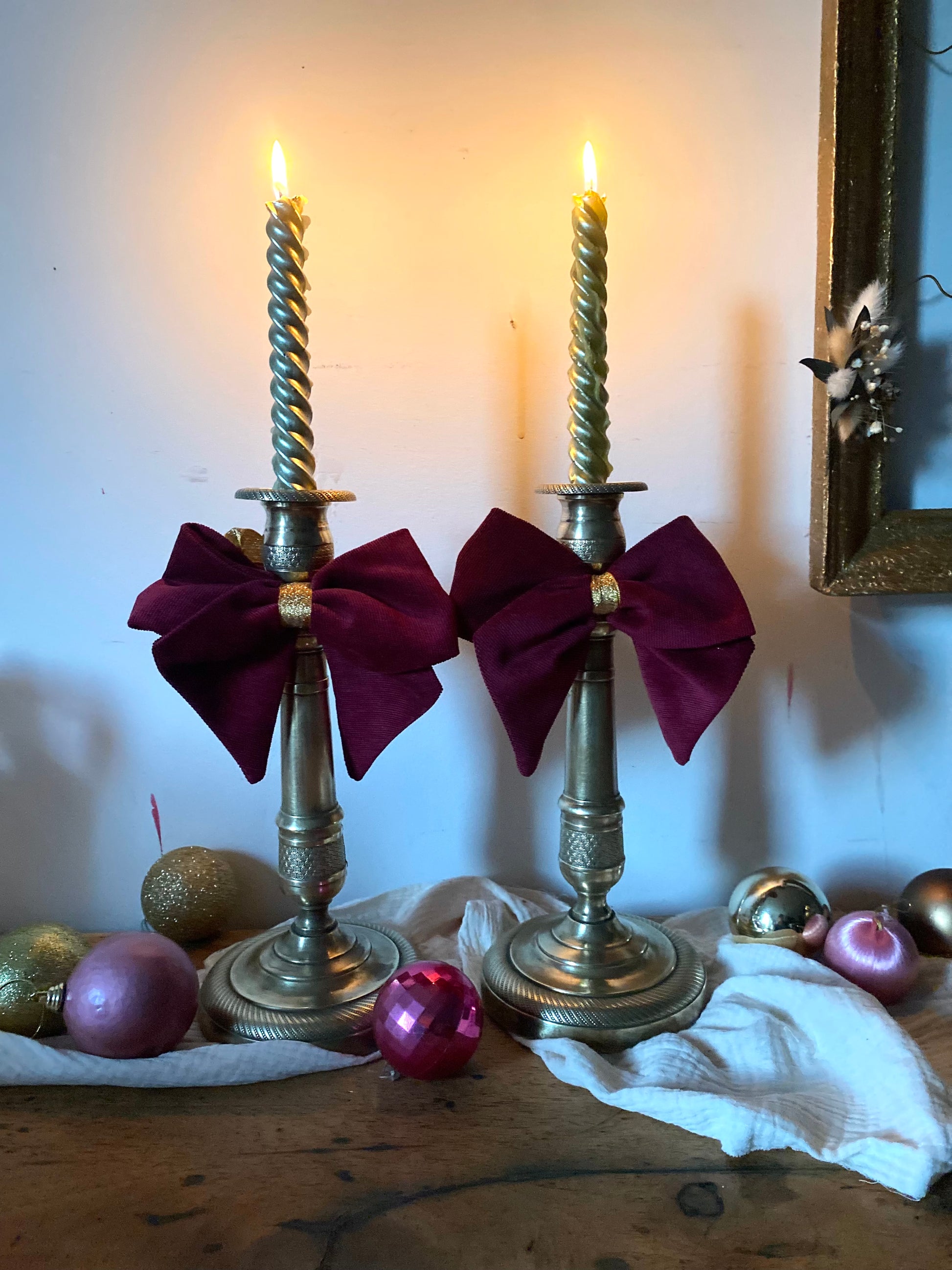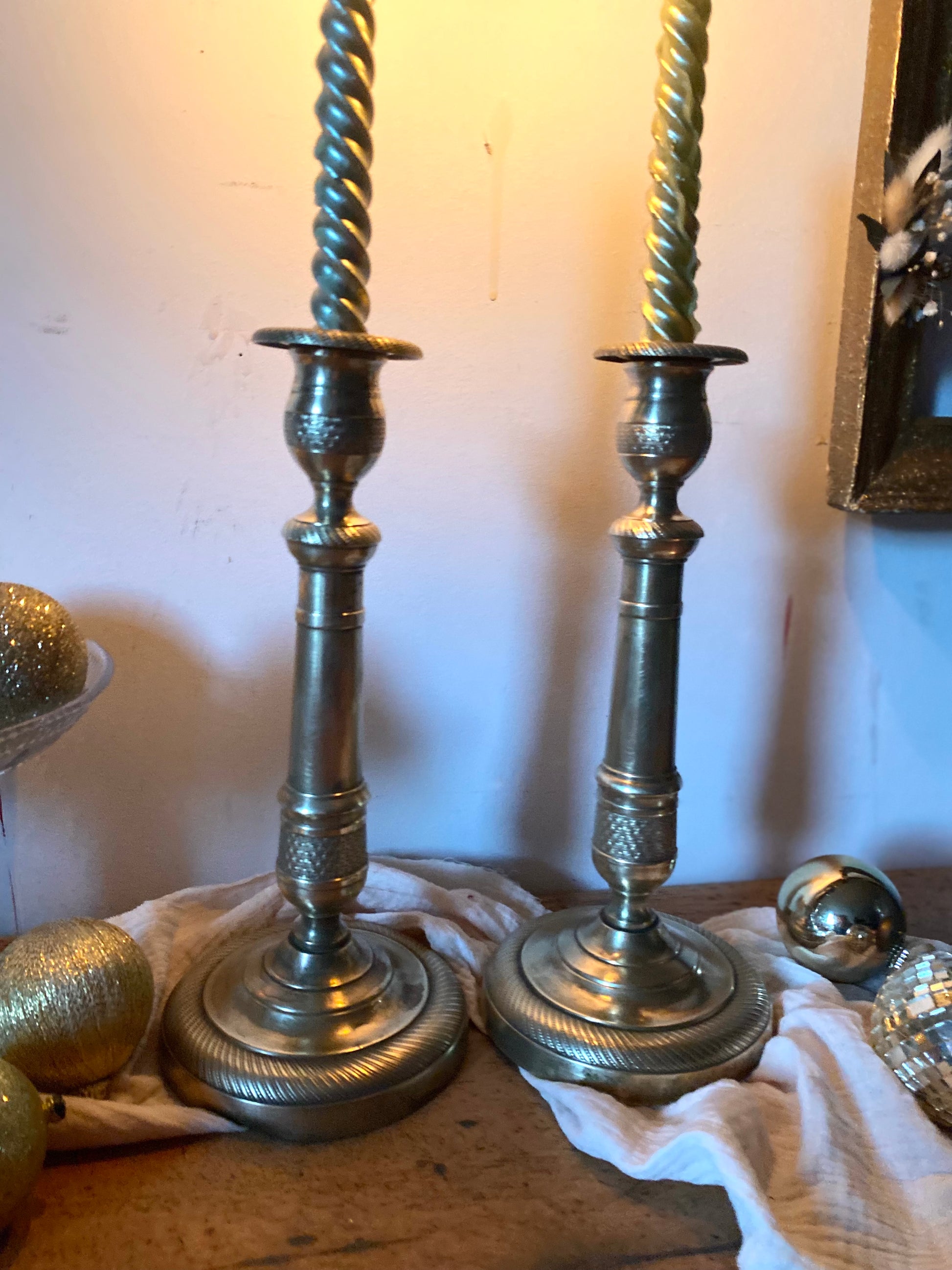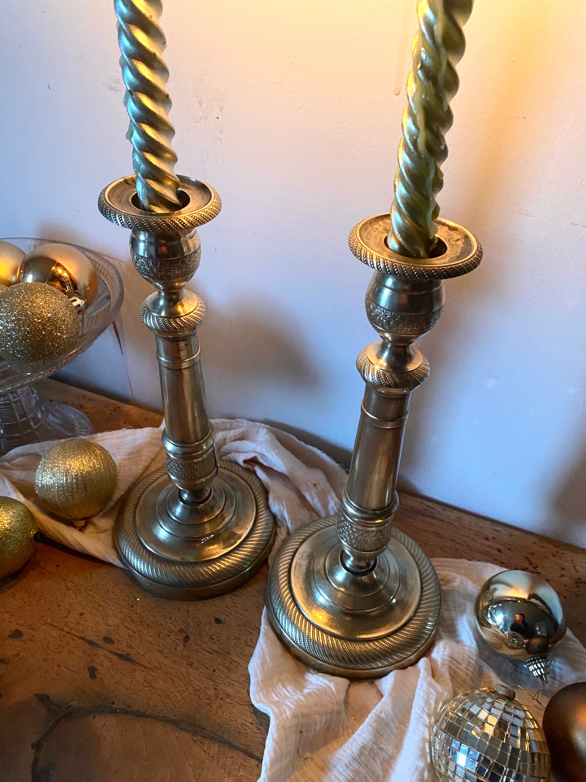 Sublime paire de bougeoirs en laiton de la fin du XIXe siècle.