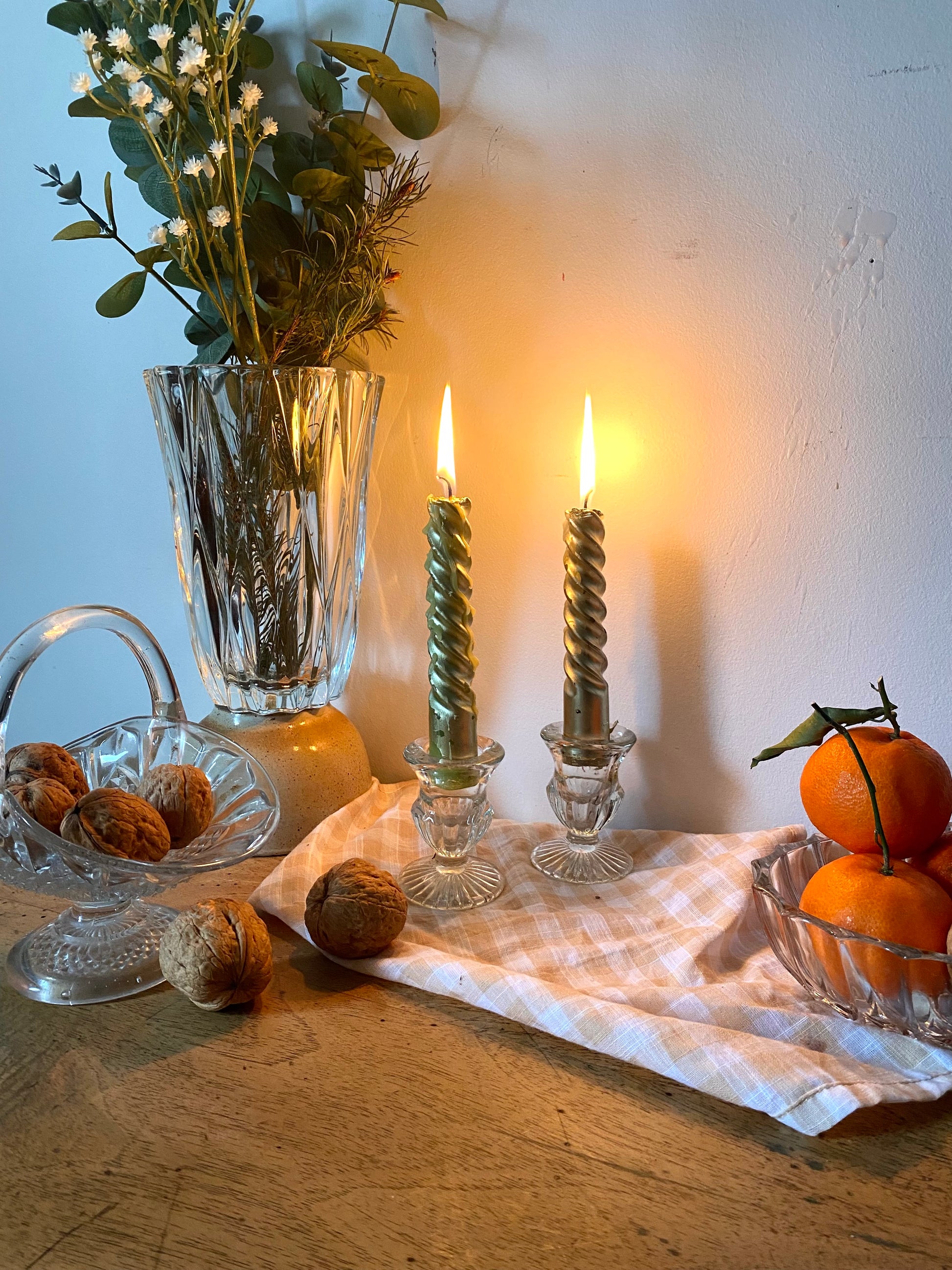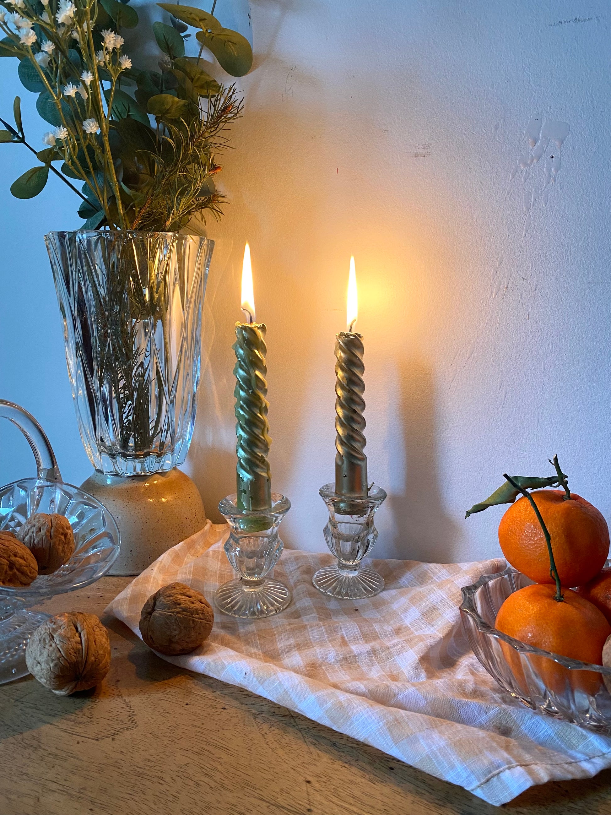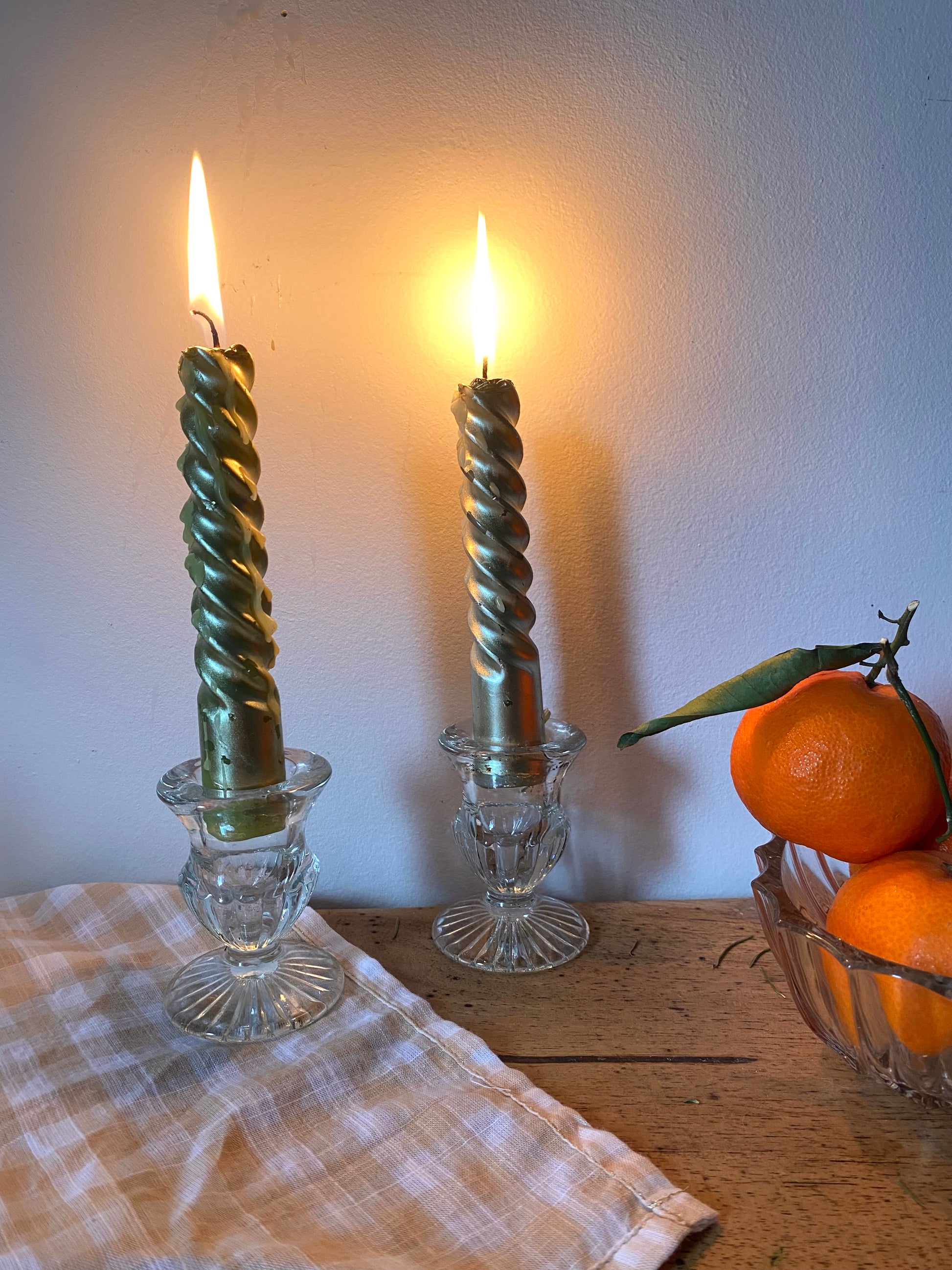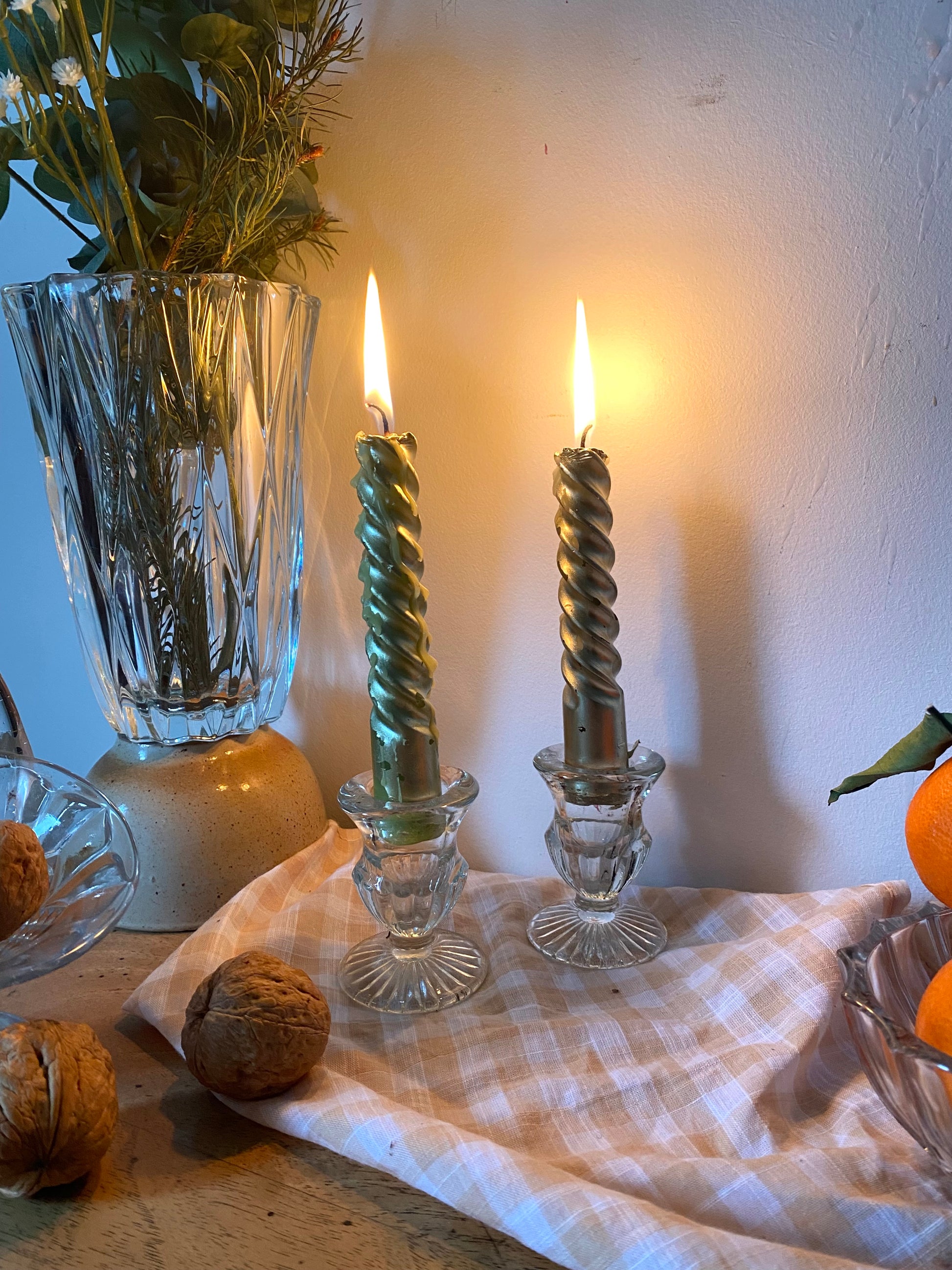 Paire de bougeoirs en verre