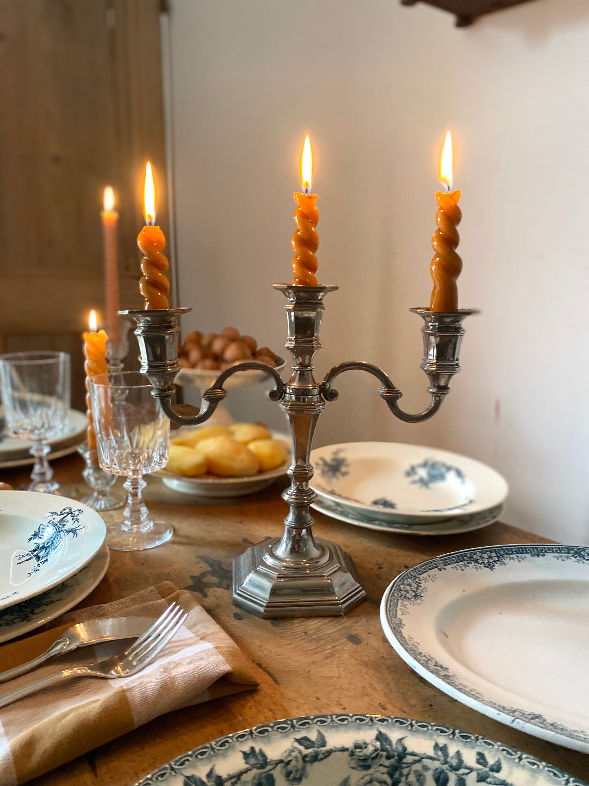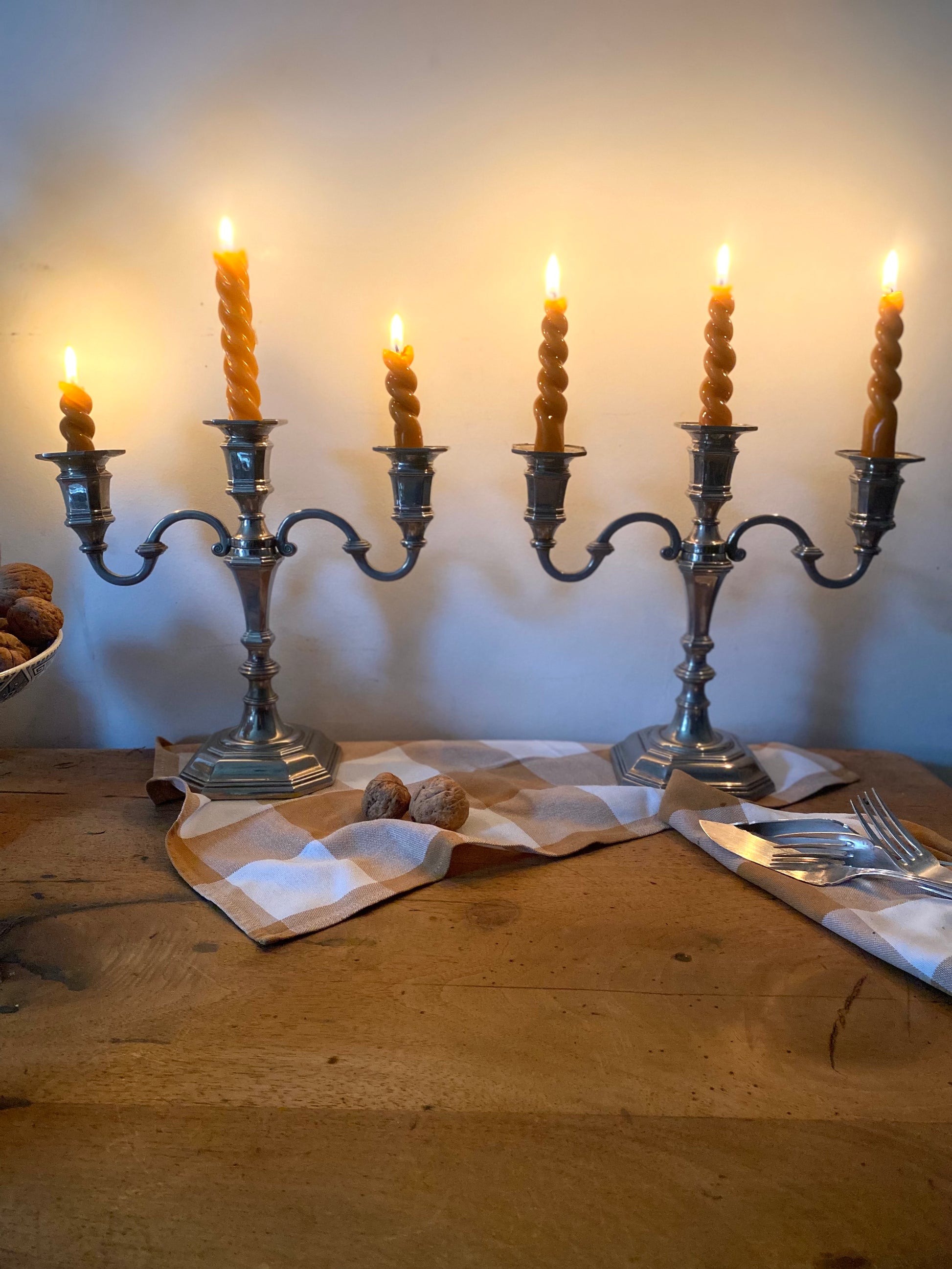 Il sont de style Louis XV (ou "Rocaille"). On le reconnaît à la forme mouvementée des branches en "S" (volutes) et à la base octogonale à pans coupés.