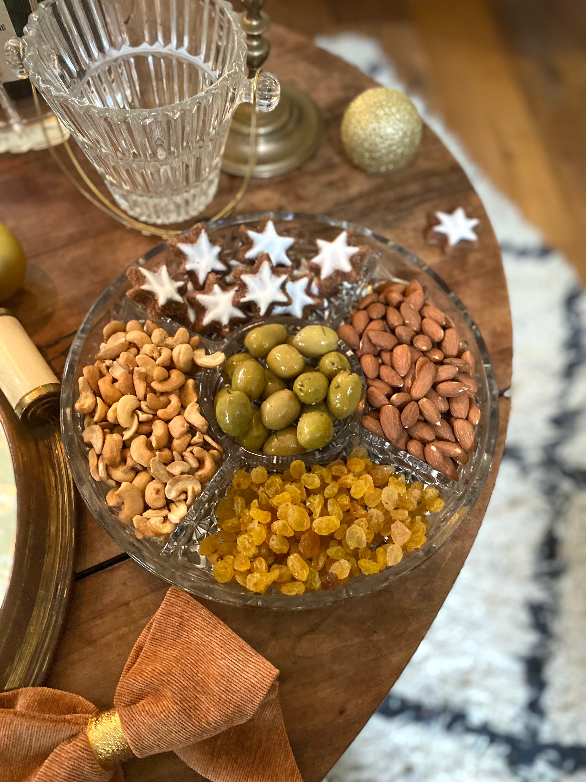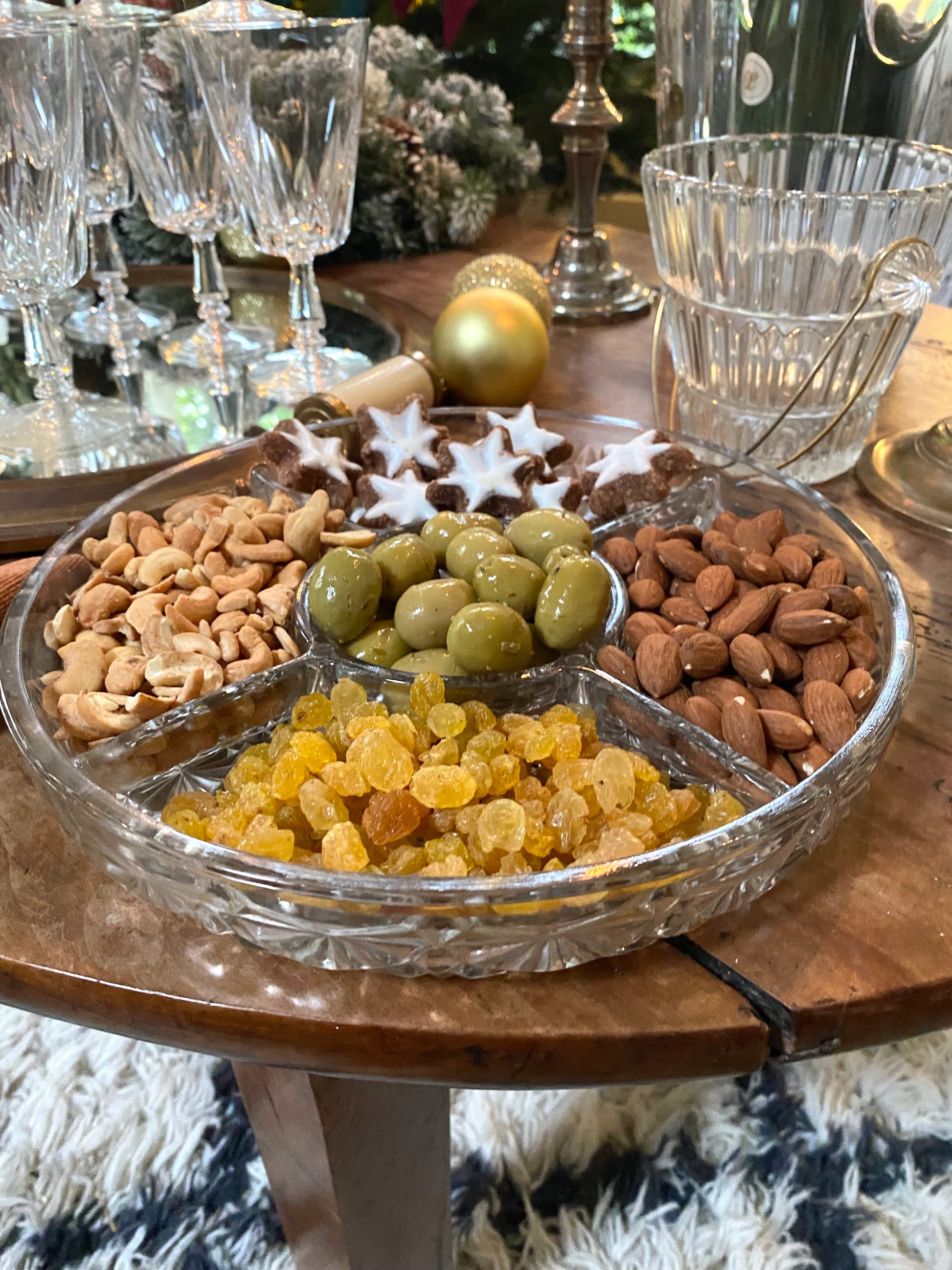 Plat à compartiment en verre moulé ancien, une pièce clef pour apporter à n’importe quel apéritif le fameux effet Waouuuuuuh ;)