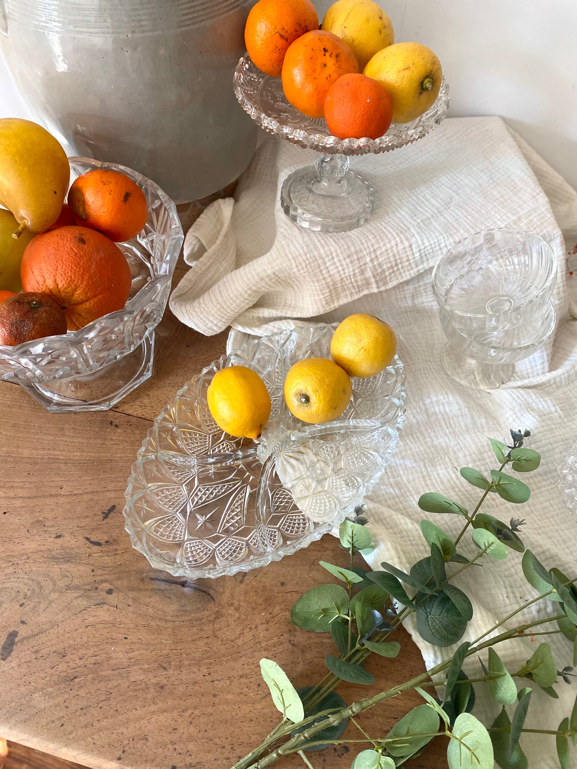 Ce type de pièce a connu un immense succès entre les années 1930 (période Art Déco) et les années 1960. Au vu des motifs géométriques et de la brillance du verre, il s'agit d'une production française du milieu du XXe siècle Sa structure divisée en trois sections est conçue pour servir simultanément différents types d'amuse-bouches sans qu'ils ne se mélangent en apportant une touche d'élégance "bistro chic" à une table.