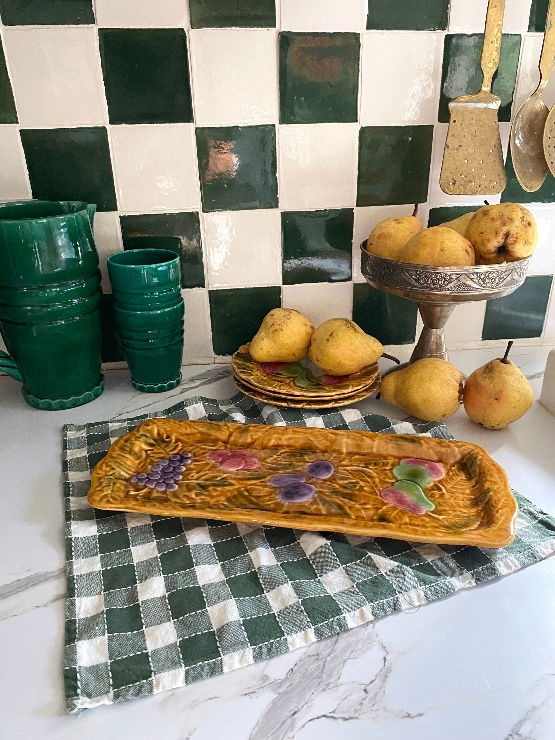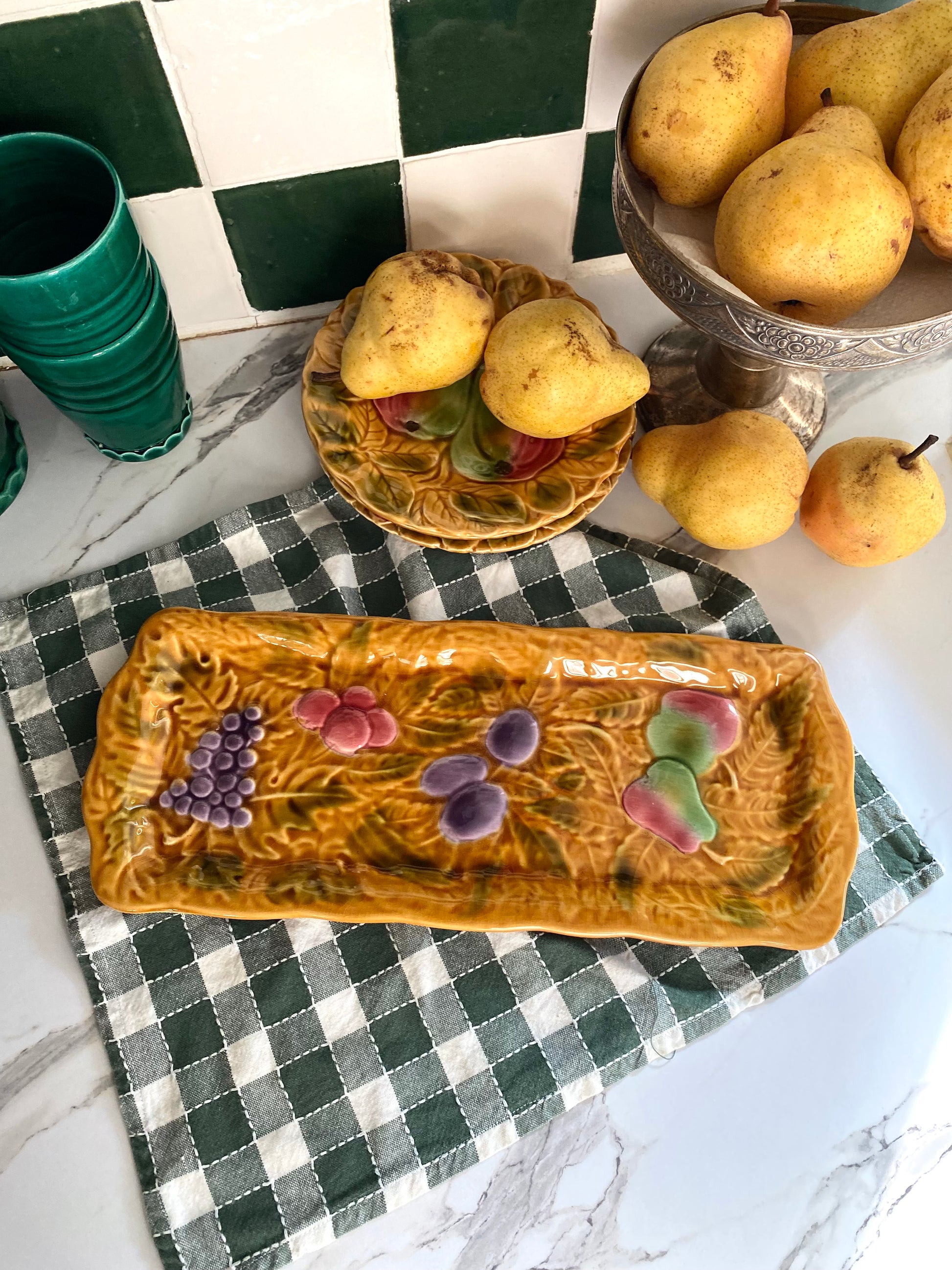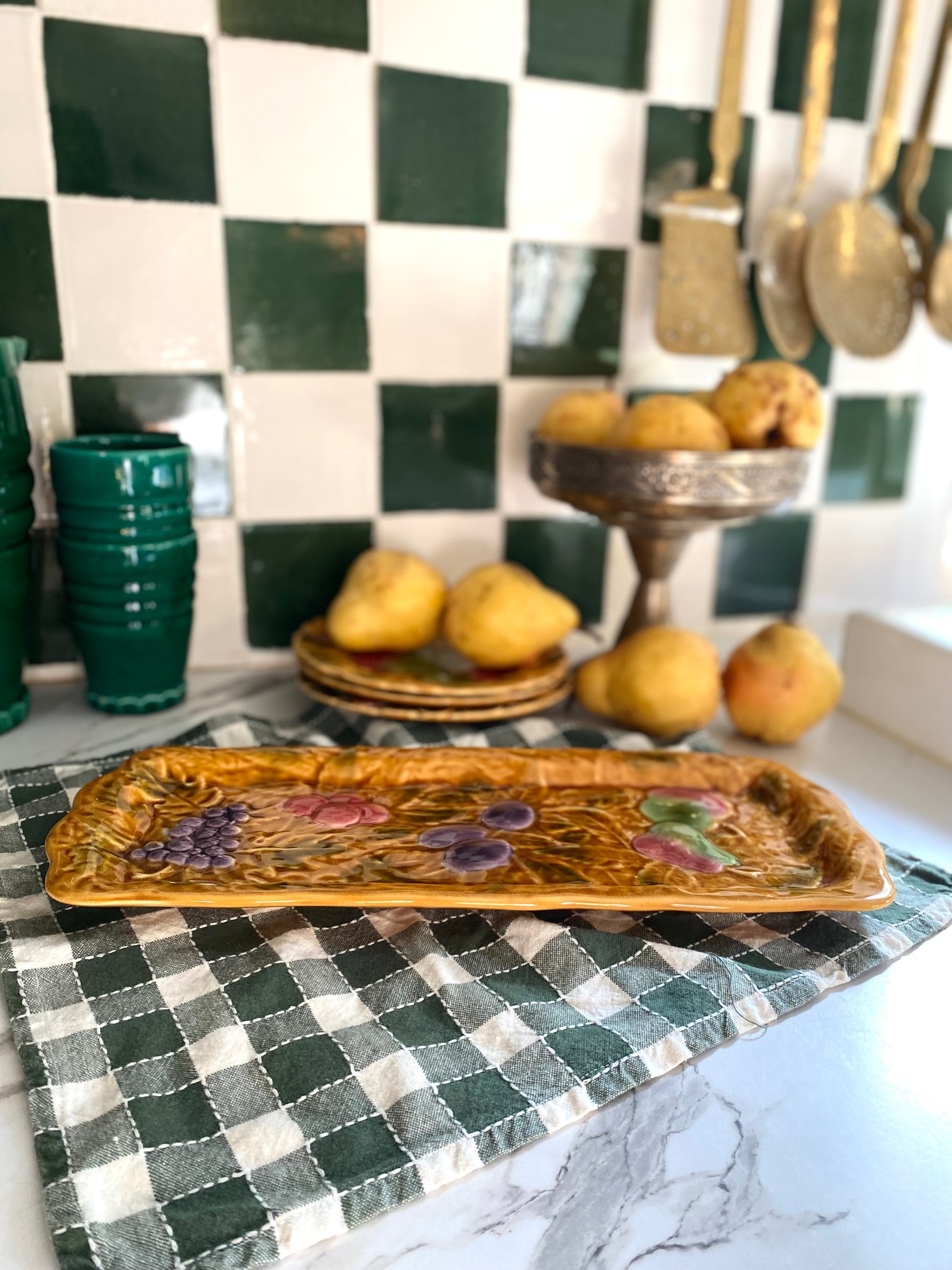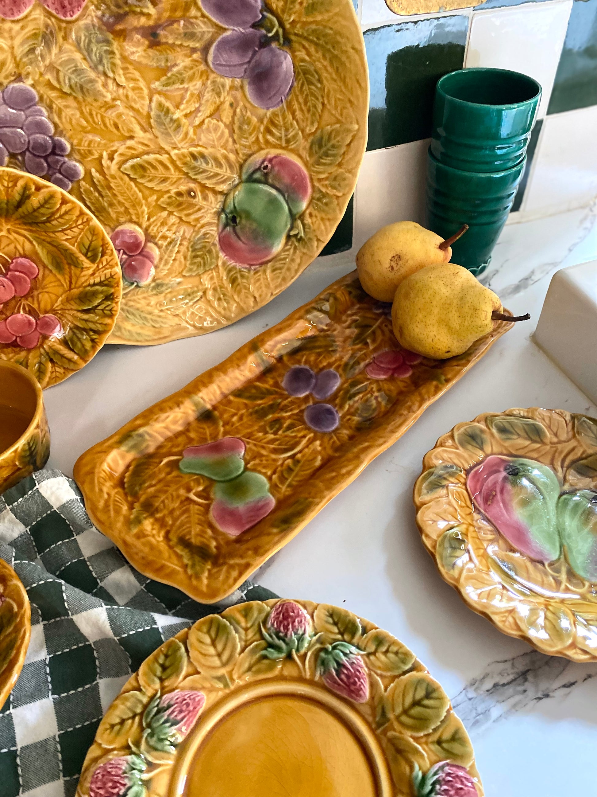 Ravissant plat de présentation rectangulaire ou plat à cake en barbotine ancienne Sarreguemines