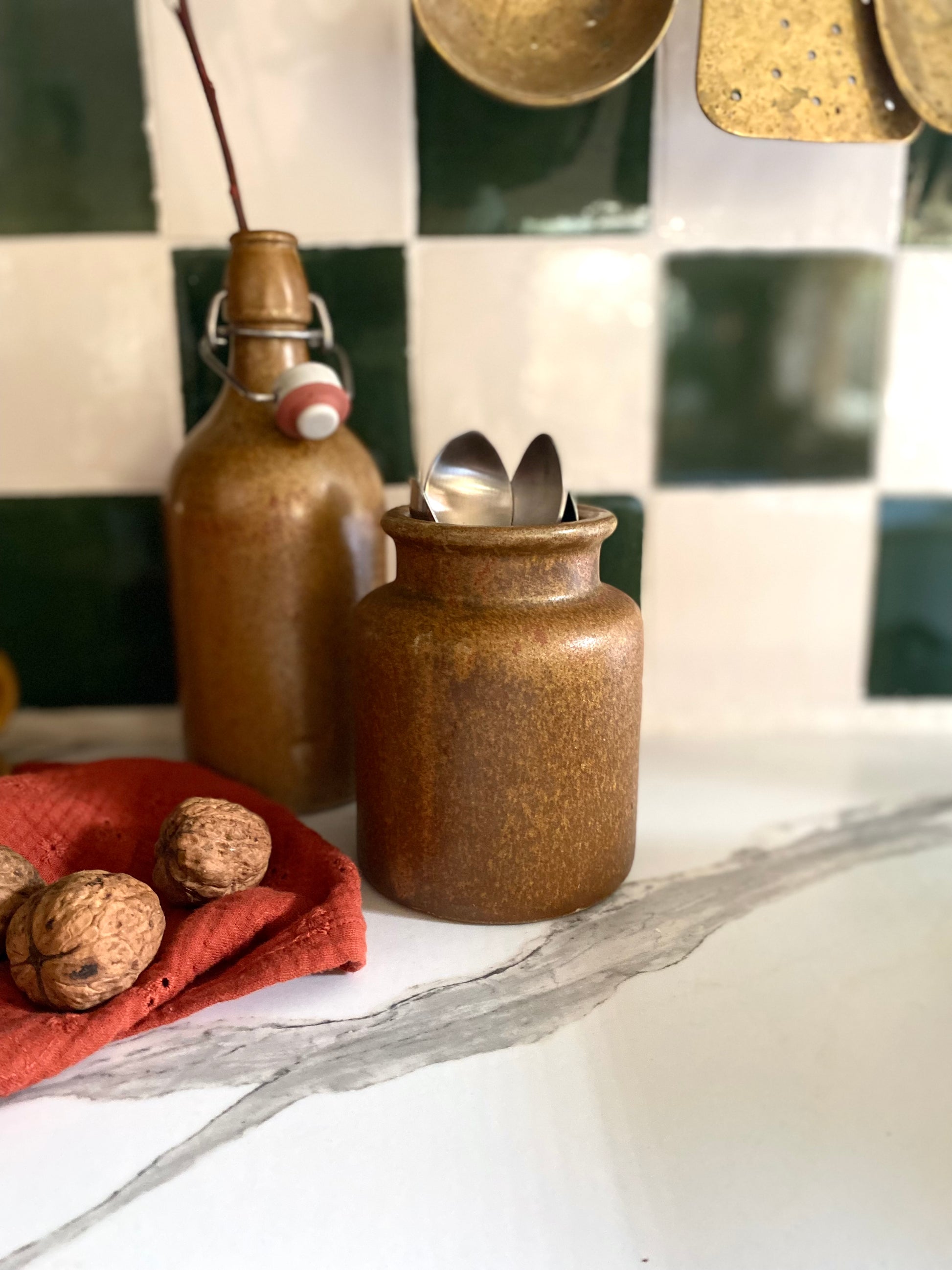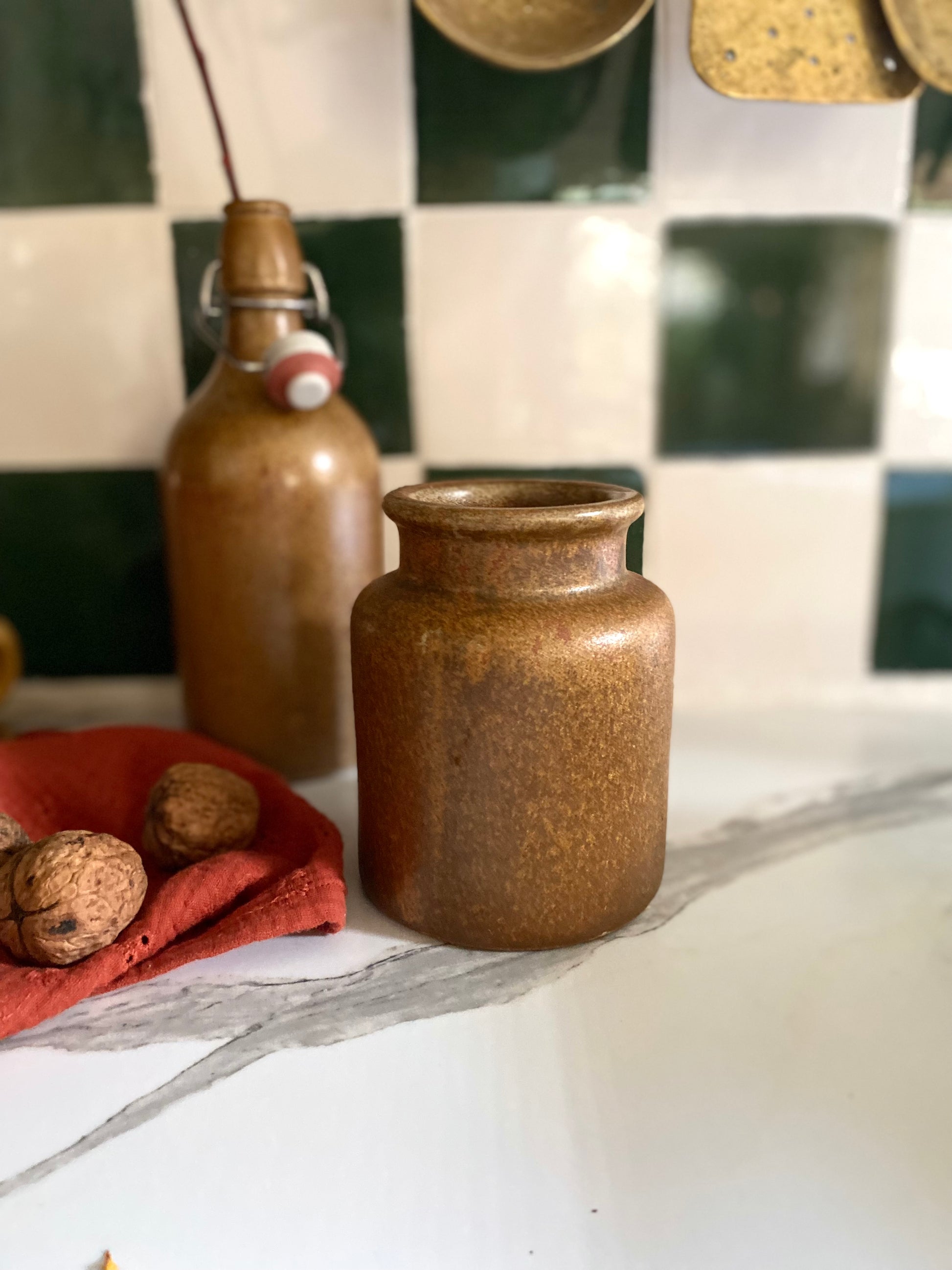 Ravissant pot en grès ancien, idéal pour ranger des couverts, des spatules ou des crayons .
