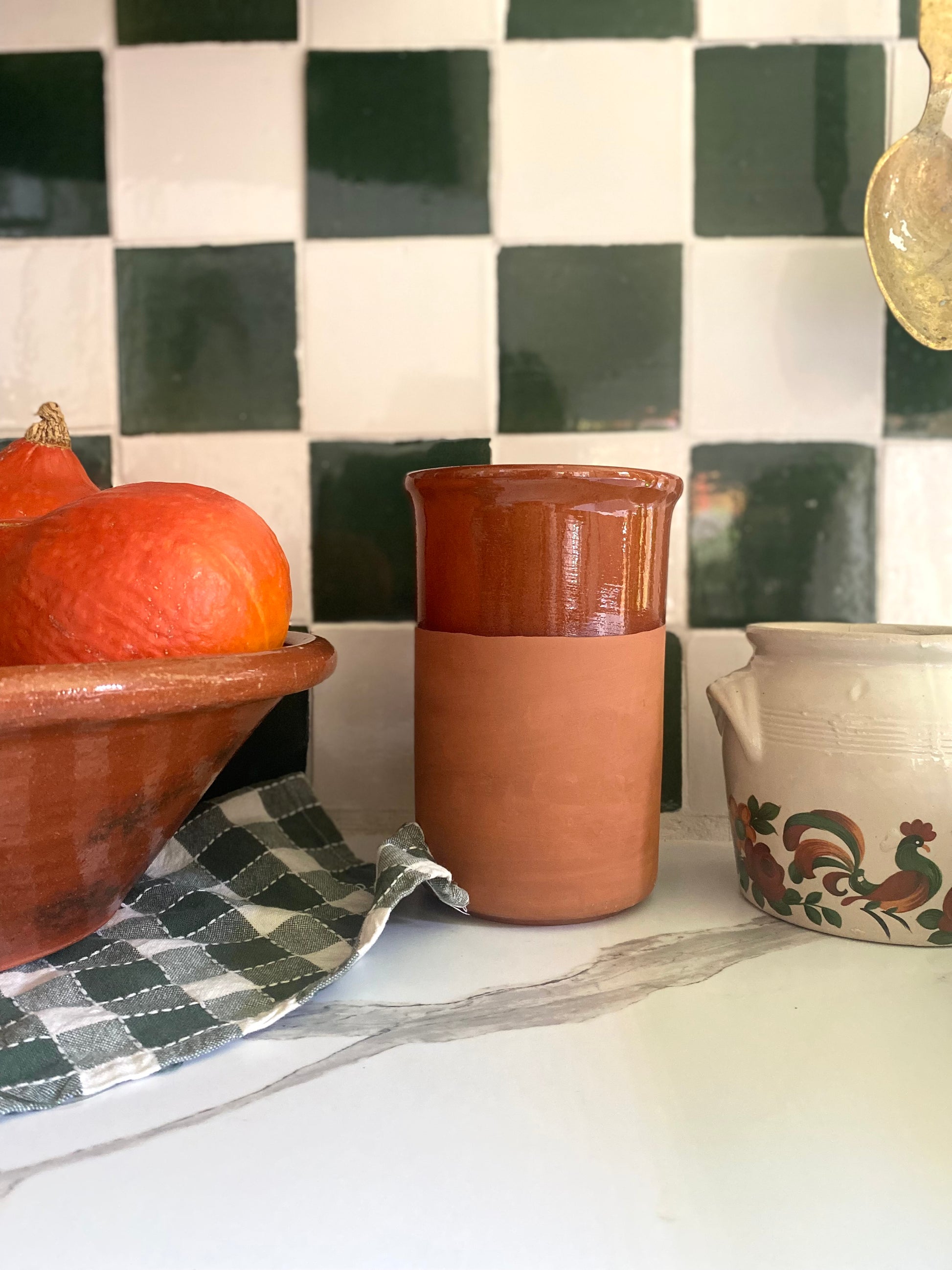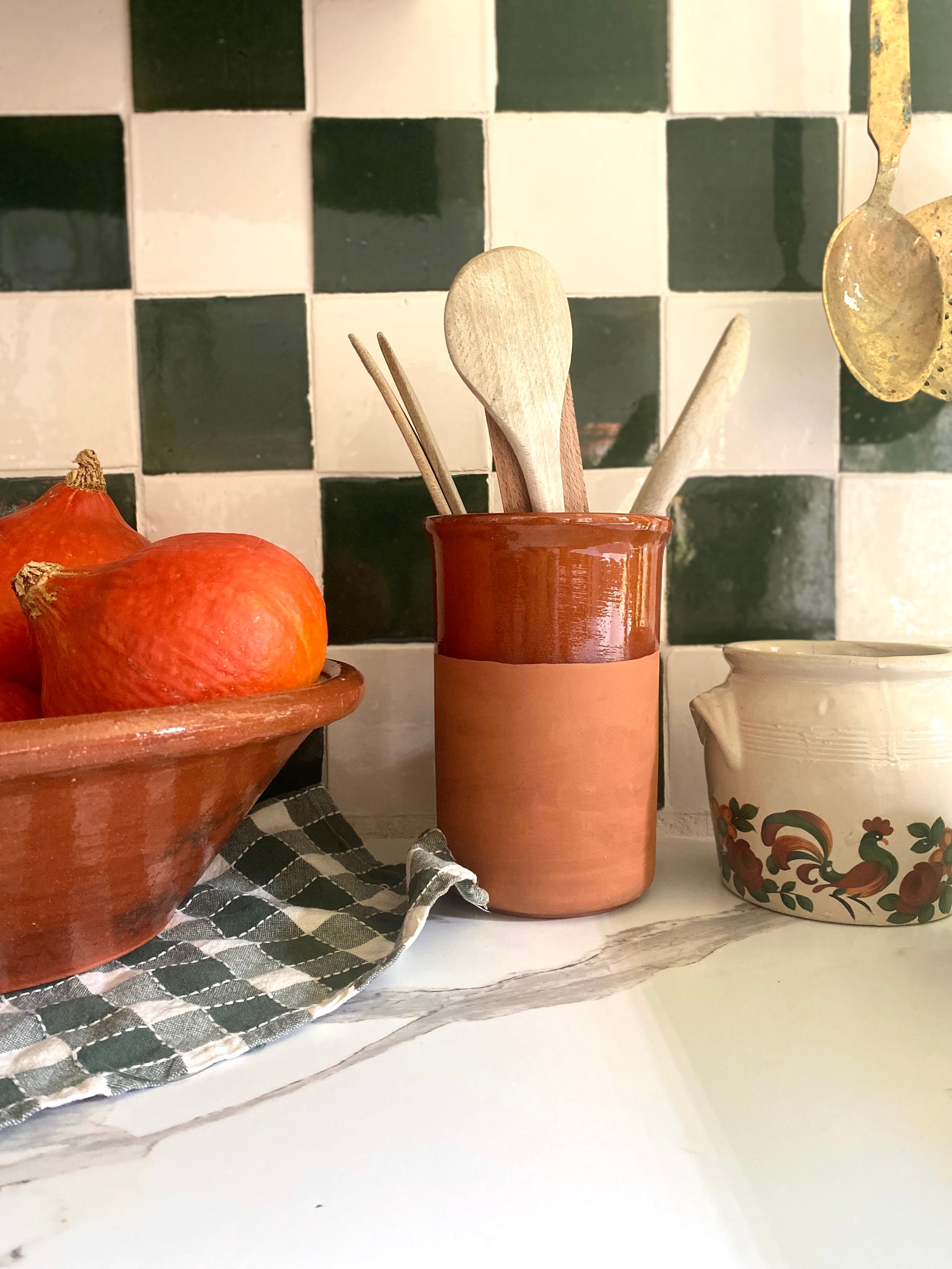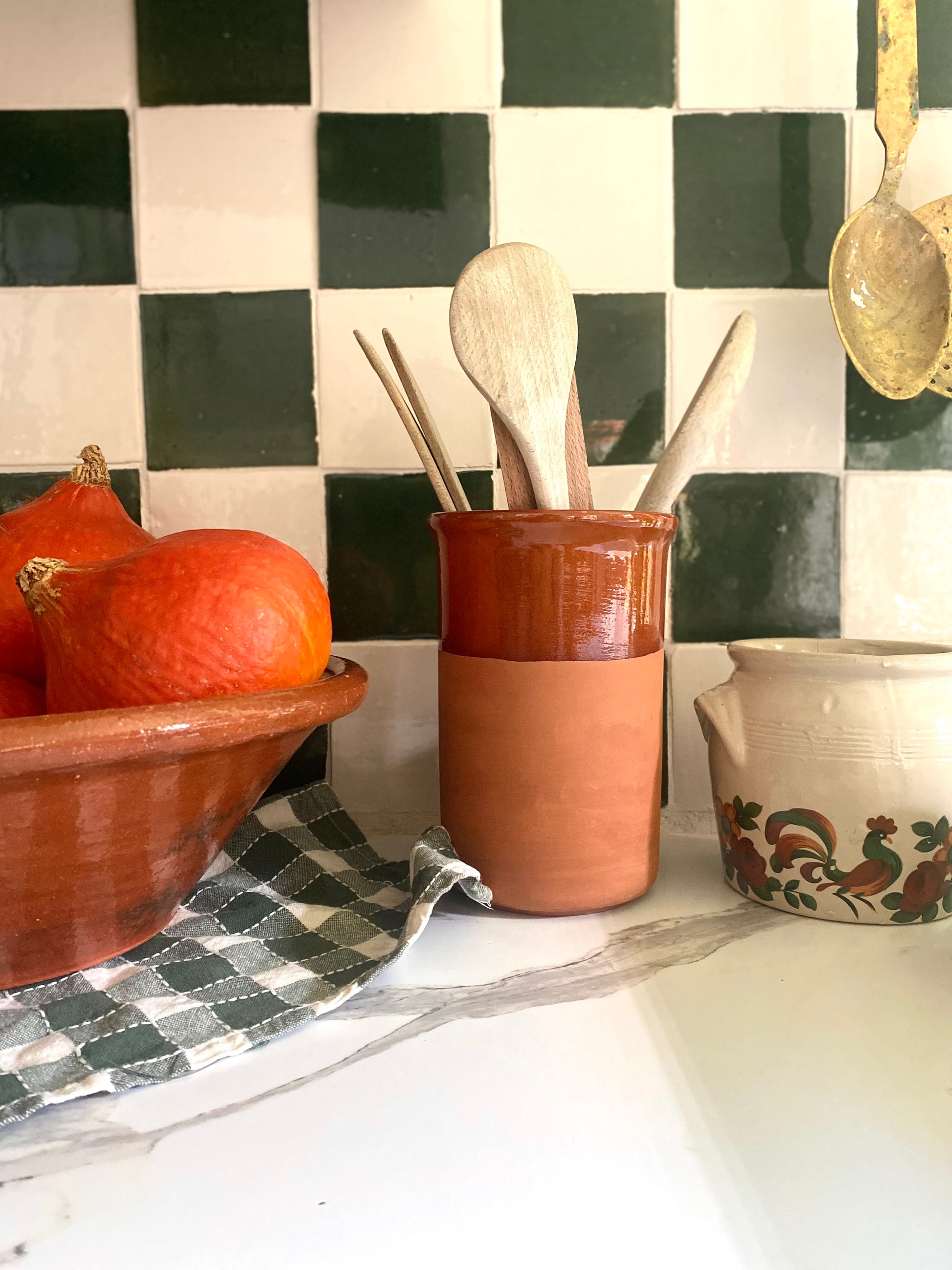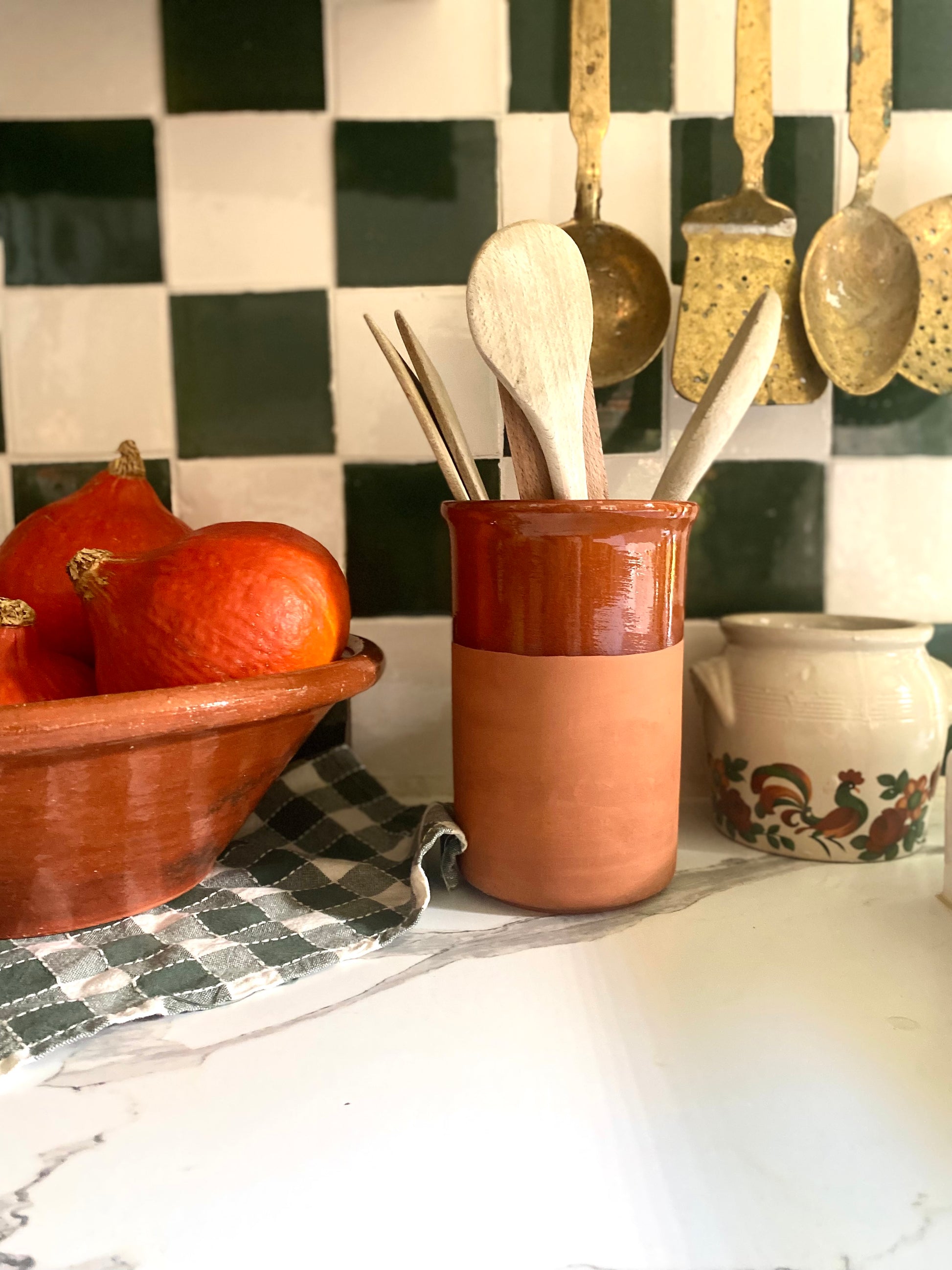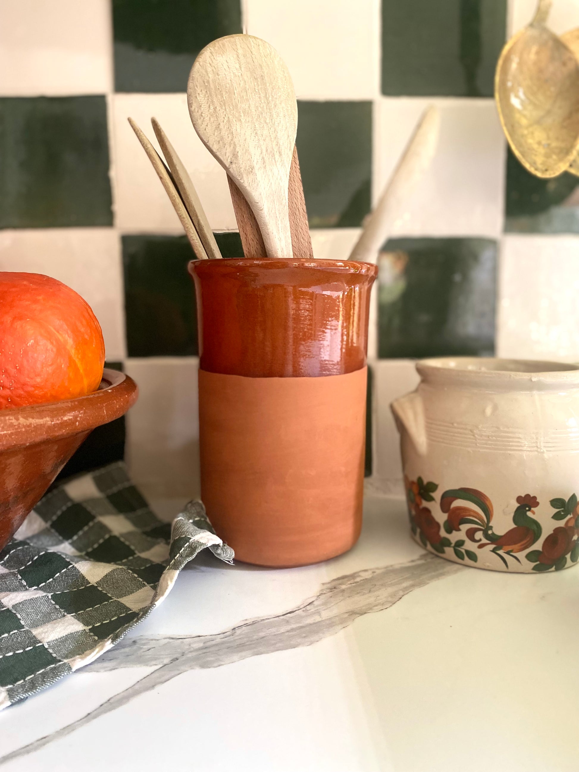 Sa forme haute et cylindrique est idéale pour ranger les cuillères en bois, spatules, fouets et autres outils de cuisine tout en apportant charme et cachet à votre cuisine