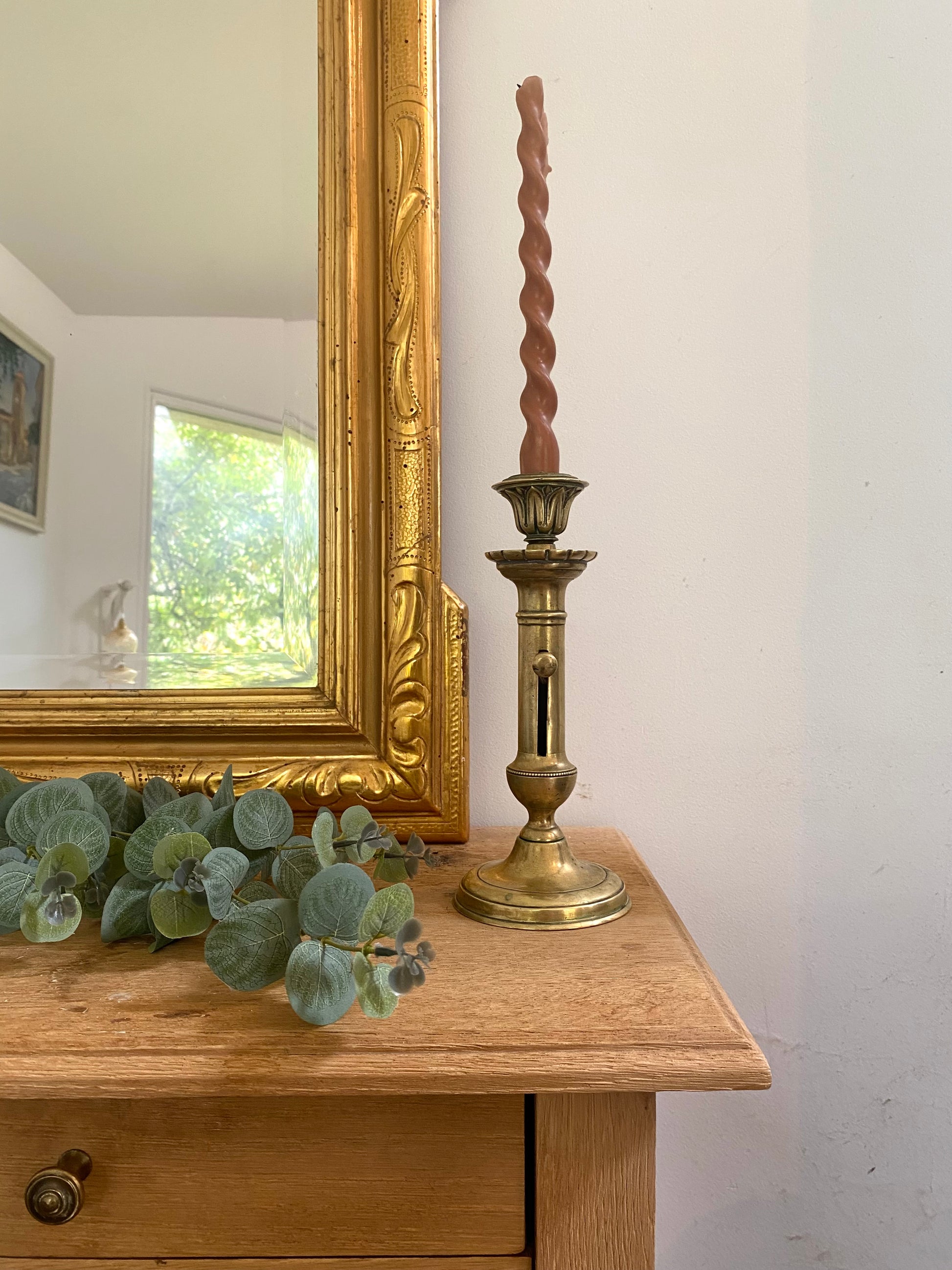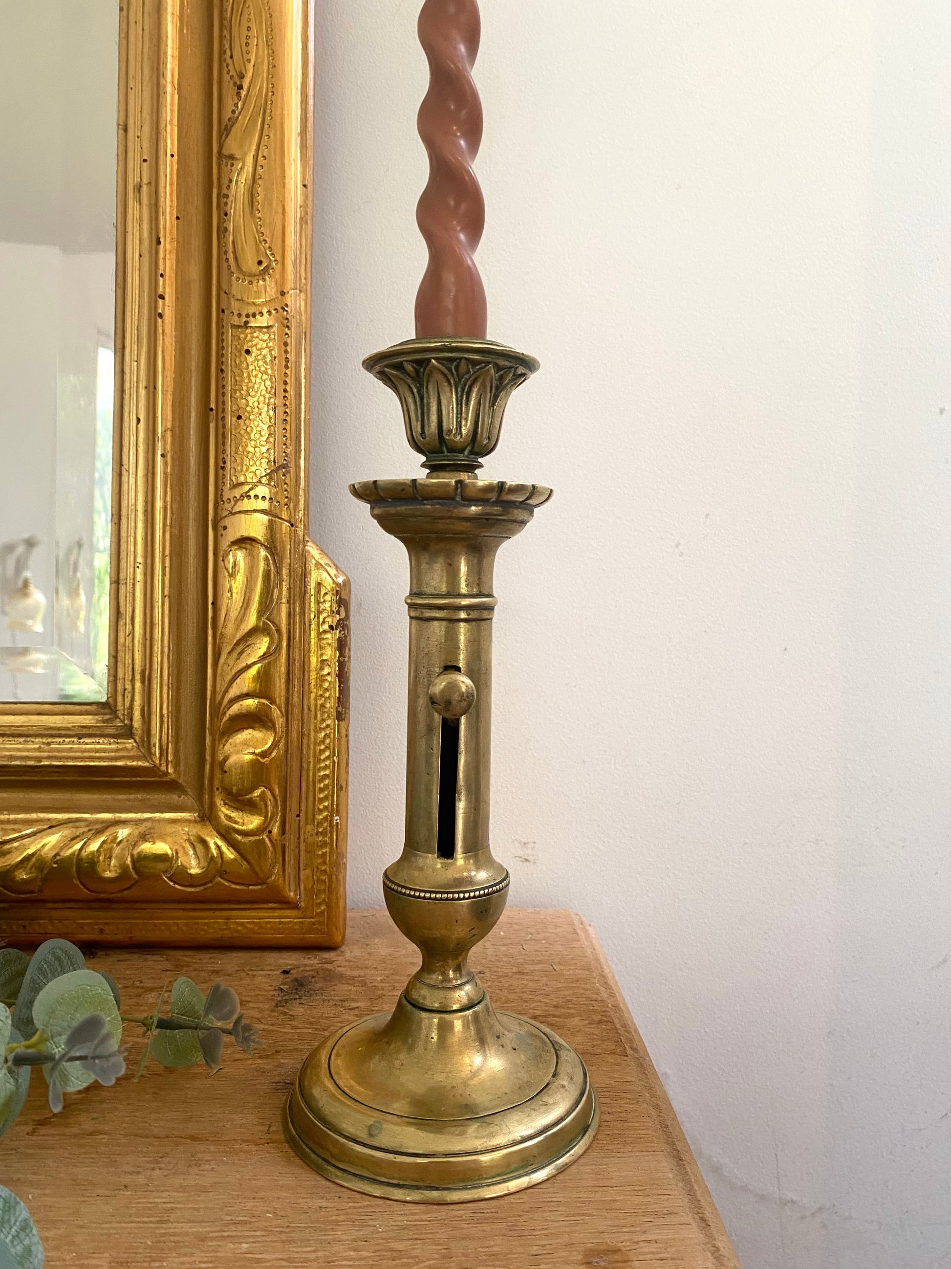Rare Bougeoir Ancien en Laiton - XIXème - Système Pousse-Bougie