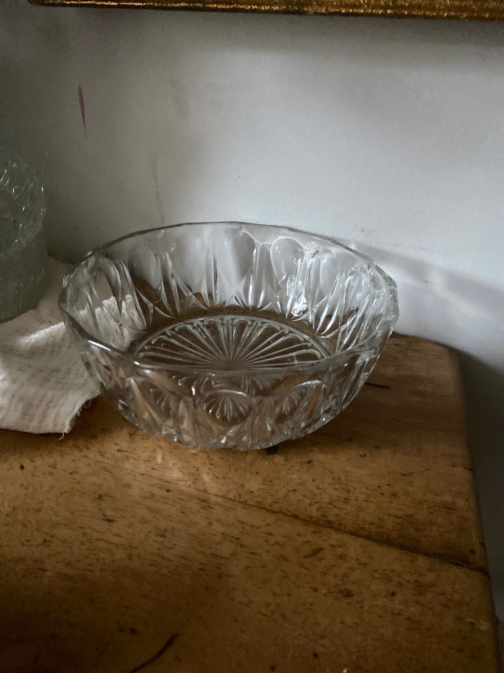 Adorable service composé d’un saladier en verre ciselé vintage et ses 8 ramequins
