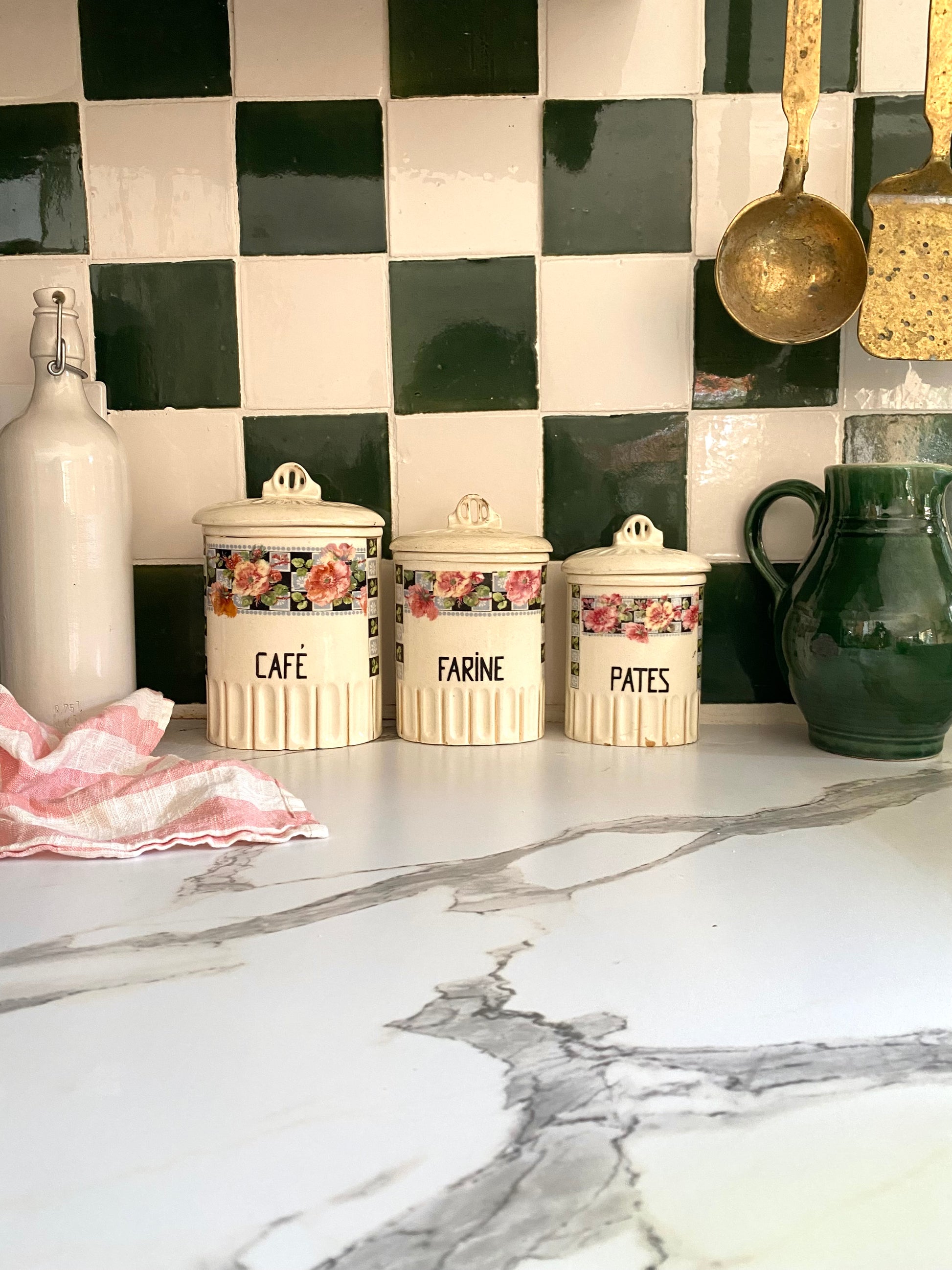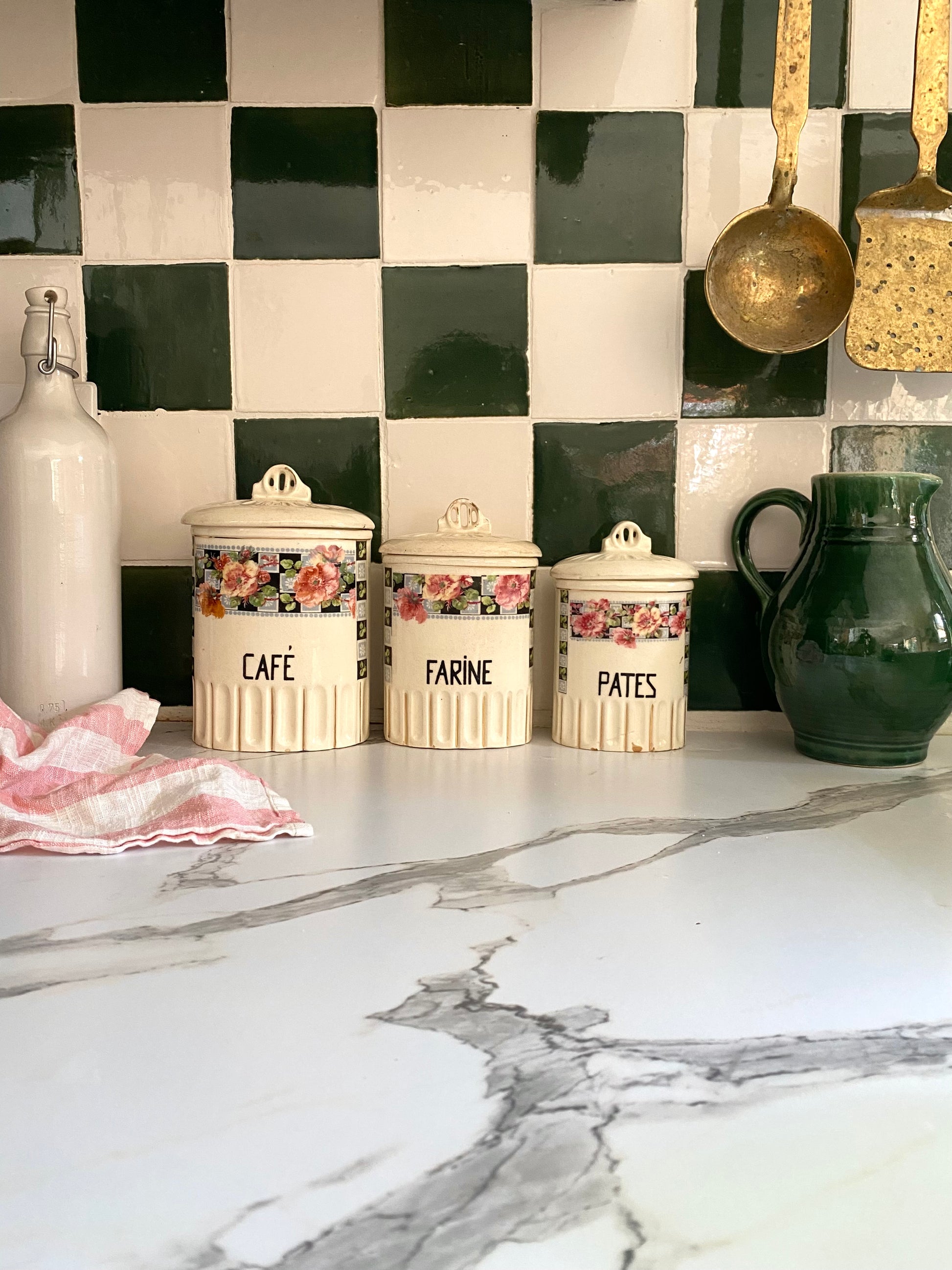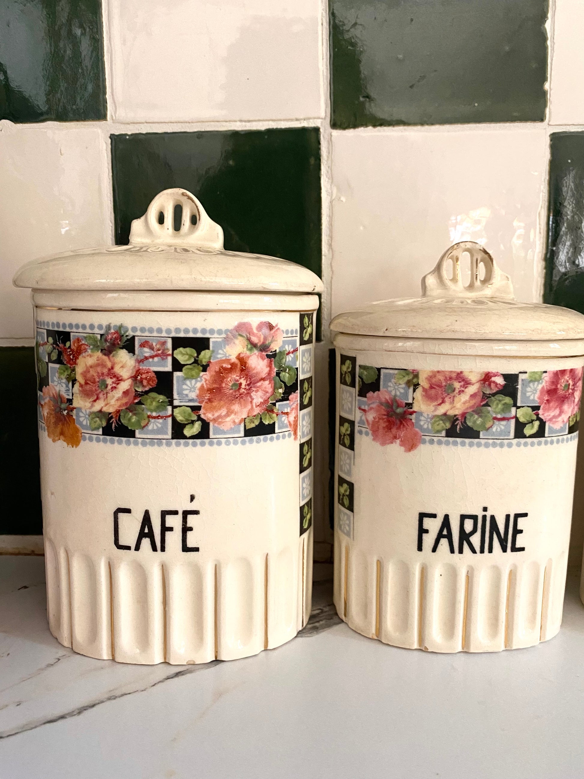 Adorable ensemble de 3 pots à épices en faïence ancienne