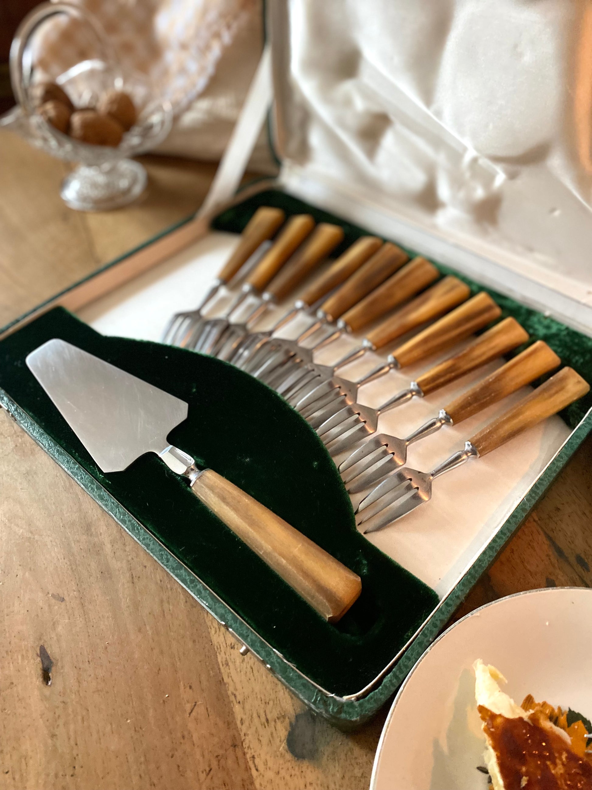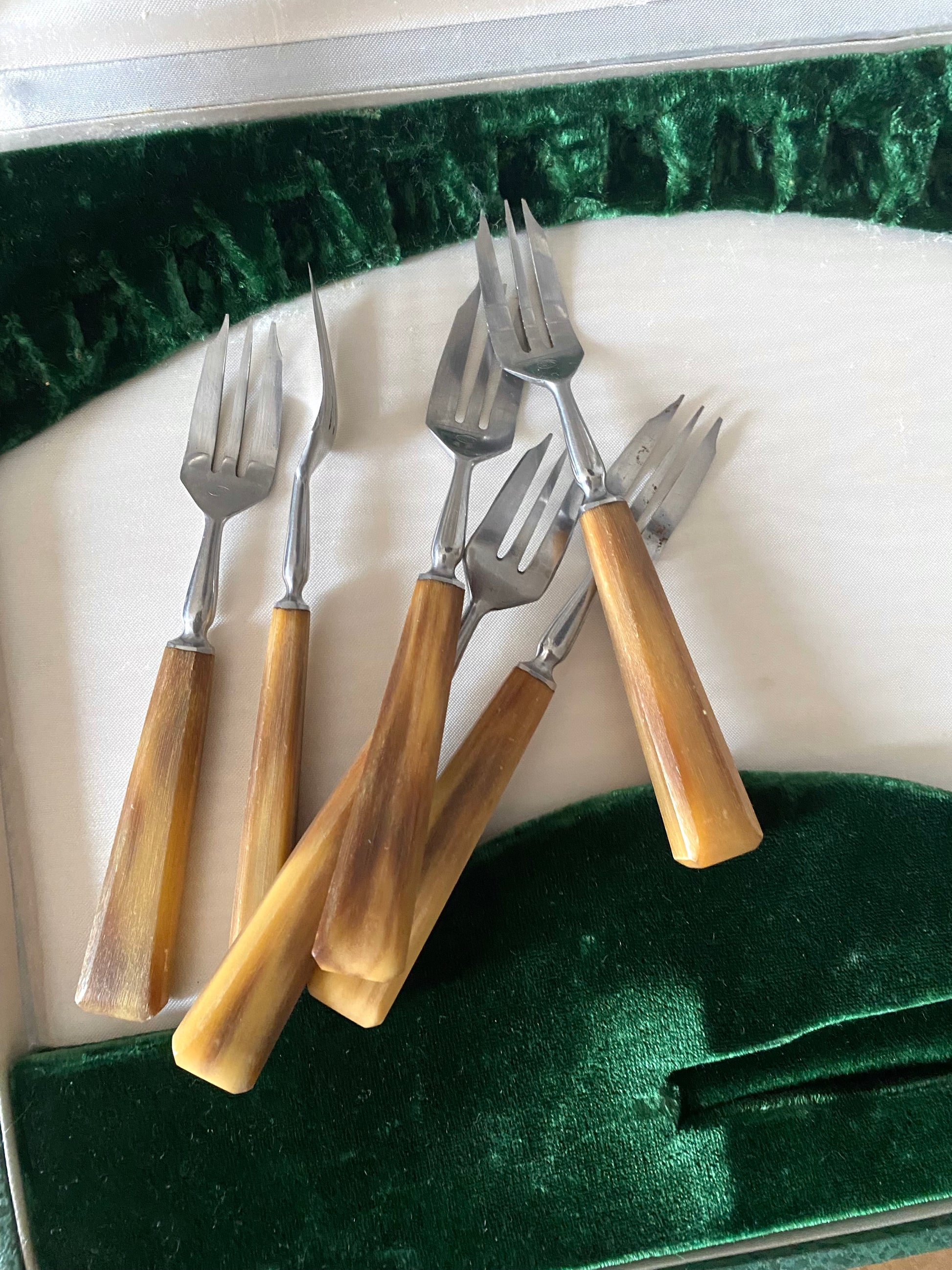 Service à dessert en corne ancienne