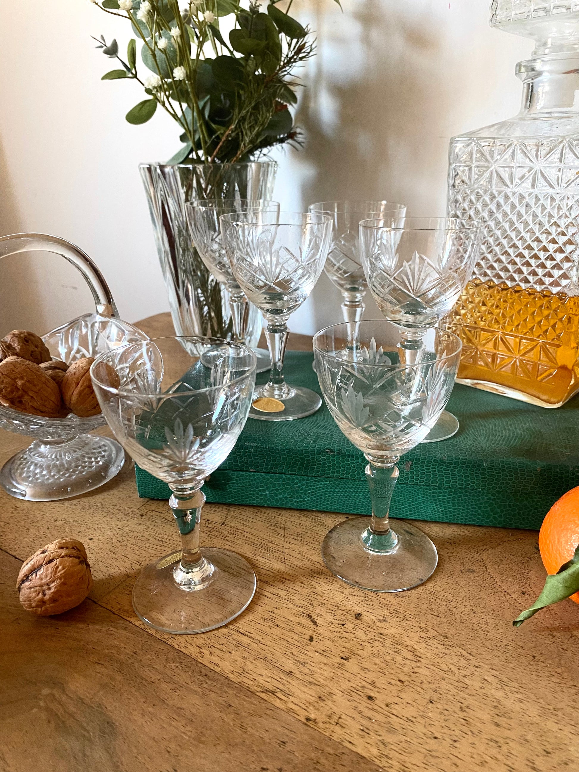 Ravissant ensemble de 6 verres à digestif en cristal ciselé
