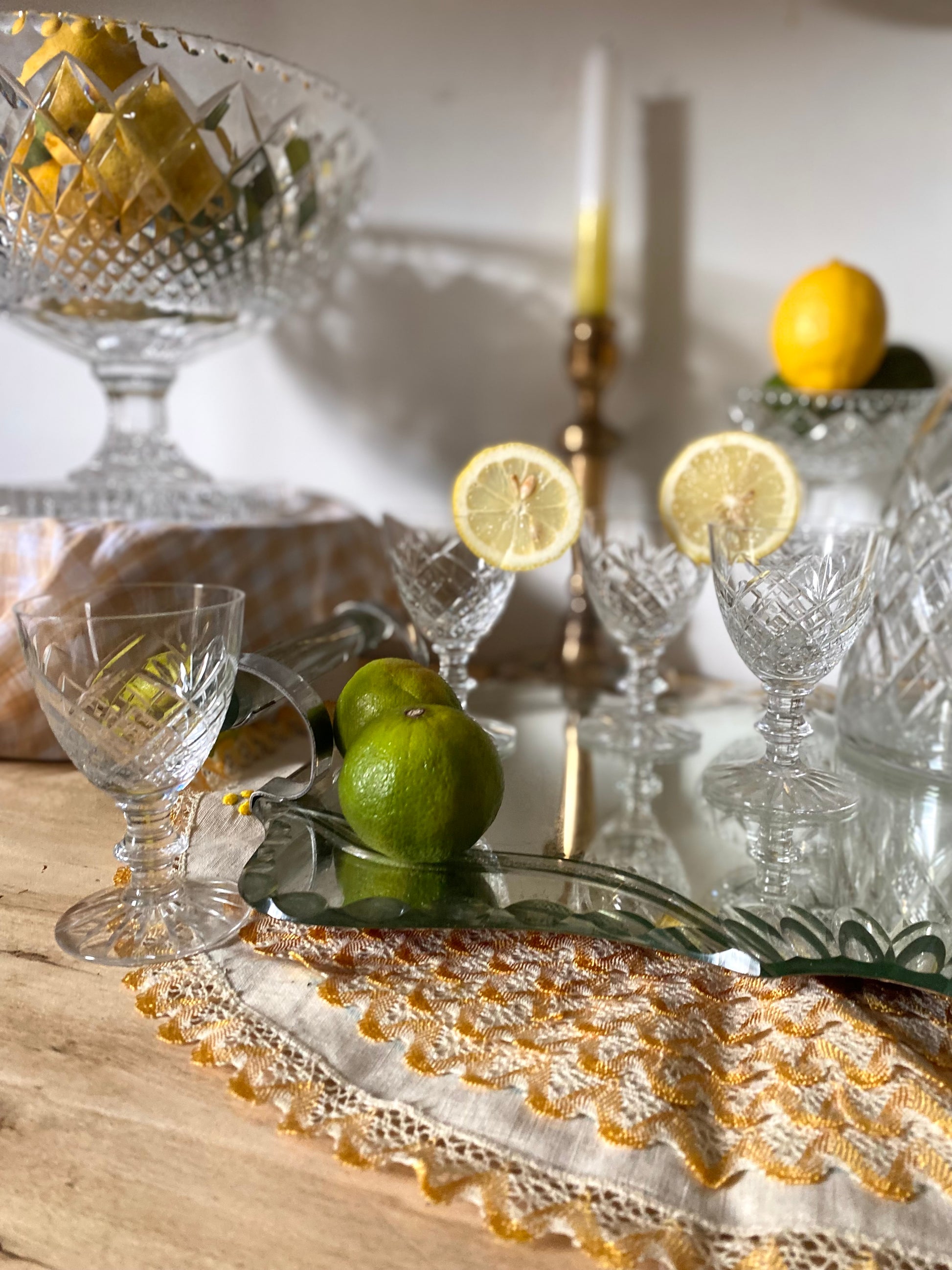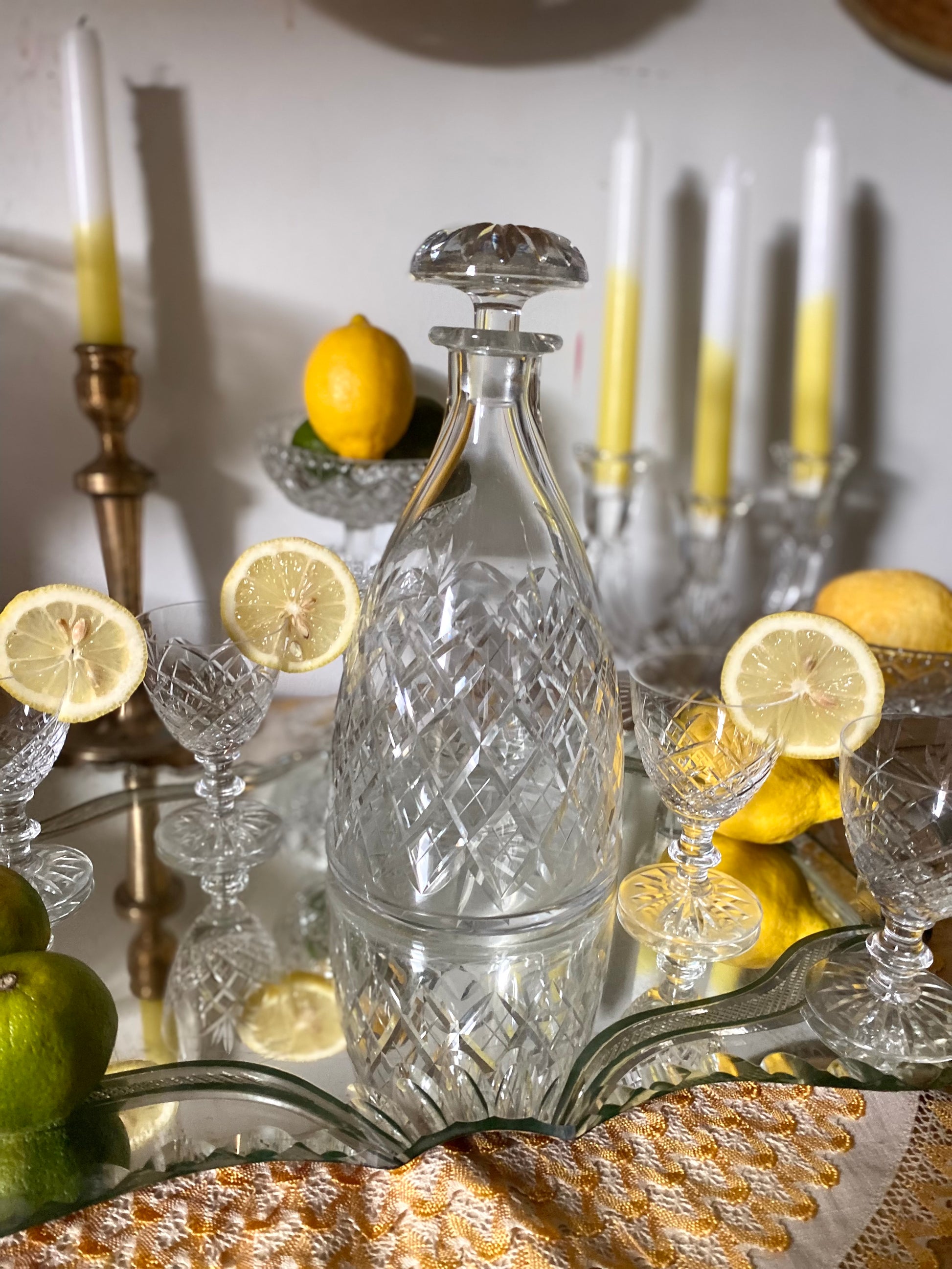 Ravissant service à digestif en cristal ciselé ancien composé d’une carafe et de six verres