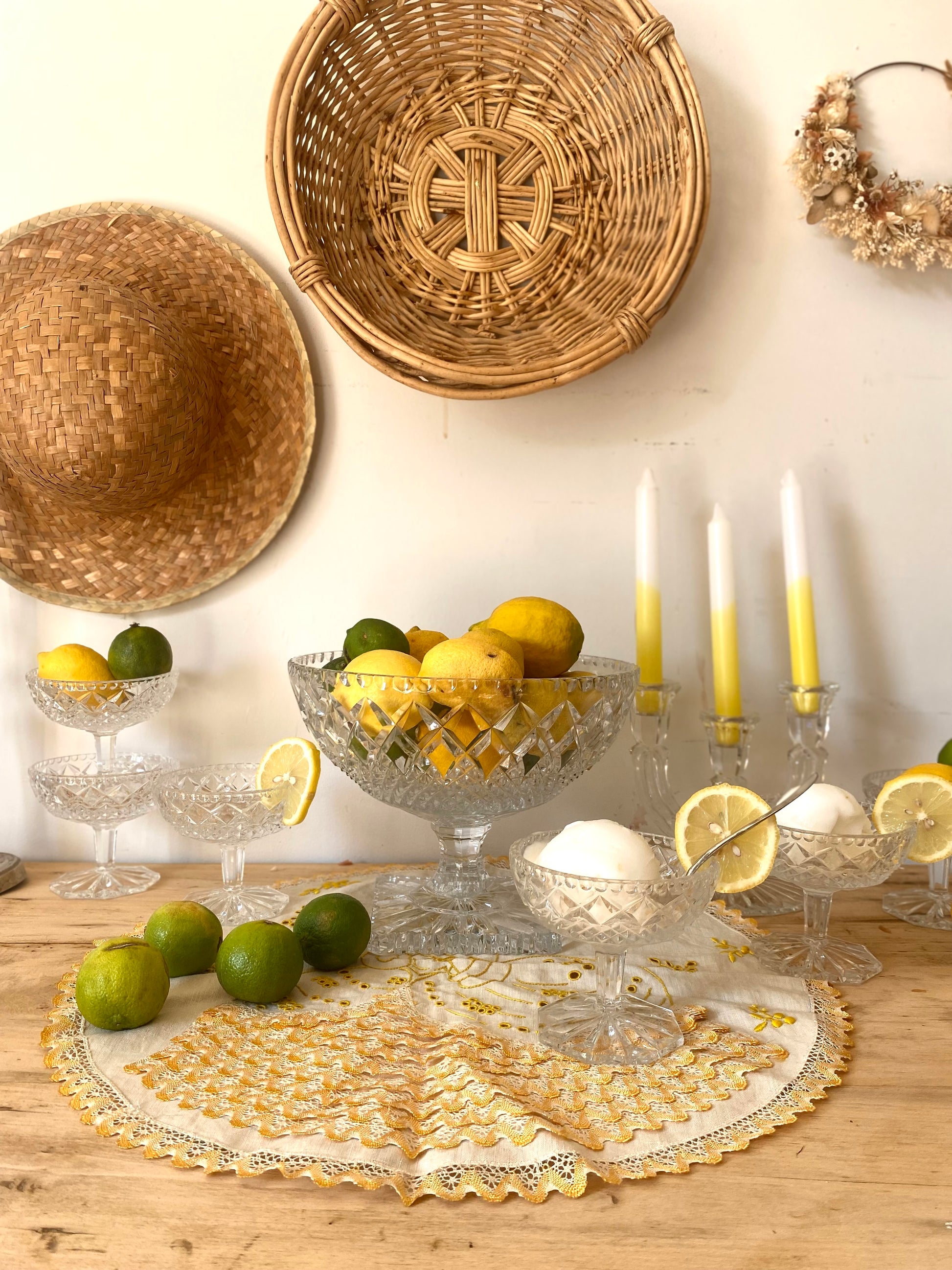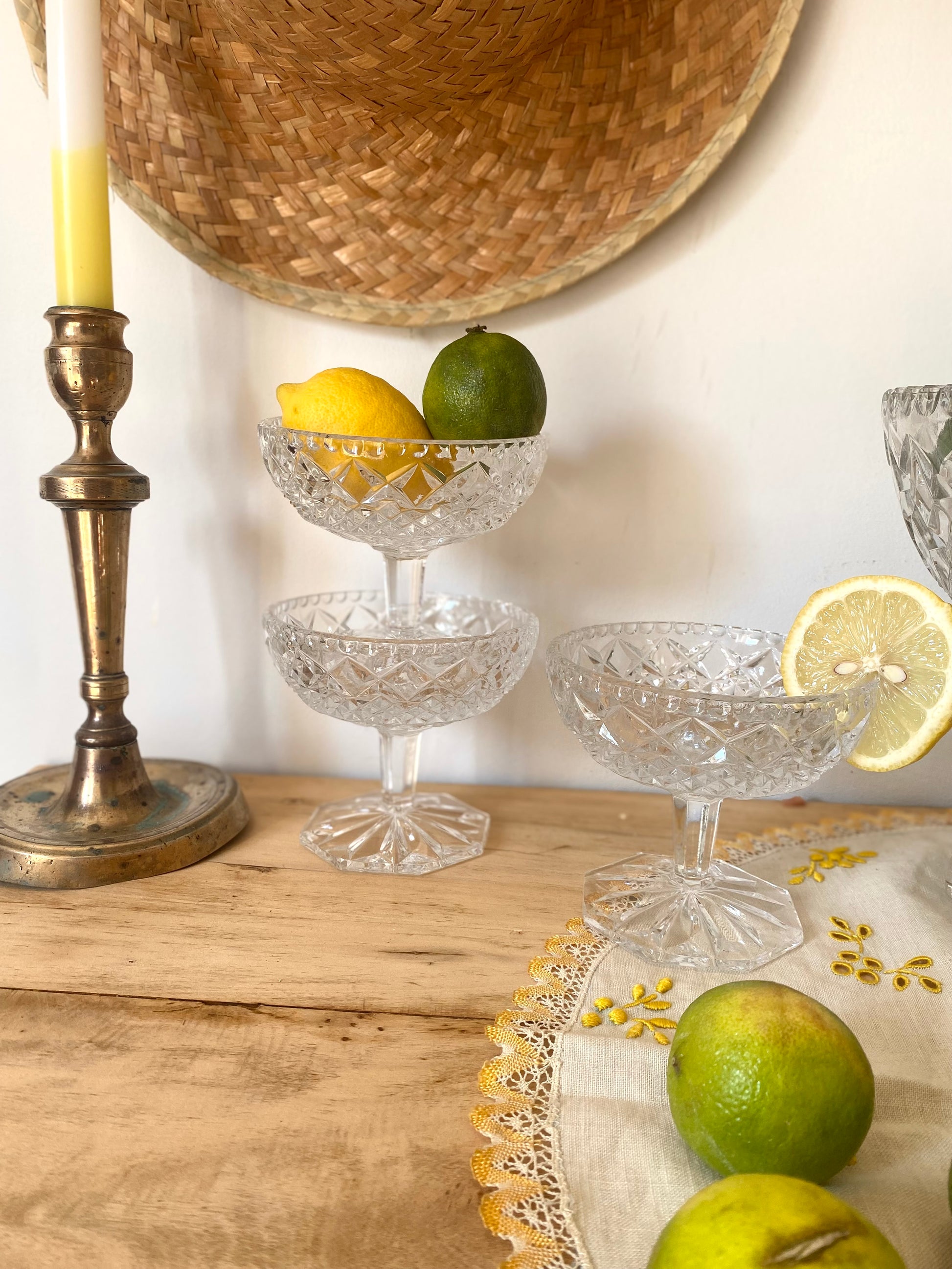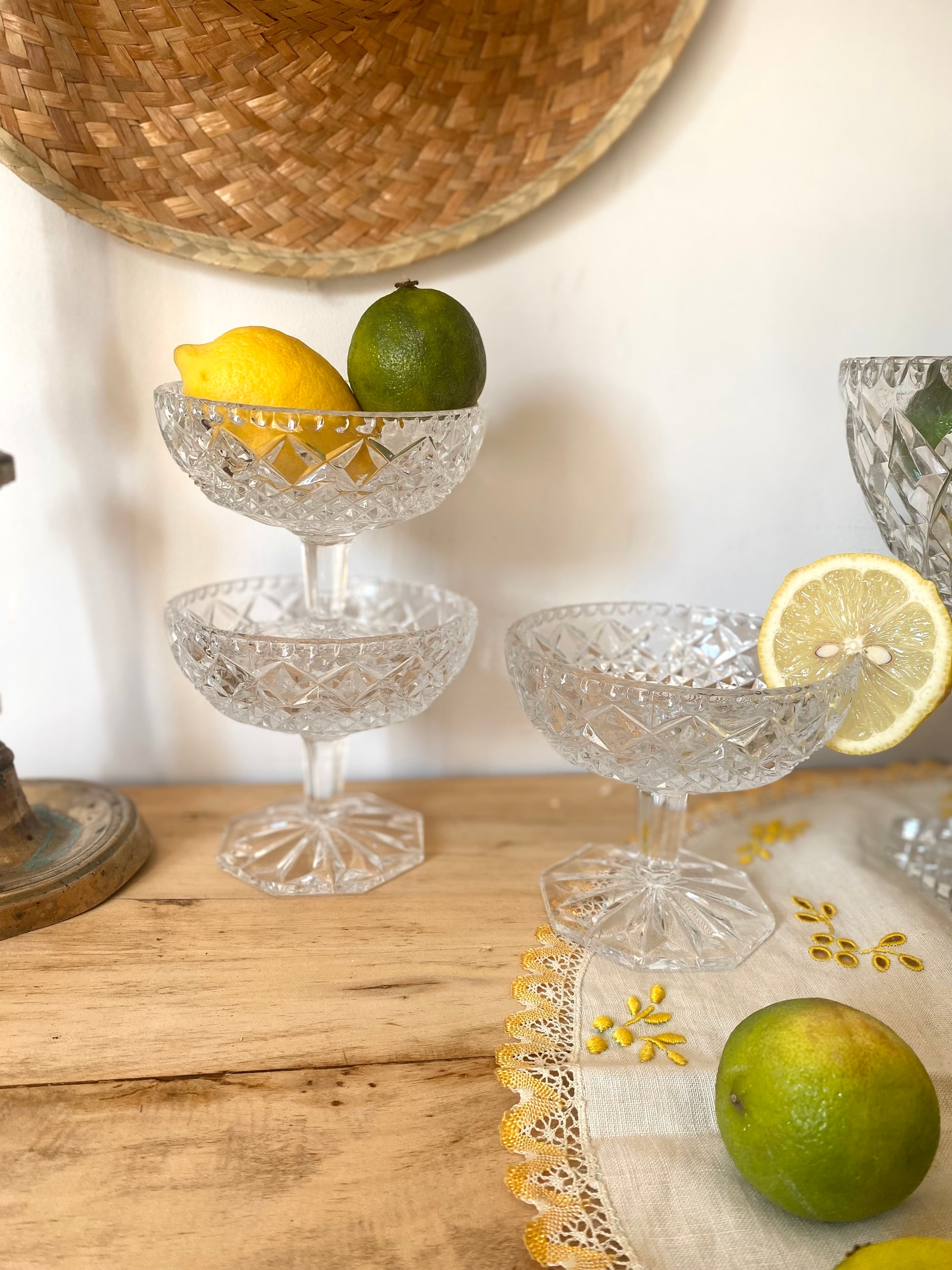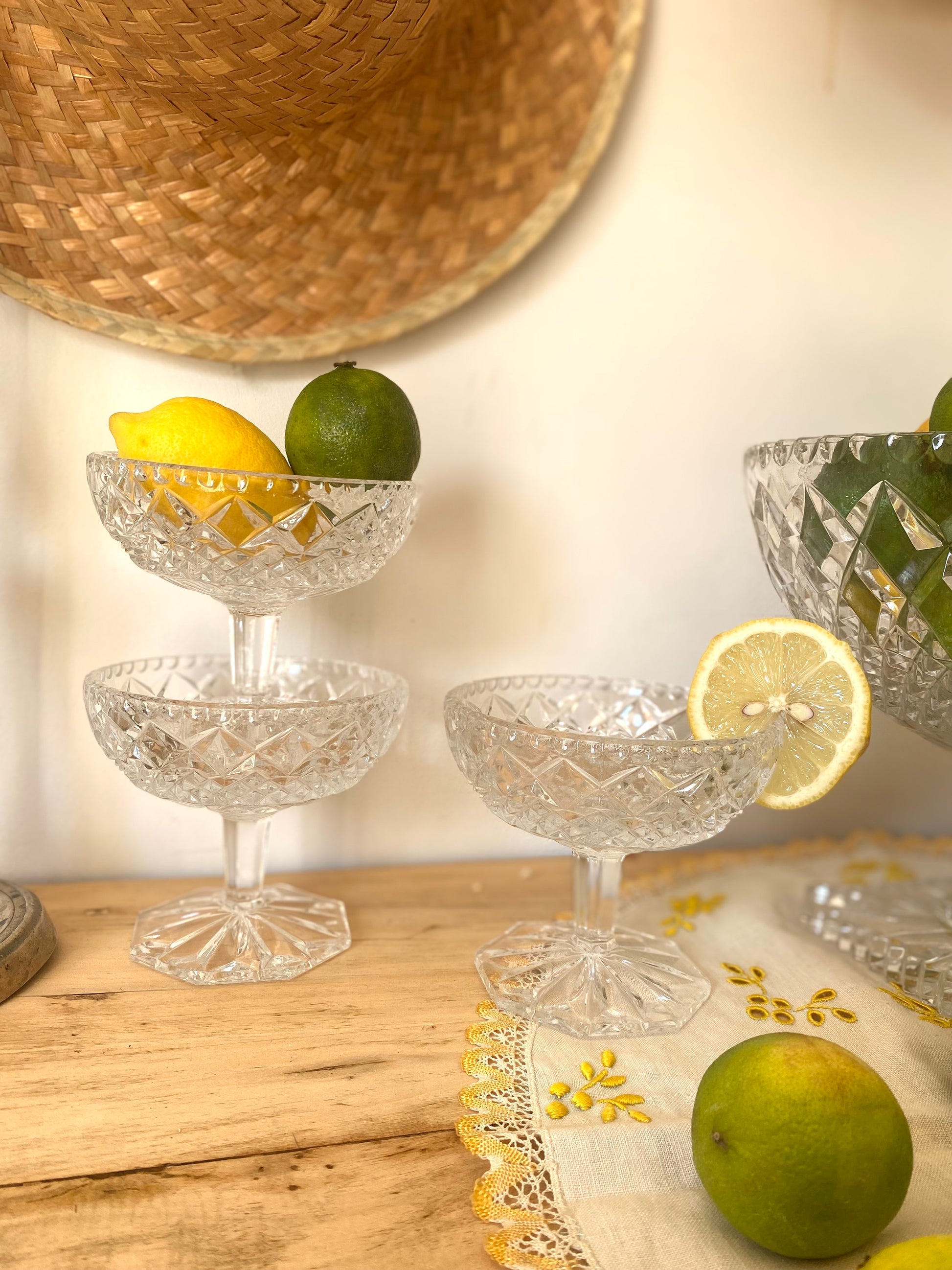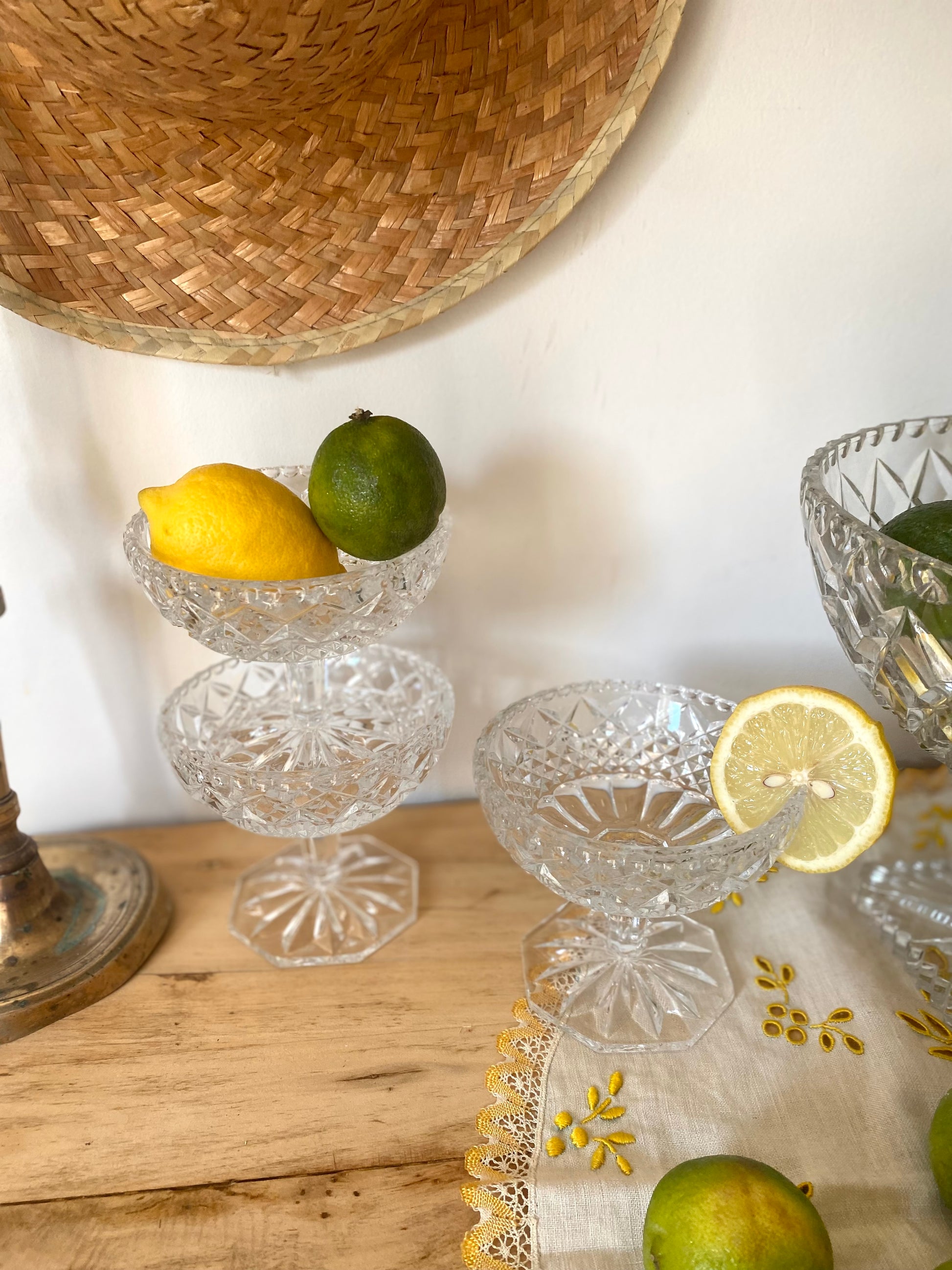 Sublime service à fruit composé d’une magnifique coupe à piédestal en cristal taillé au diamant et ses 6 coupes en excellent état.
