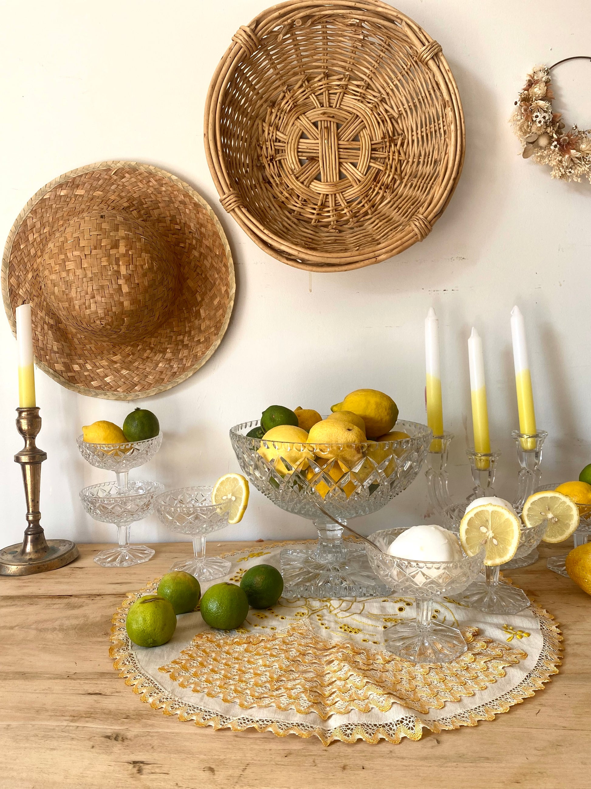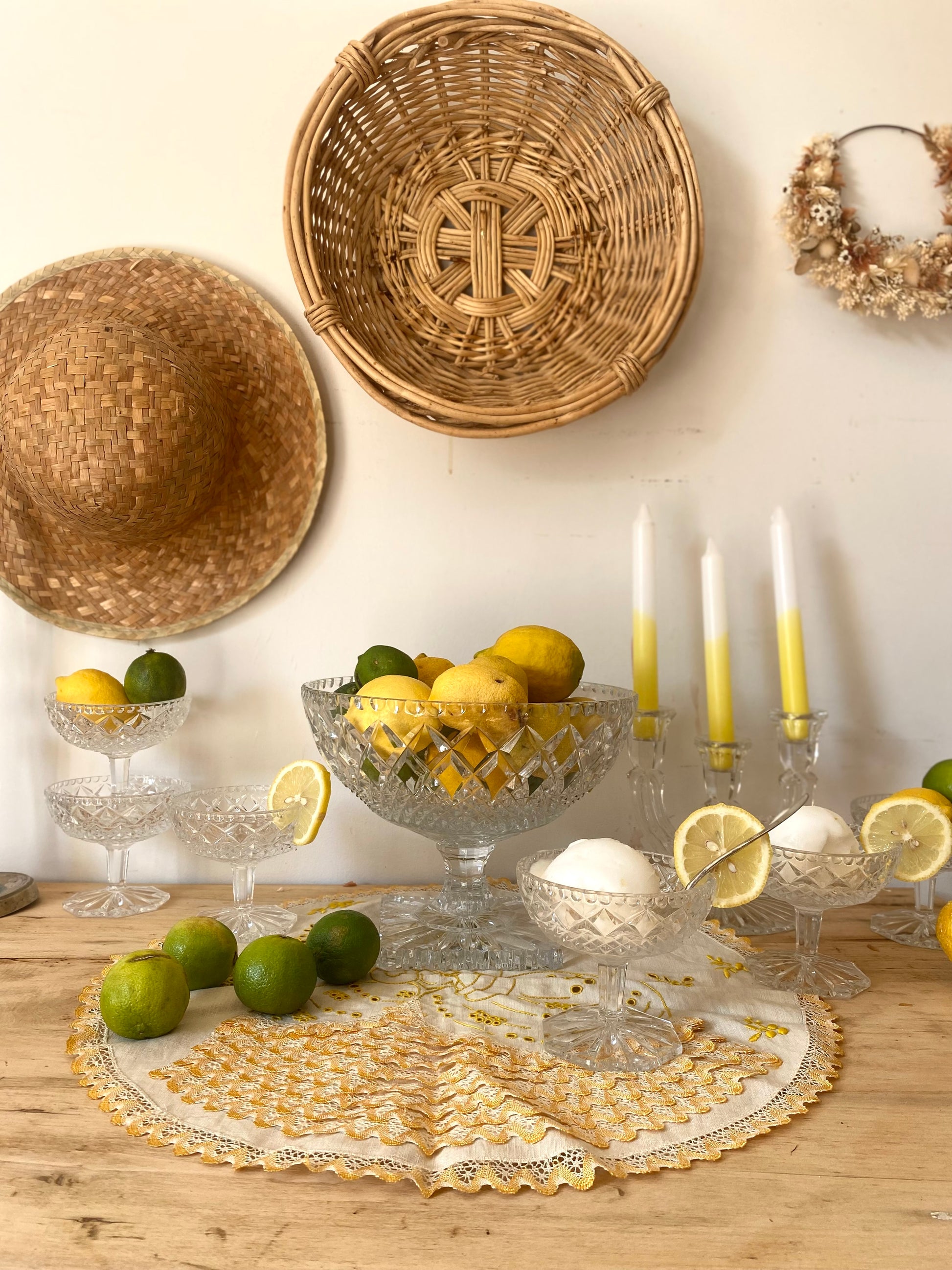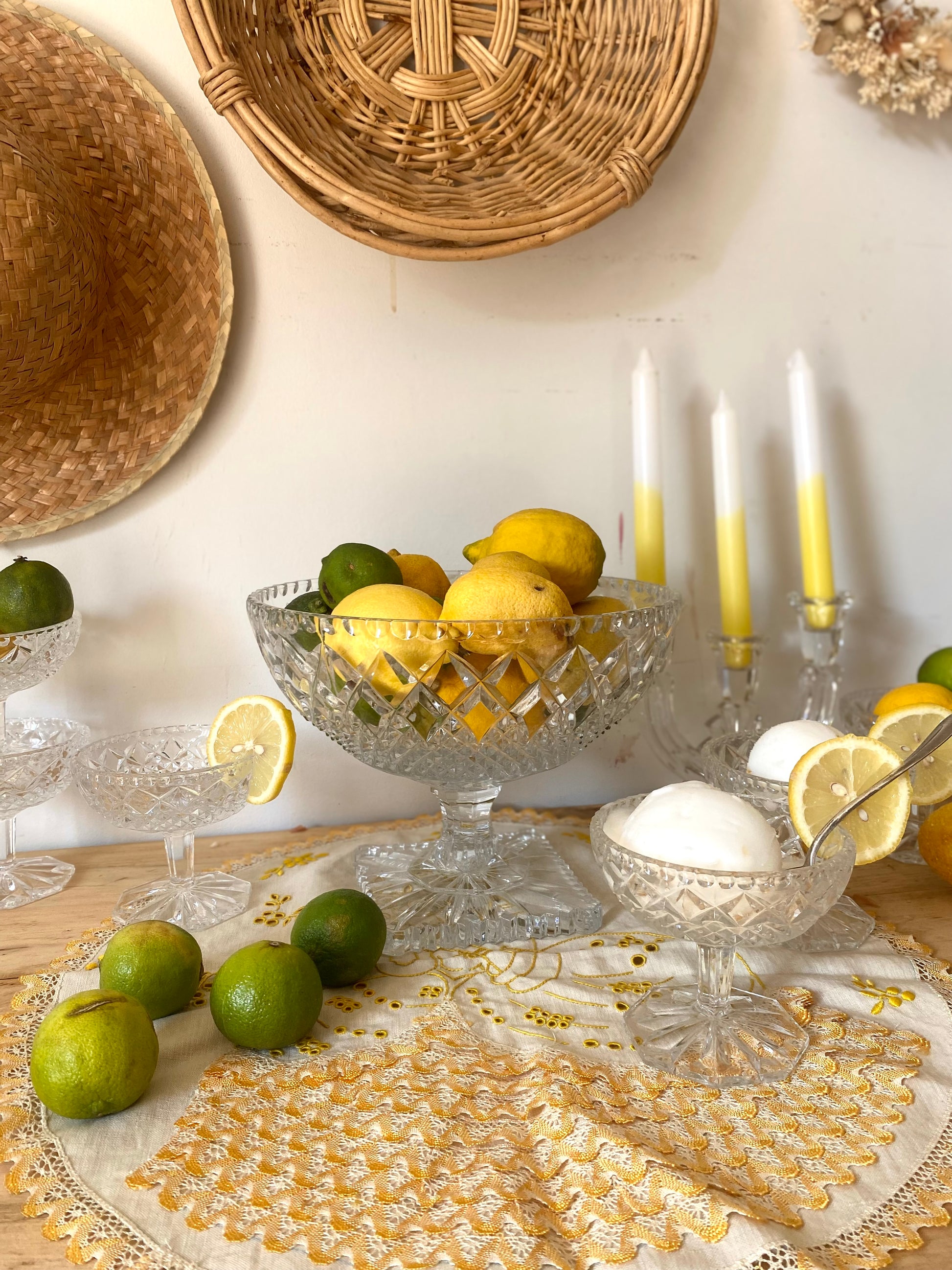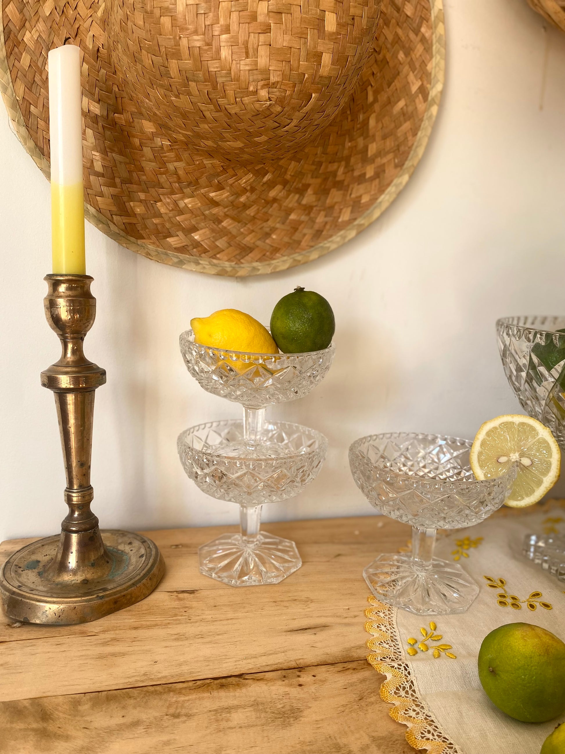 Sublime service à fruit composé d’une magnifique coupe à piédestal en cristal taillé au diamant et ses 6 coupes en excellent état.
